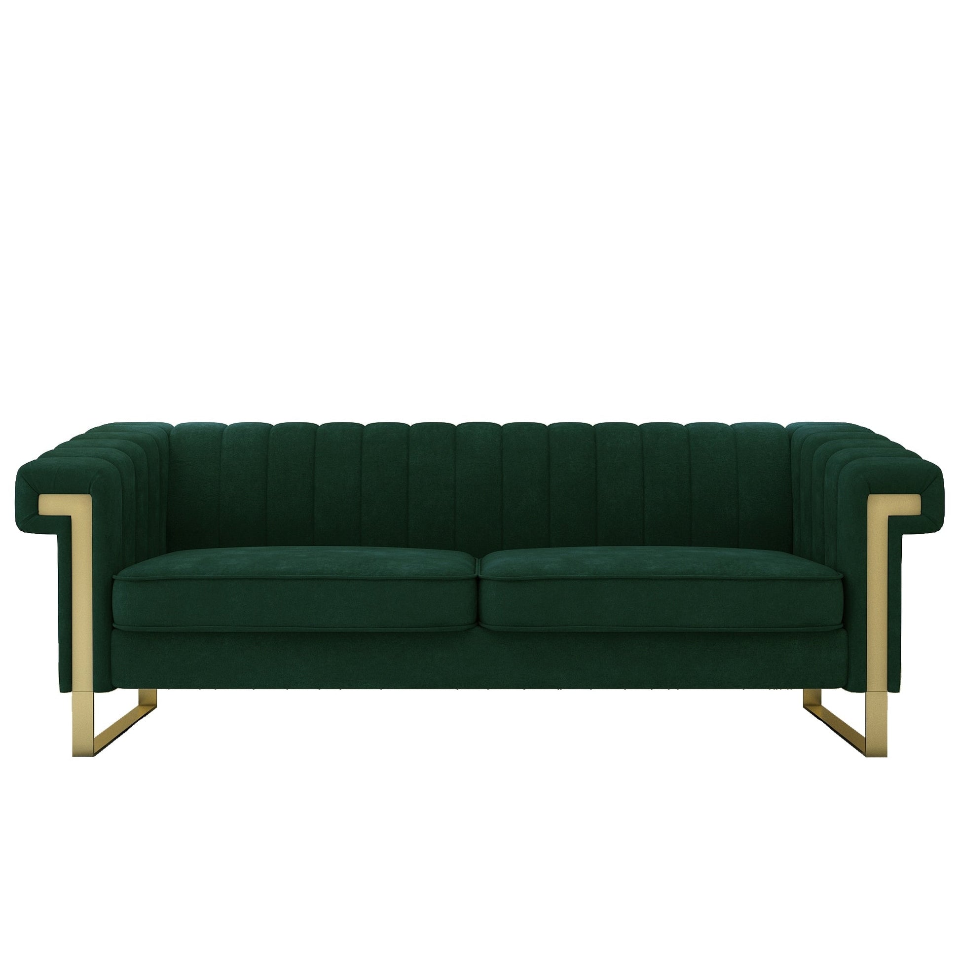 Divano a 3 posti in velluto verde da 83,85'' con braccioli decorativi e dettagli dorati