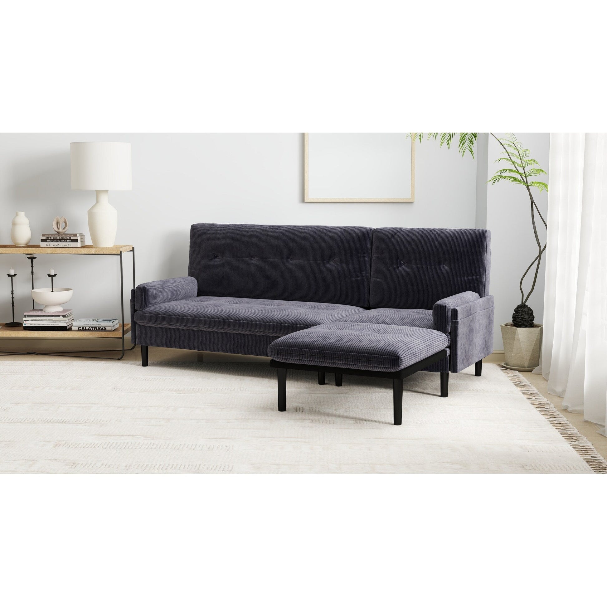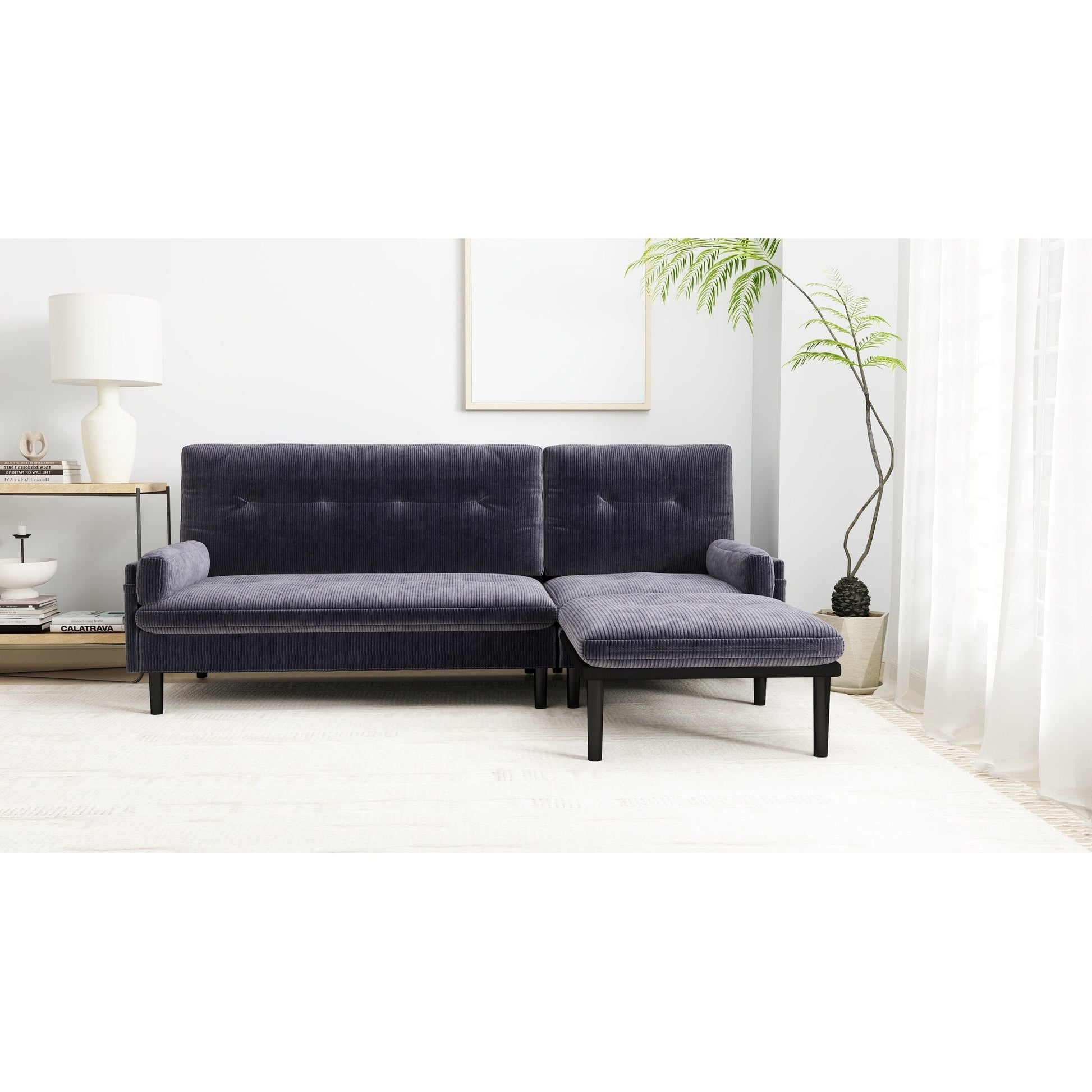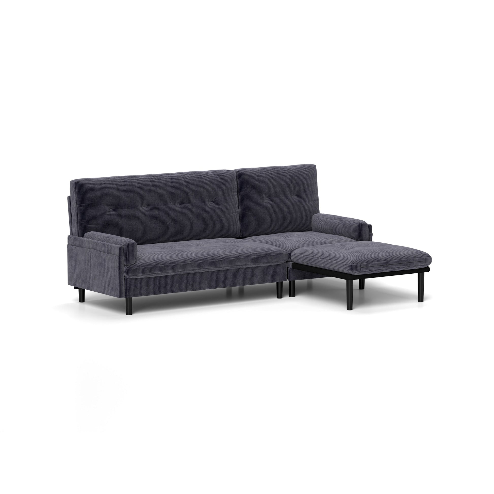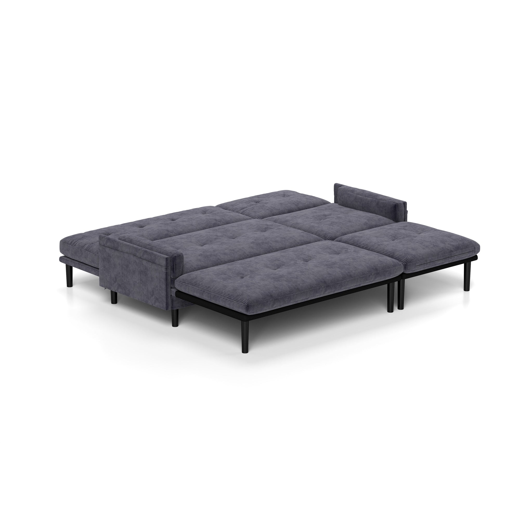 Divano a 3 posti in velluto a coste multifunzionale regolabile grigio 80.7, divano a L convertibile e letto per gli ospiti