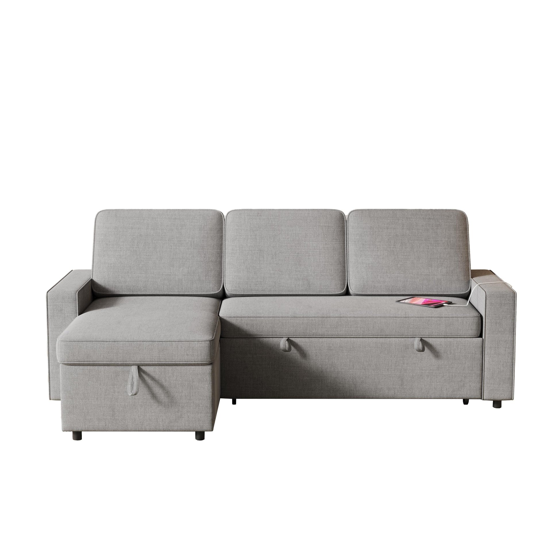 Divano letto a L in tessuto grigio da...