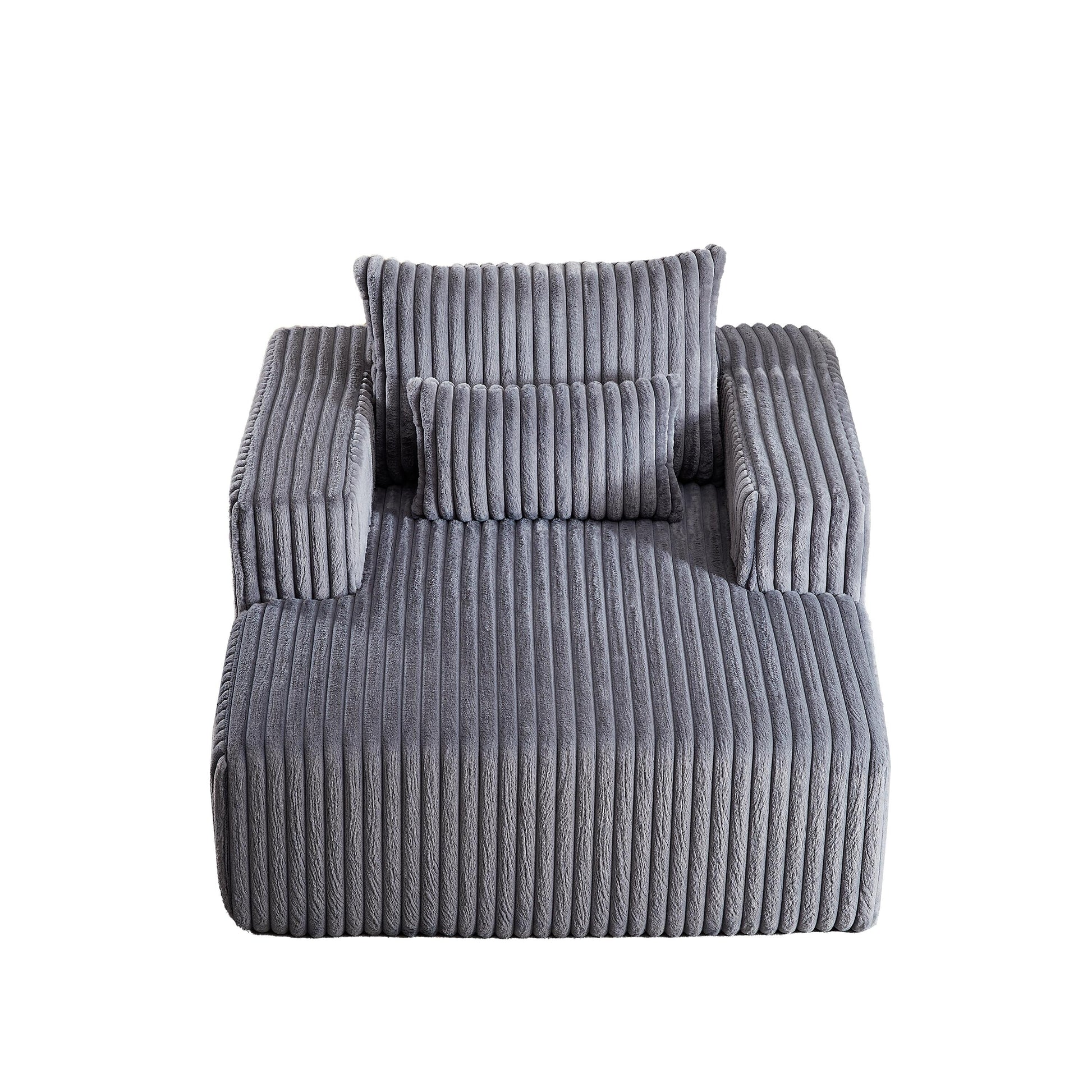 Poltrona lounge moderna in velluto a coste grigio da 62,5 pollici con 2 cuscini per soggiorno