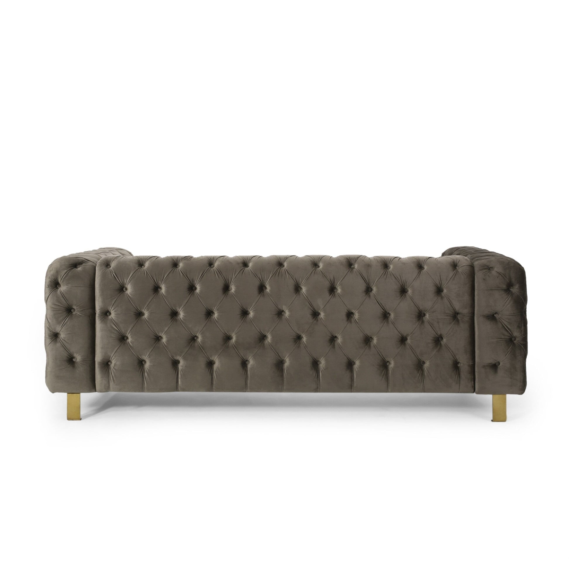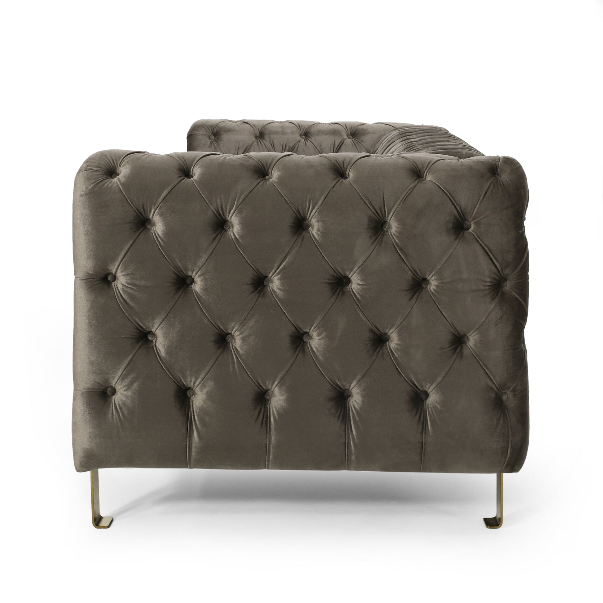 Divano moderno grigio 83,75 in velluto con bottoni,...
