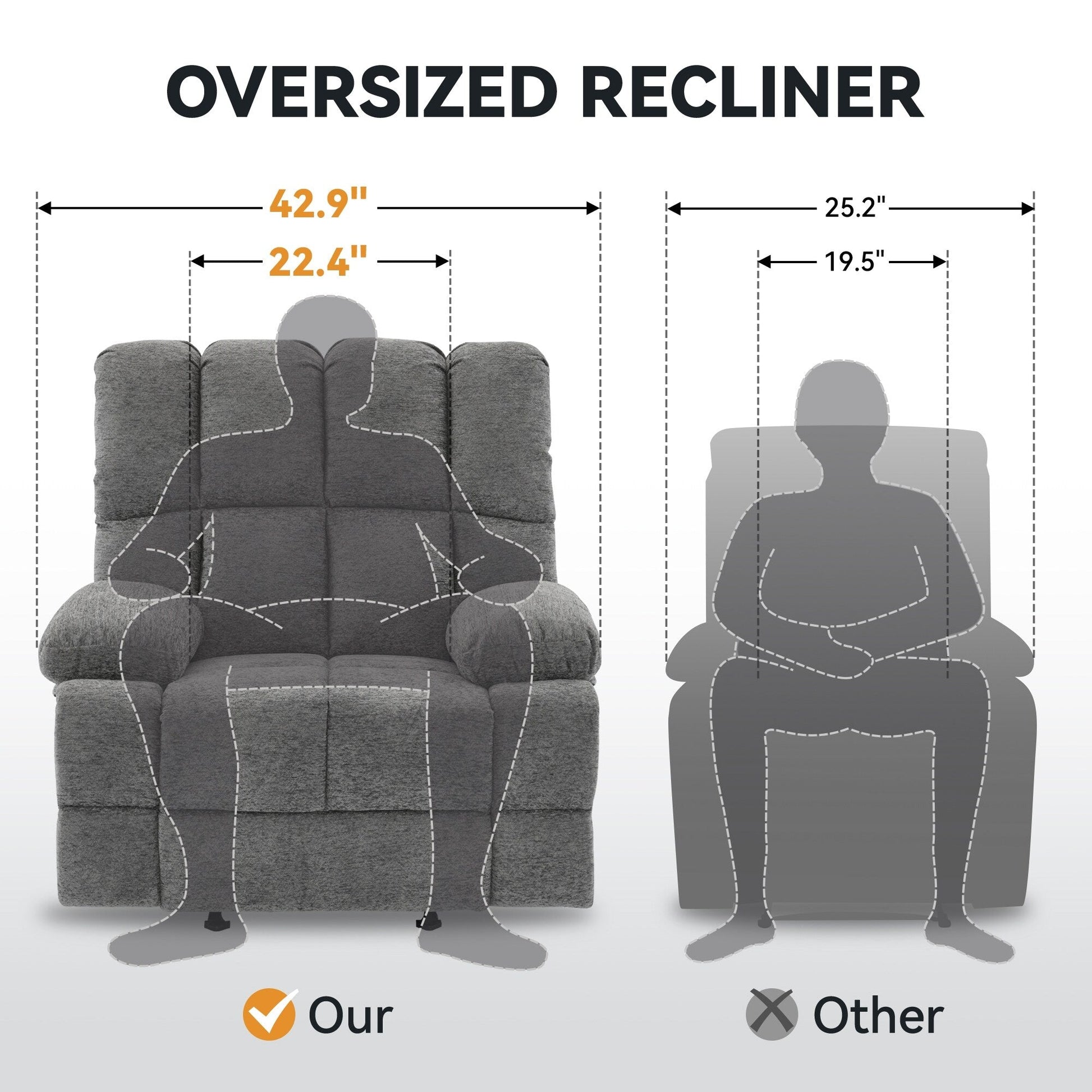 Poltrona reclinabile manuale oversize imbottita in...