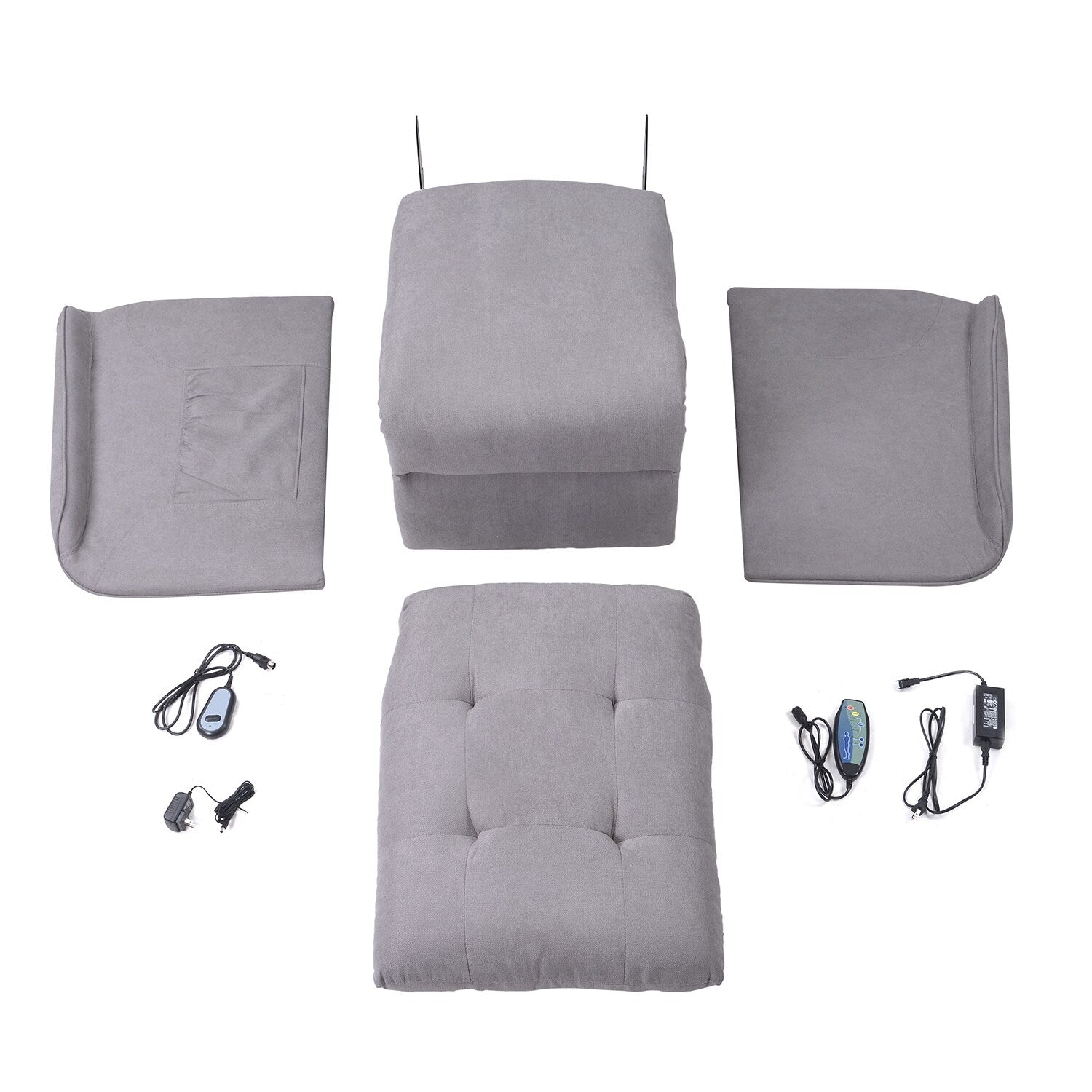 Poltrona reclinabile elettrica grigia con massaggio regolabile, cuscino imbottito, telecomando e comode tasche laterali