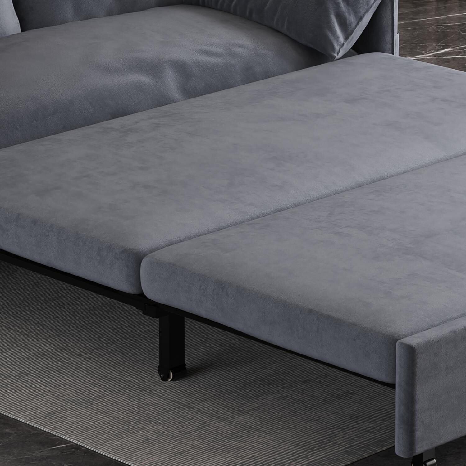 Divano letto estraibile in velluto grigio...