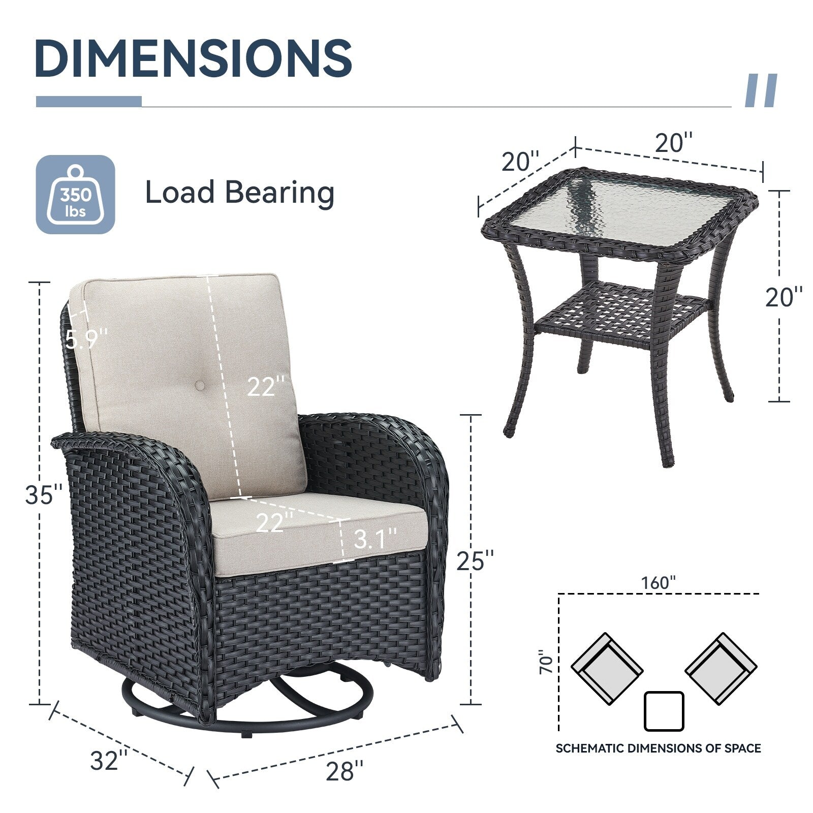 Set di mobili da esterno da 3 pezzi...