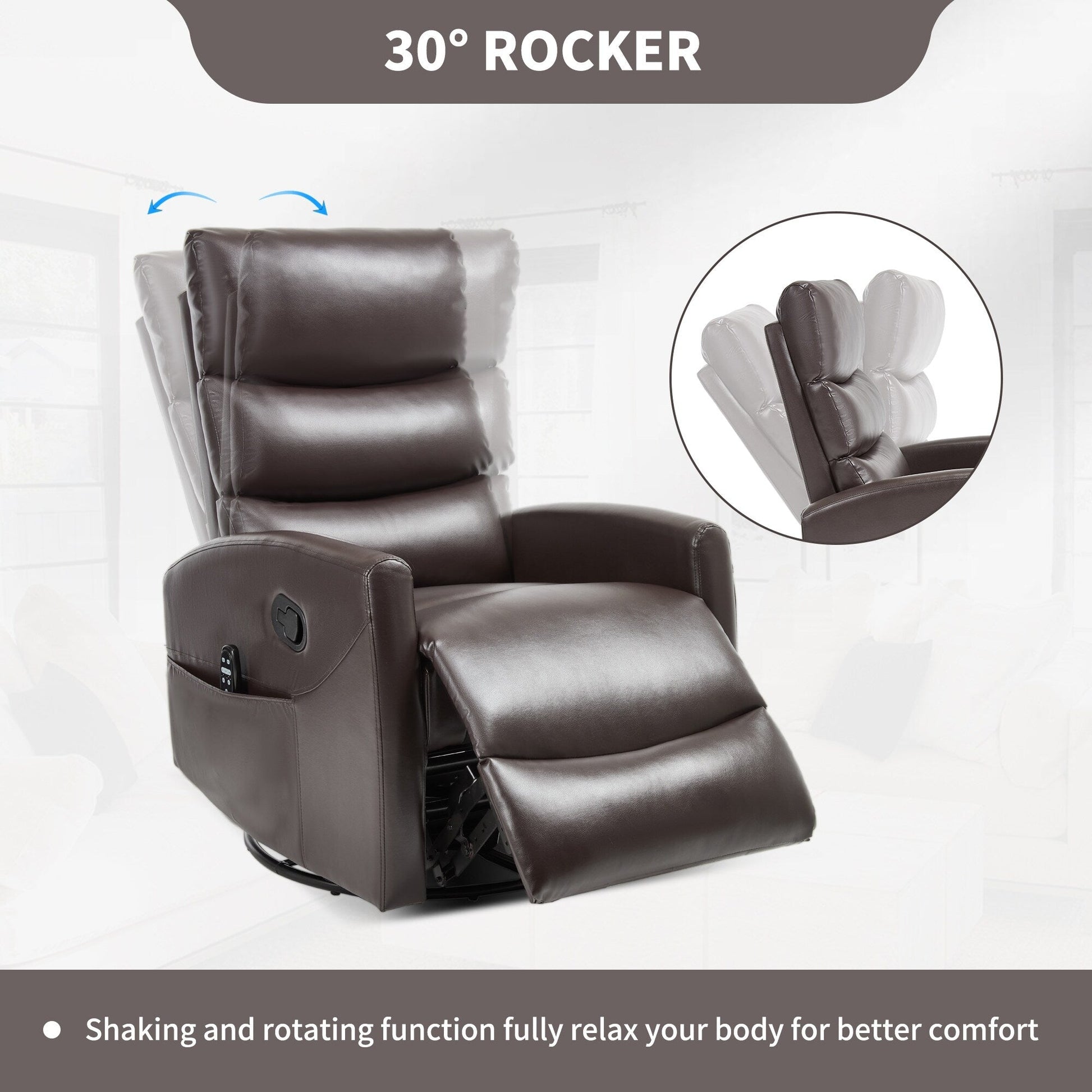 Poltrona reclinabile manuale con massaggio termico, dondolo e girevole in tessuto per soggiorno