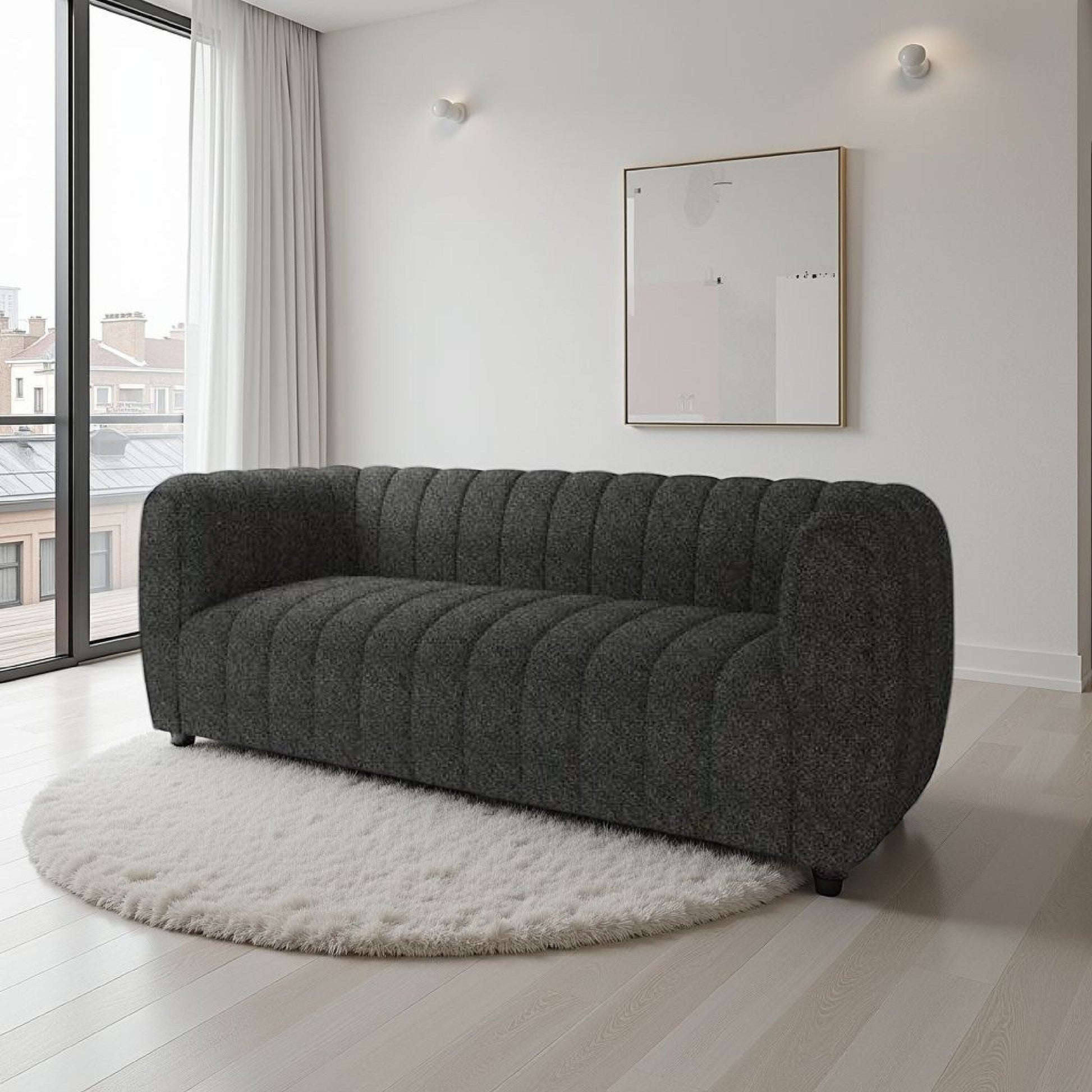 Divano Hery, 83 pollici, bouclé nero, dettagli trapuntati...