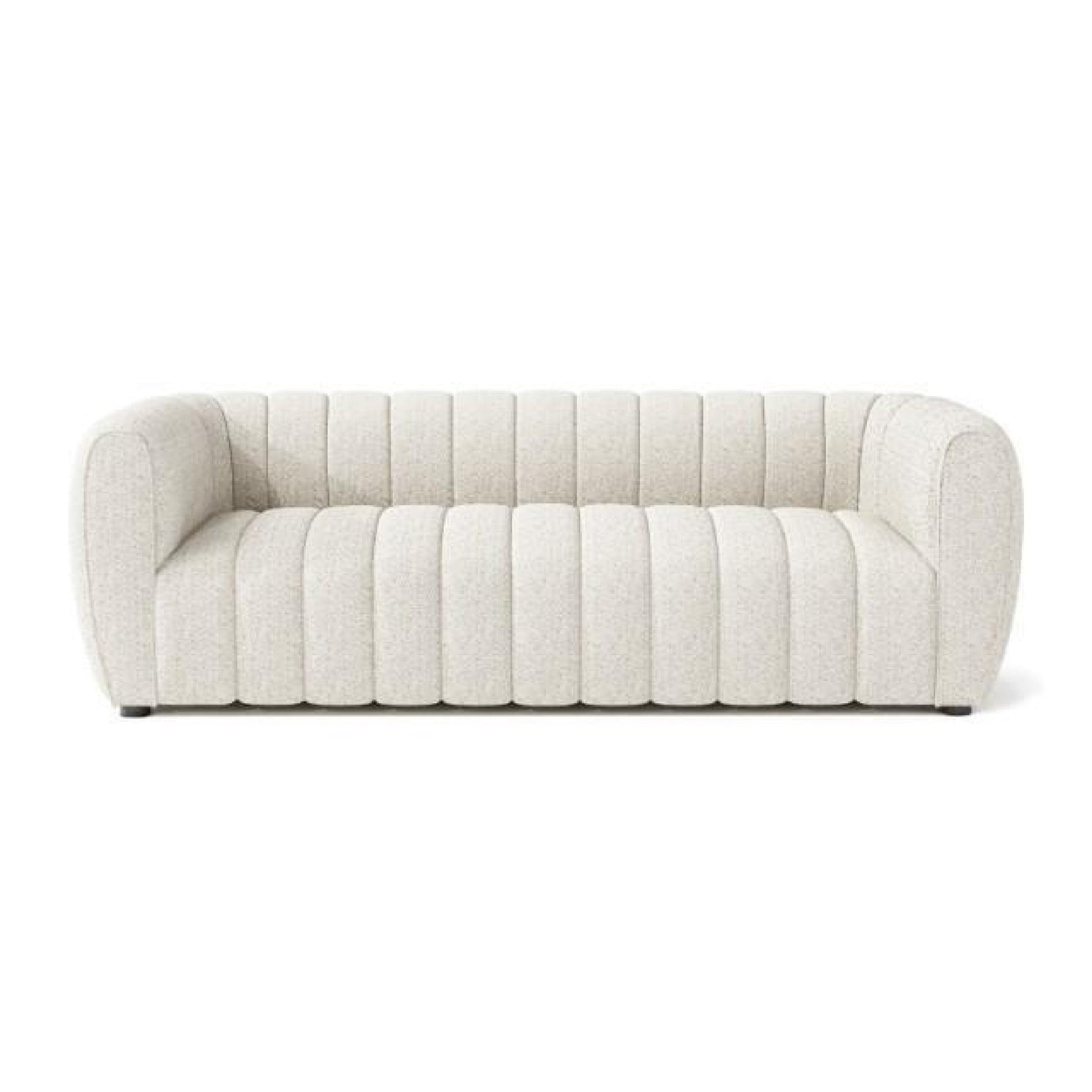 Divano Hery, 83 pollici, bianco bouclé, dettagli trapuntati a canale verticale