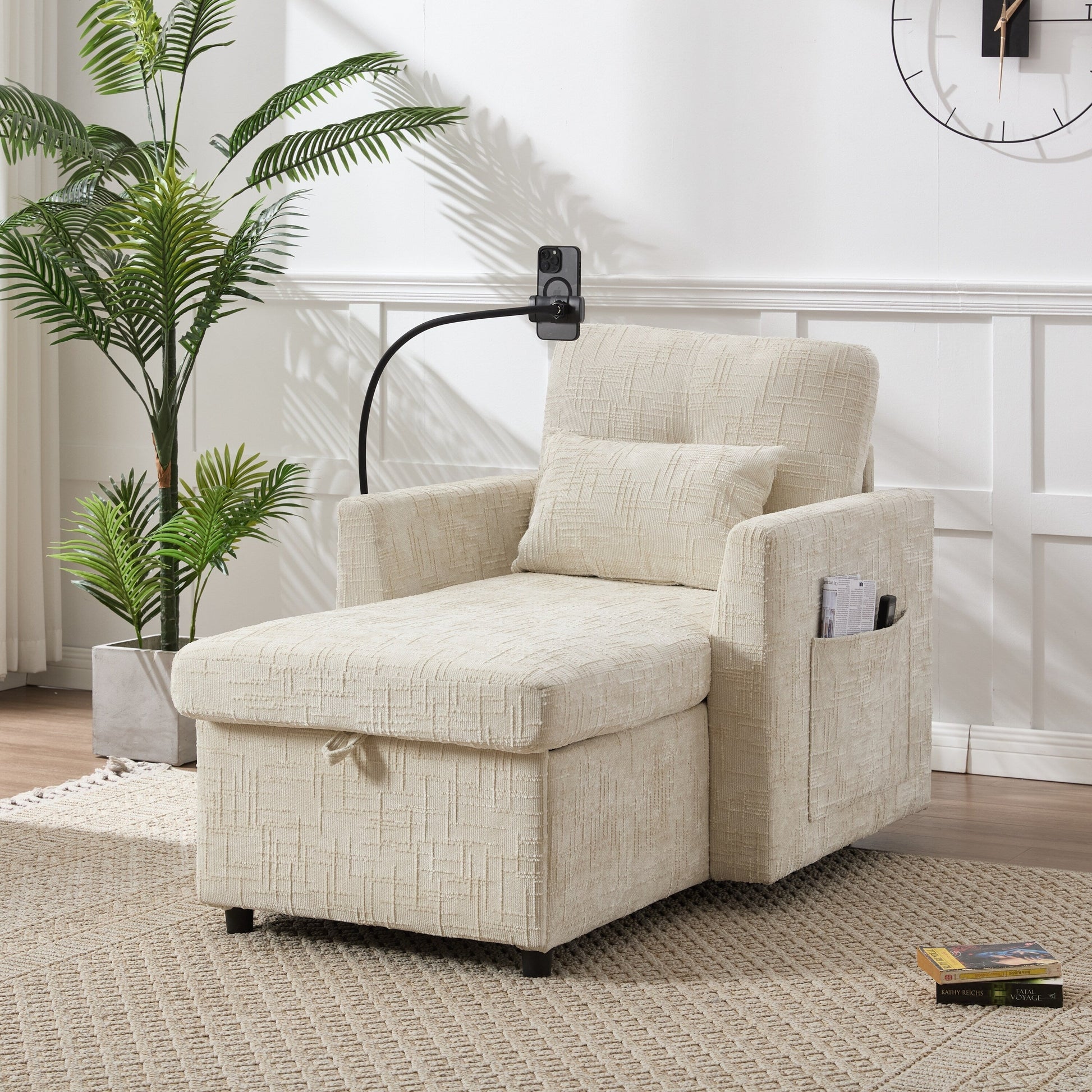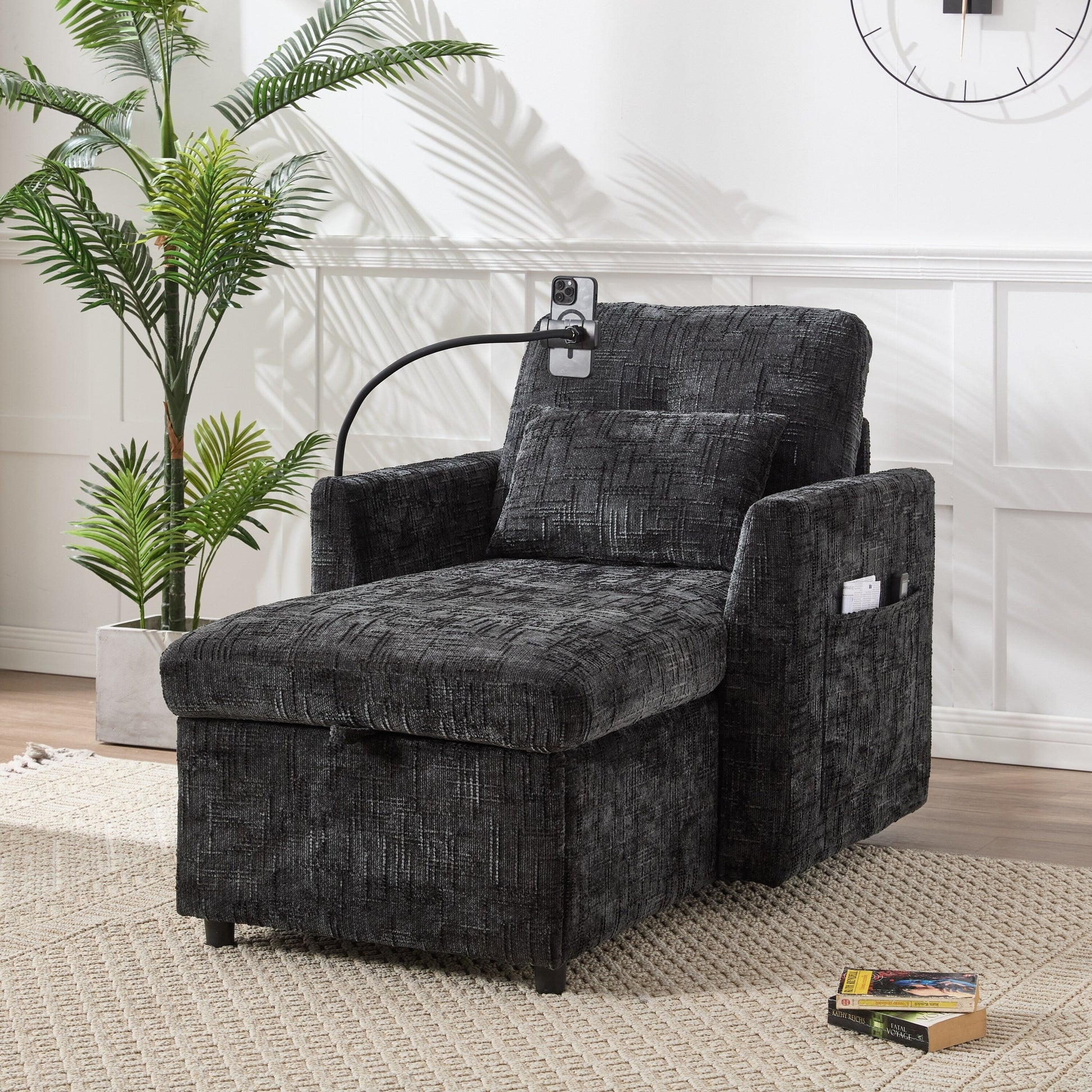 Divano singolo imbottito in ciniglia HOMEFUN con contenitore...