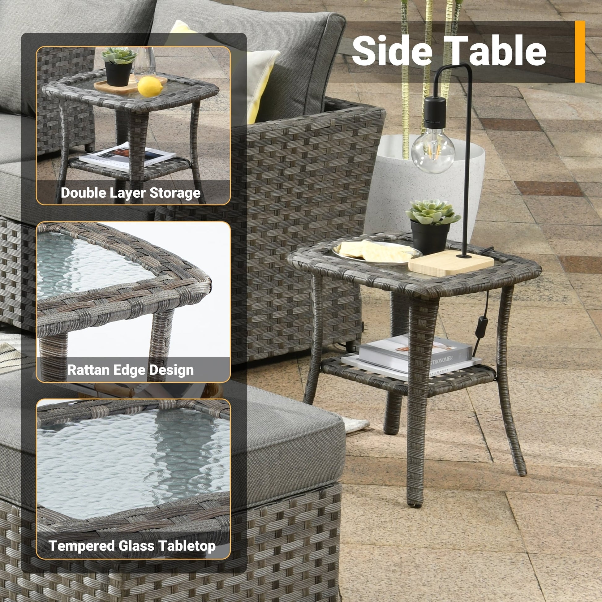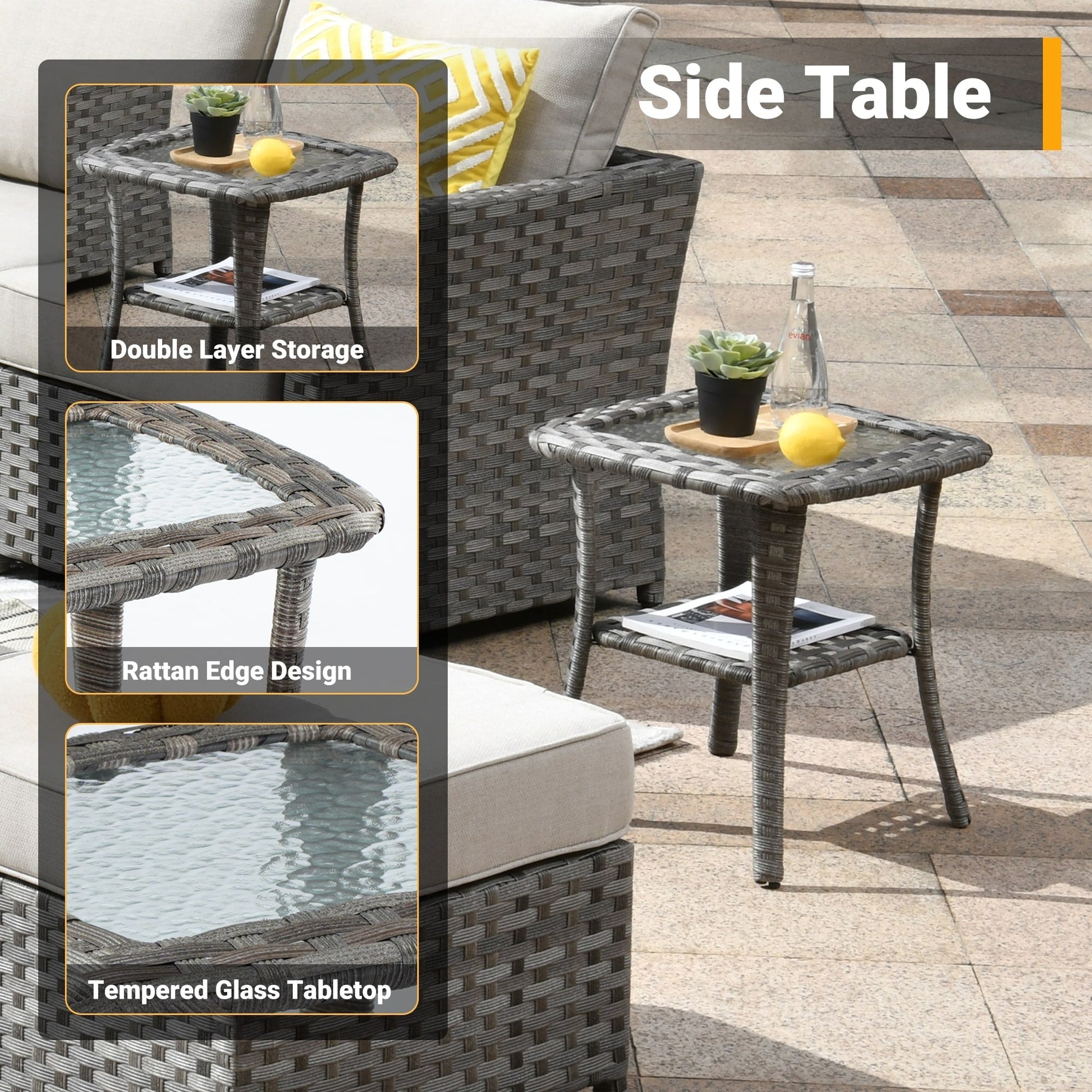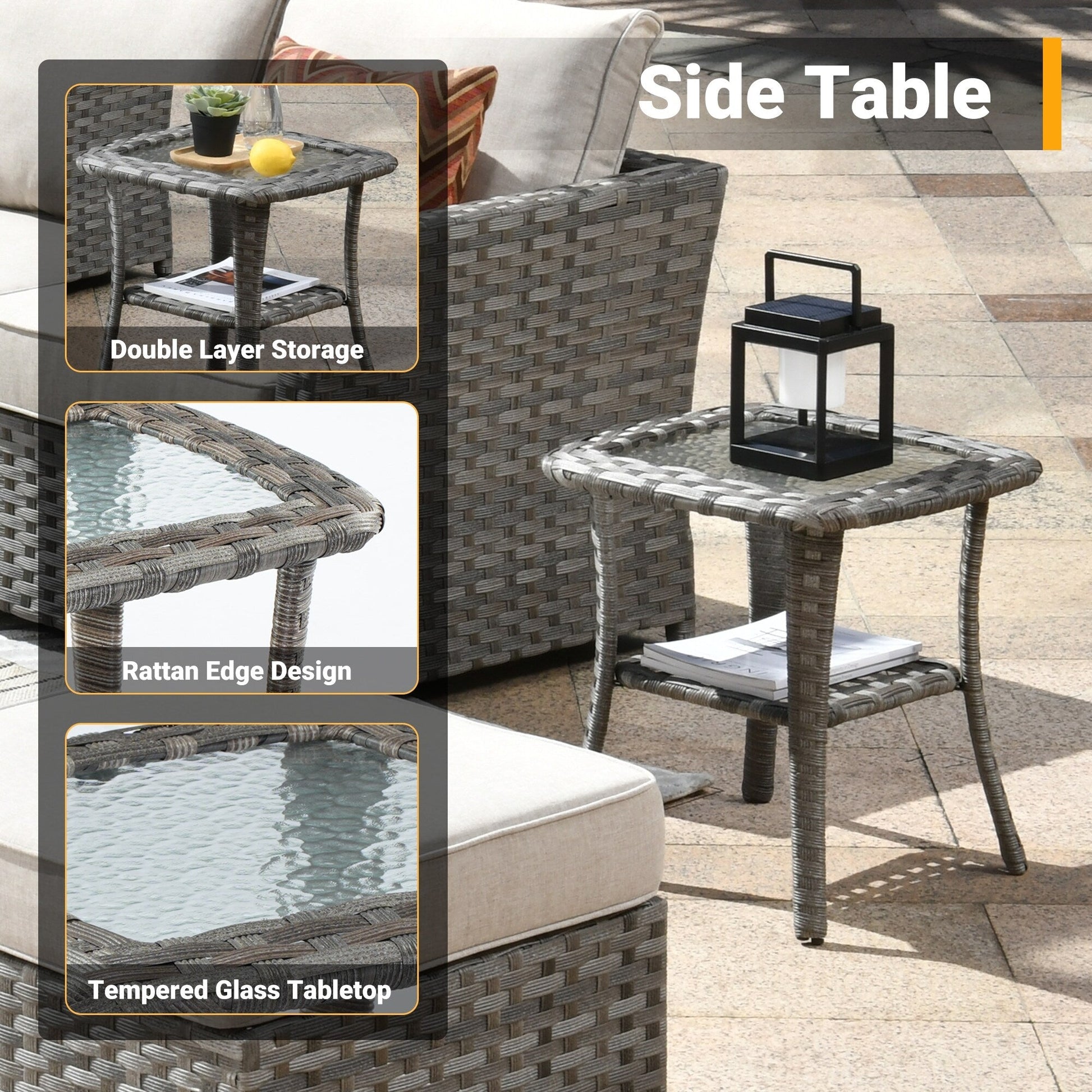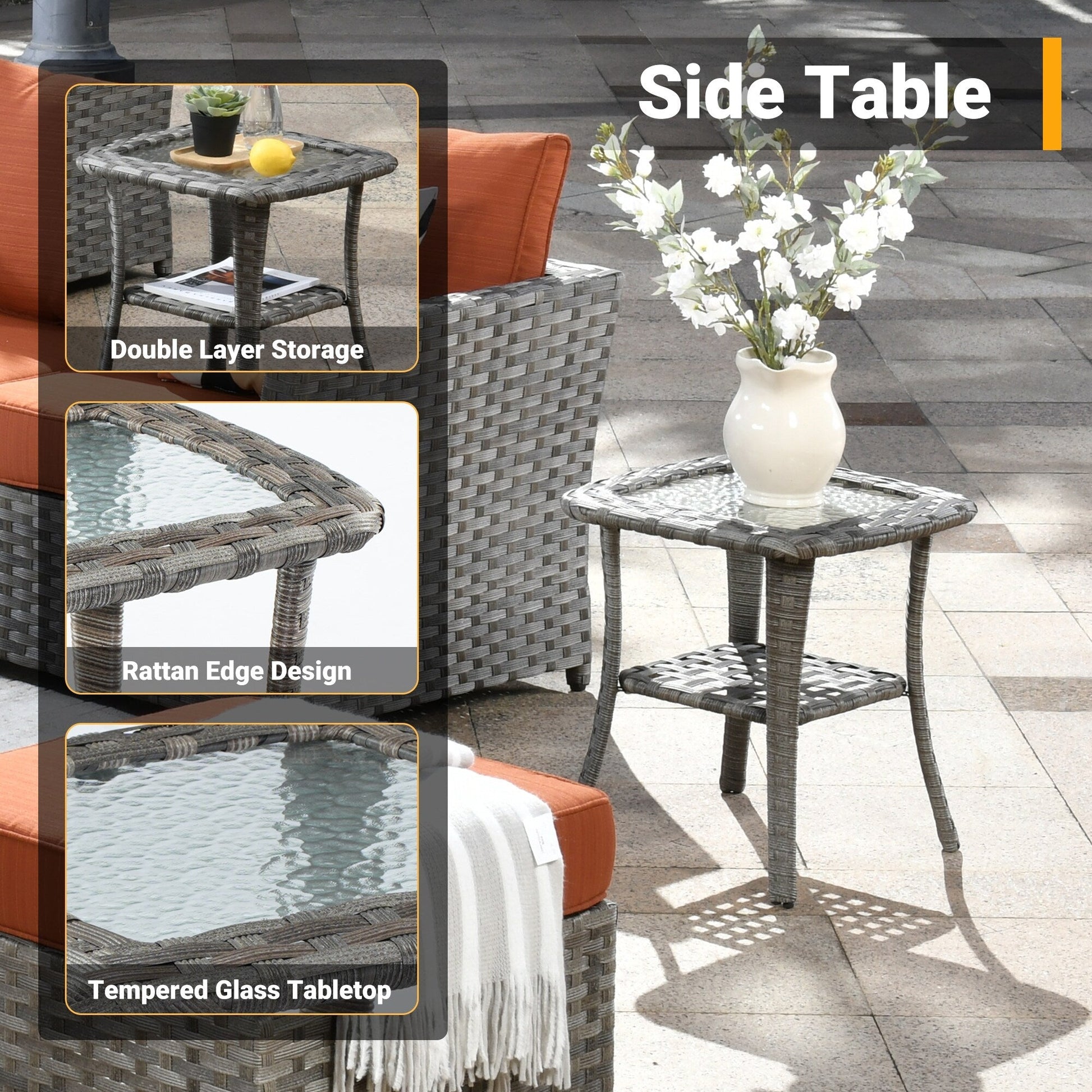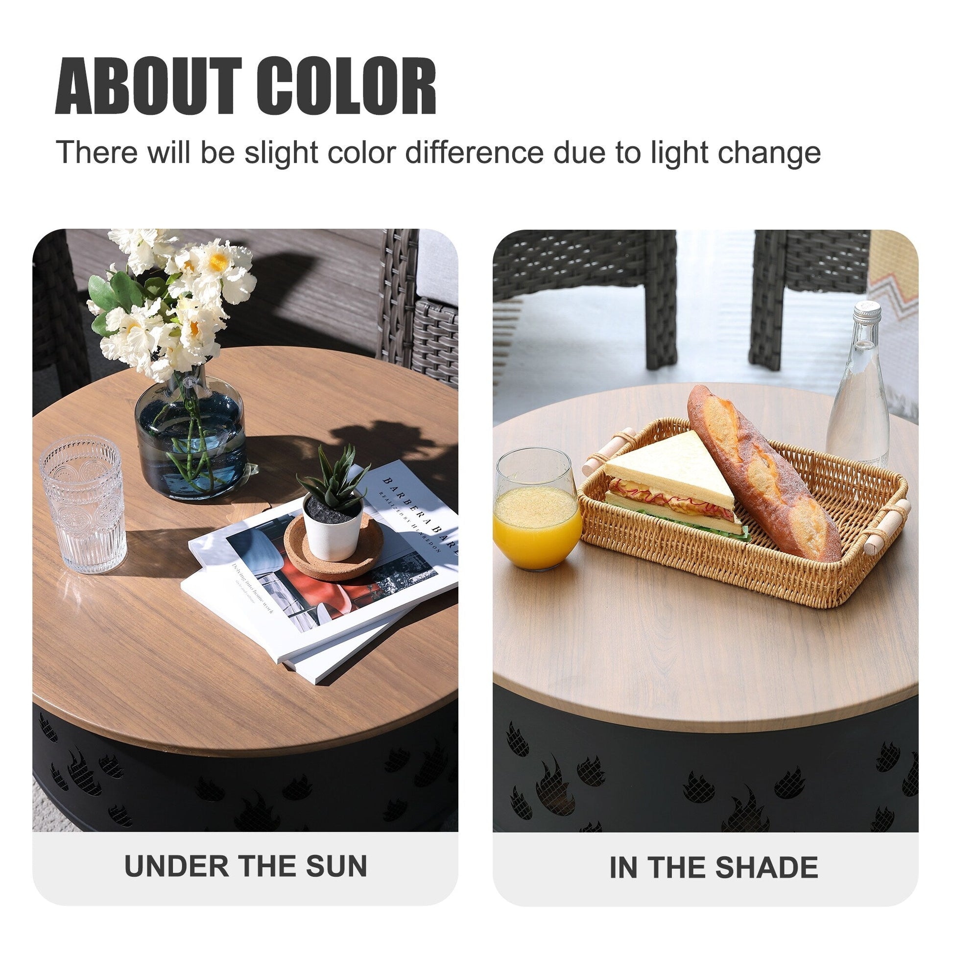 Trasforma il tuo patio esterno in un'oasi di comfort con il set di 4 sedie girevoli in vimini per patio HOOOWOOO con braciere a legna. Questo set include 2 sedie girevoli, 1 tavolino laterale e 1 braciere a legna, creando un'atmosfera rilassante e un ambiente ideale per una piacevole conversazione con gli amici. Realizzato con telaio in acciaio verniciato a polvere e vimini PE intrecciato a mano, questo set è resistente e duraturo. La sedia, con la sua resistente base in acciaio, consente una rotazione agevole in tutte le direzioni e un dolce dondolio avanti e indietro, mentre i suoi spessi cuscini imbottiti in schiuma offrono un'ottima resistenza, proteggendo la zona lombare e offrendo un piacevole relax. È ideale per giardino, cortile, bordo piscina e qualsiasi altro spazio adatto.