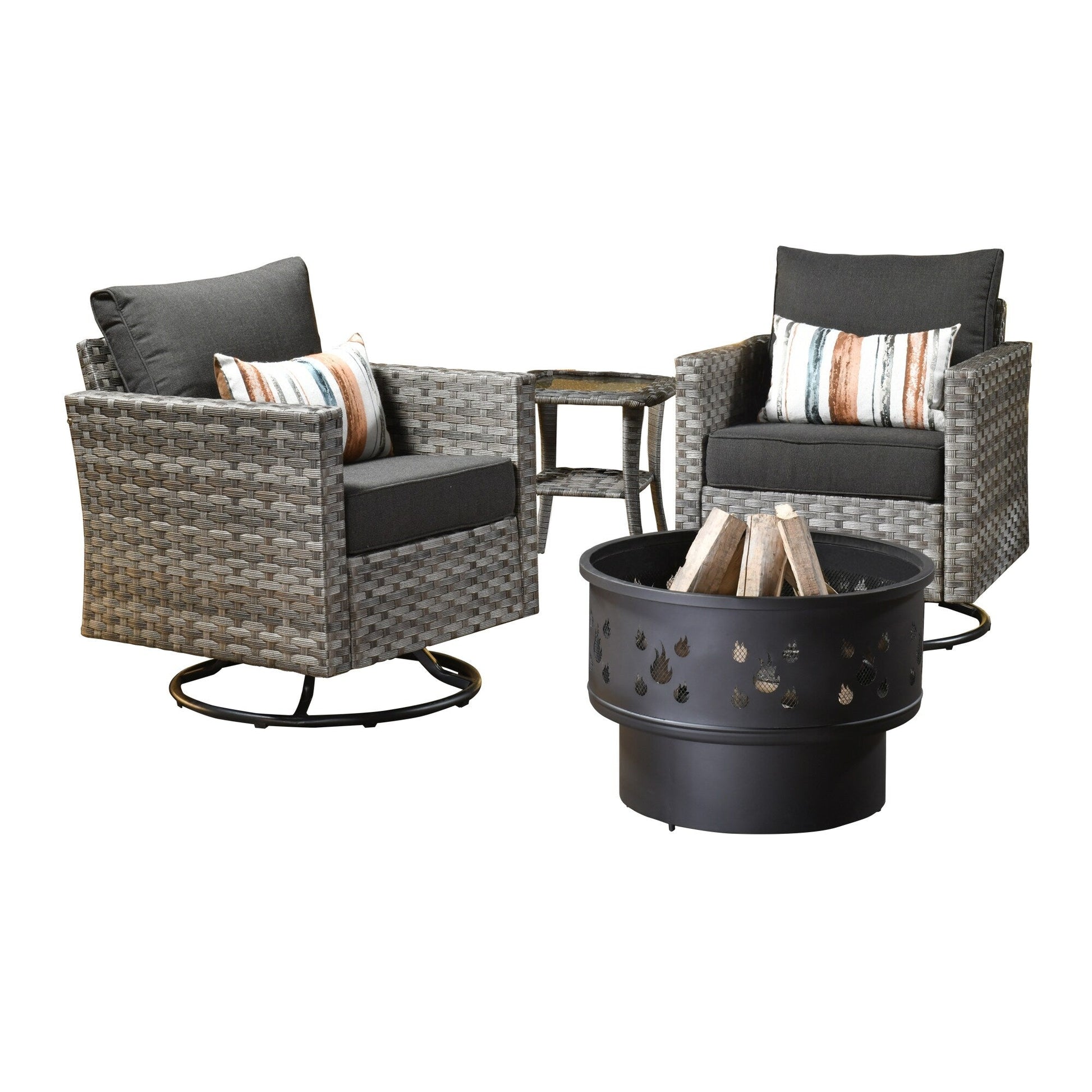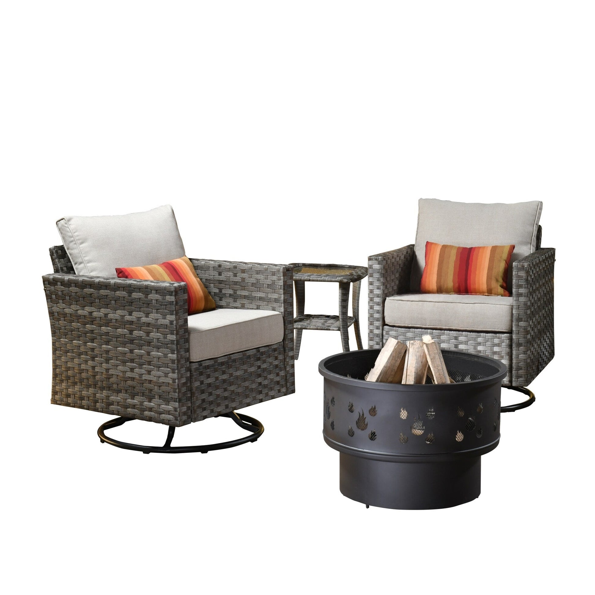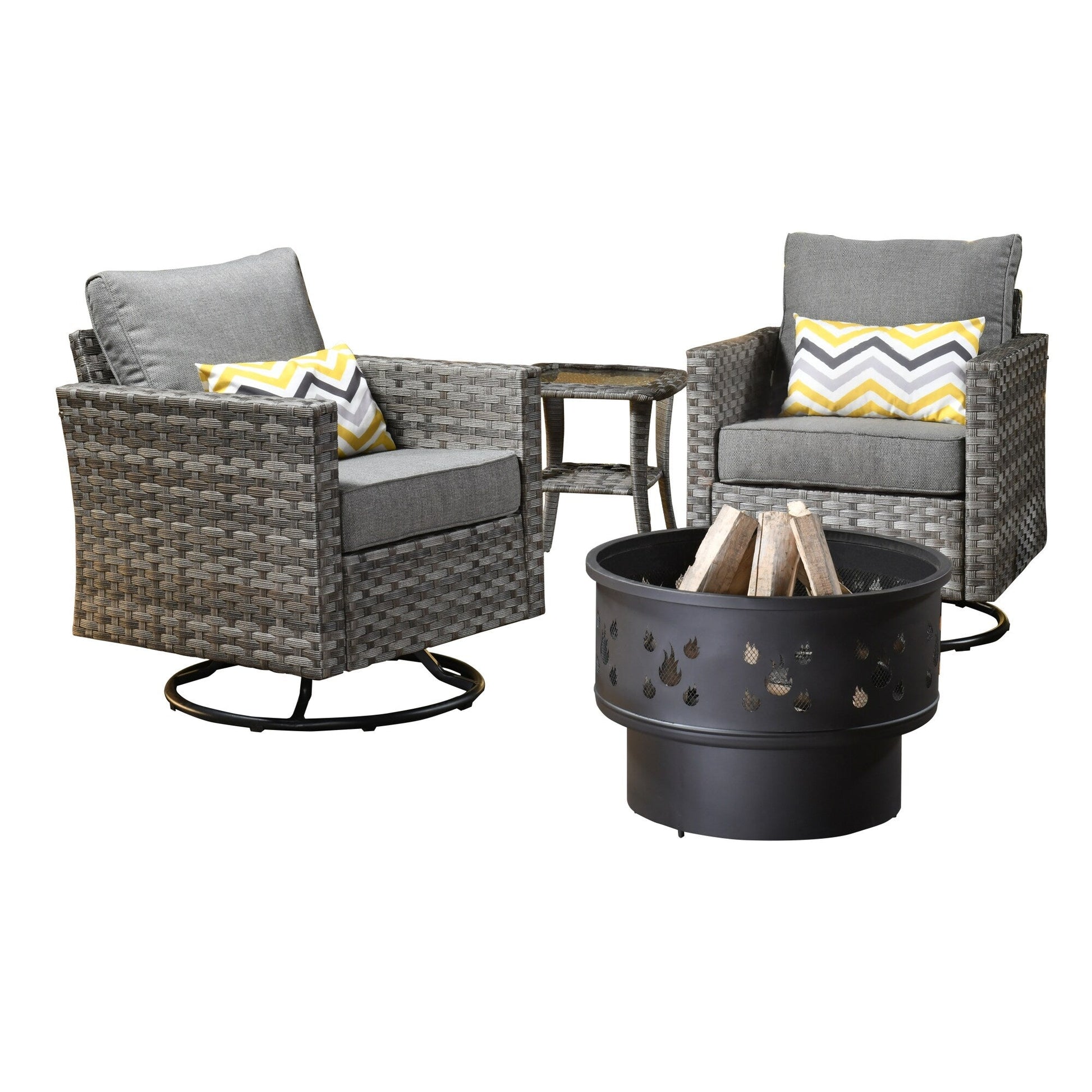 Set di 4 sedie girevoli da giardino in vimini HOOOWOOO con braciere a legna