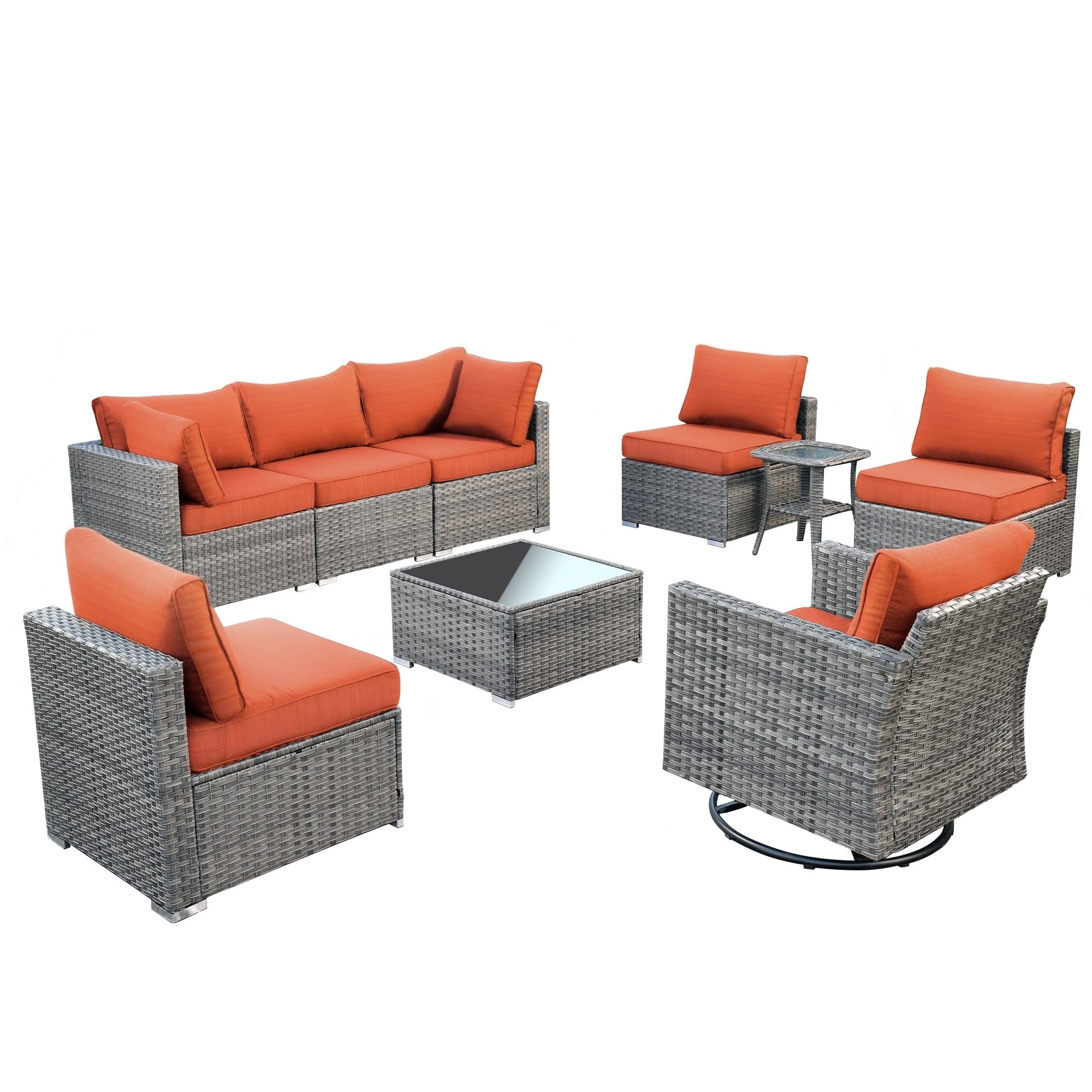 HOOOWOOO Set da esterno componibile in vimini grigio...