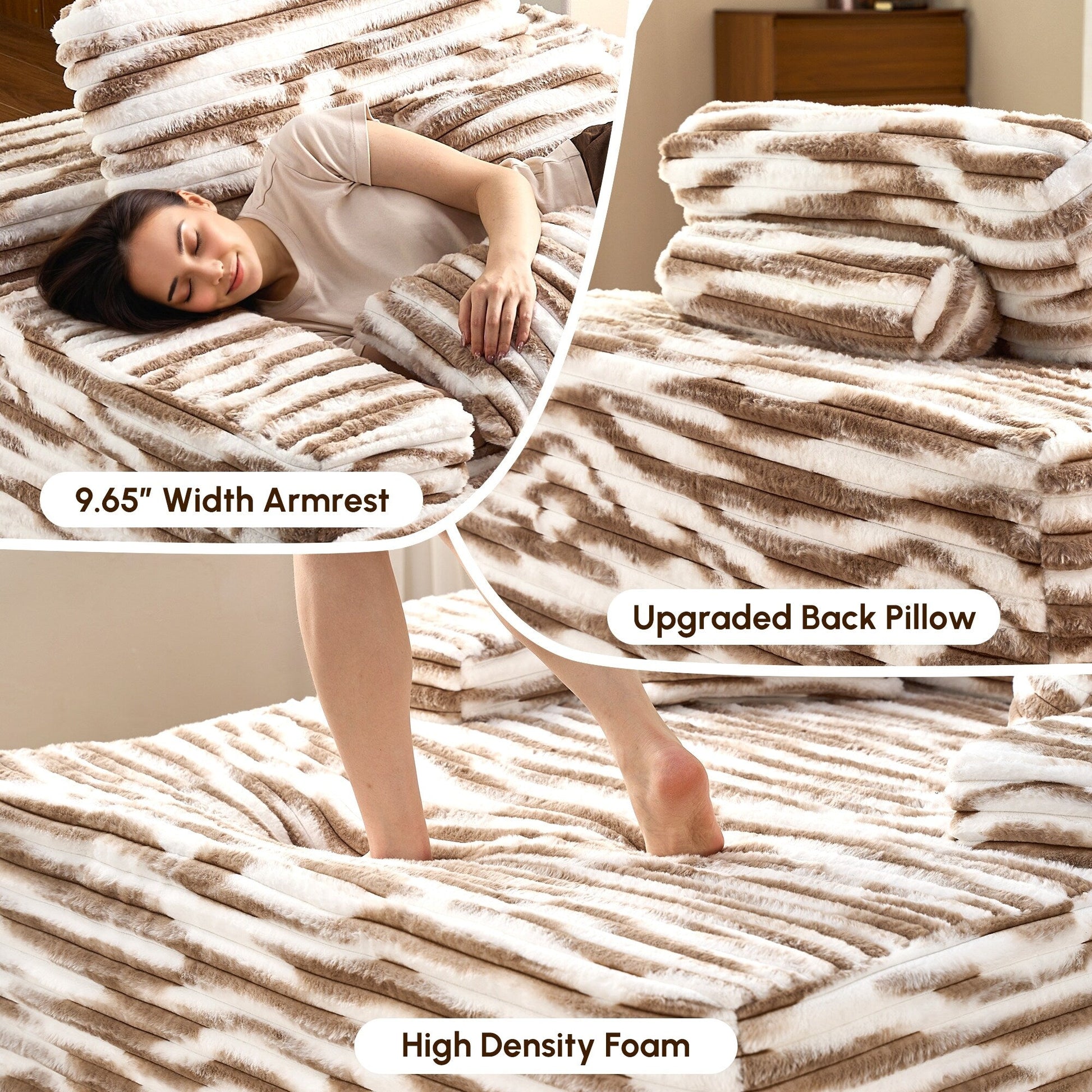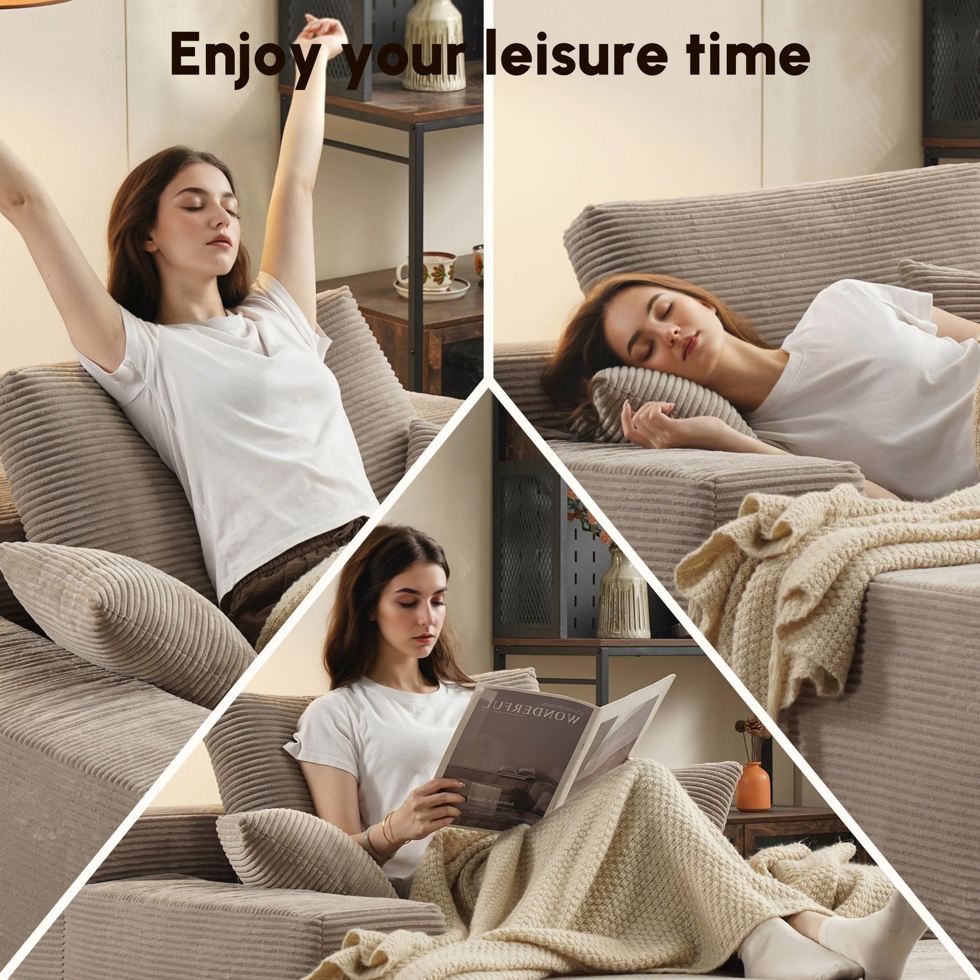 Goditi le tue serate di lettura e di gioco con il divano chaise longue in tessuto moderno HOOOWOOO. Questo divano adotta linee pulite ed elegante design chaise longue, include ampi braccioli, comodi cuscini e cuscini per lo schienale migliorati, offrendo ampio spazio per sedersi e rilassarsi, schienale morbido e sedute ad alta resilienza per un supporto perfetto, creando un'atmosfera elegante e semplice per lo spazio abitativo. Oltre al divano imbottito con schiuma ad alta densità e molle insacchettate per il massimo relax, il rivestimento in tessuto lussuoso offre morbidezza e traspirabilità con la sua consistenza accogliente.