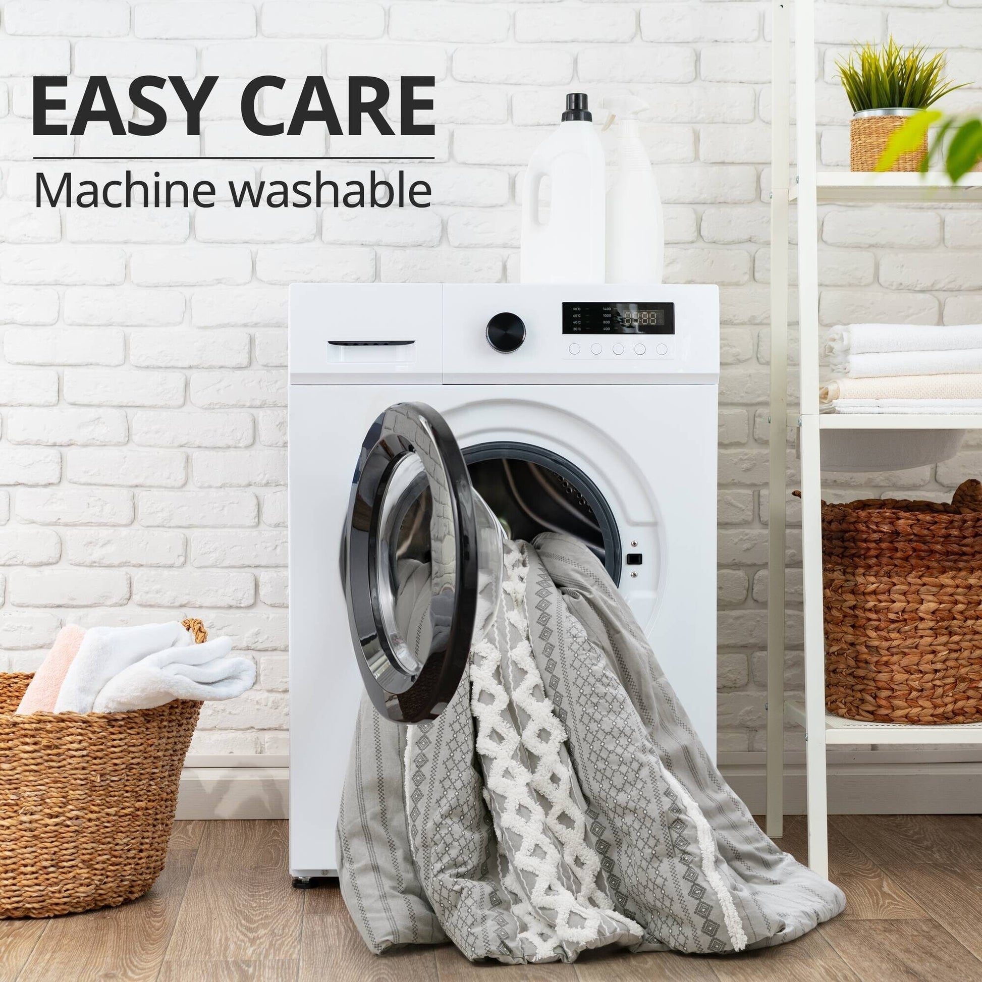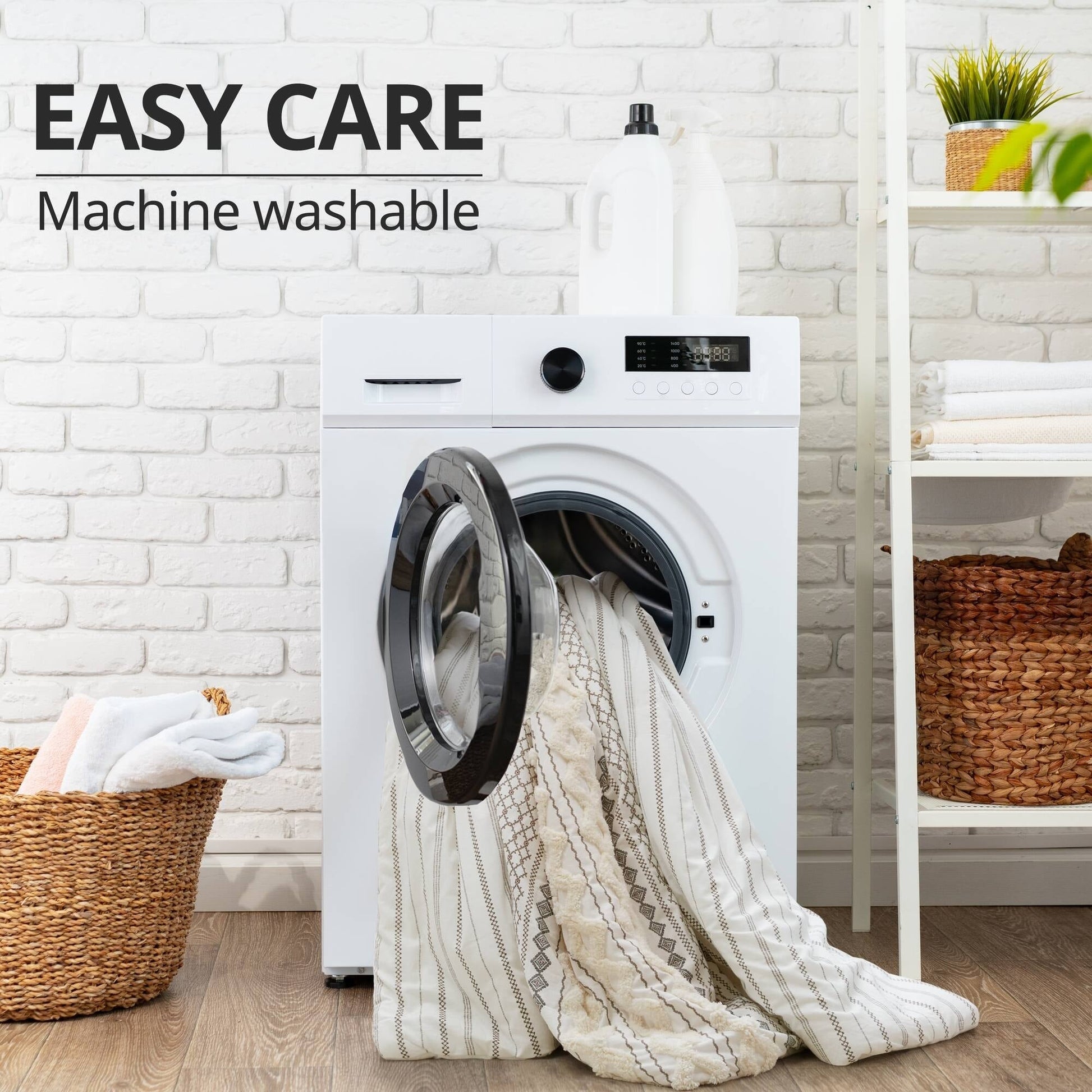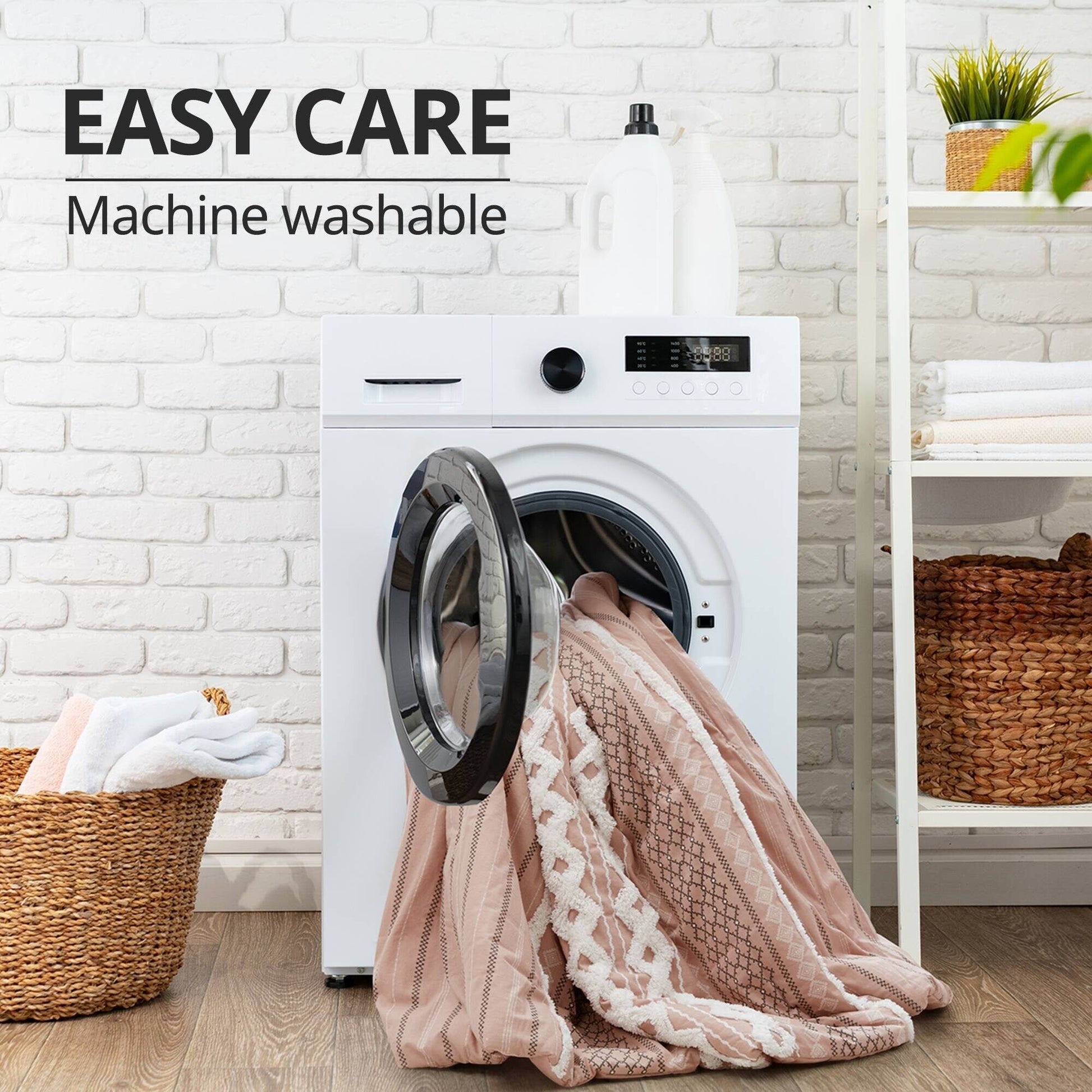 • Lavabile in lavatrice. Data la natura del tessuto in ciniglia, la perdita di pelucchi avverrà naturalmente dalle aree trapuntate nei primi 3-4 lavaggi. Utilizzare un rullo statico per rimuovere i pelucchi (vedere l'etichetta di manutenzione).
