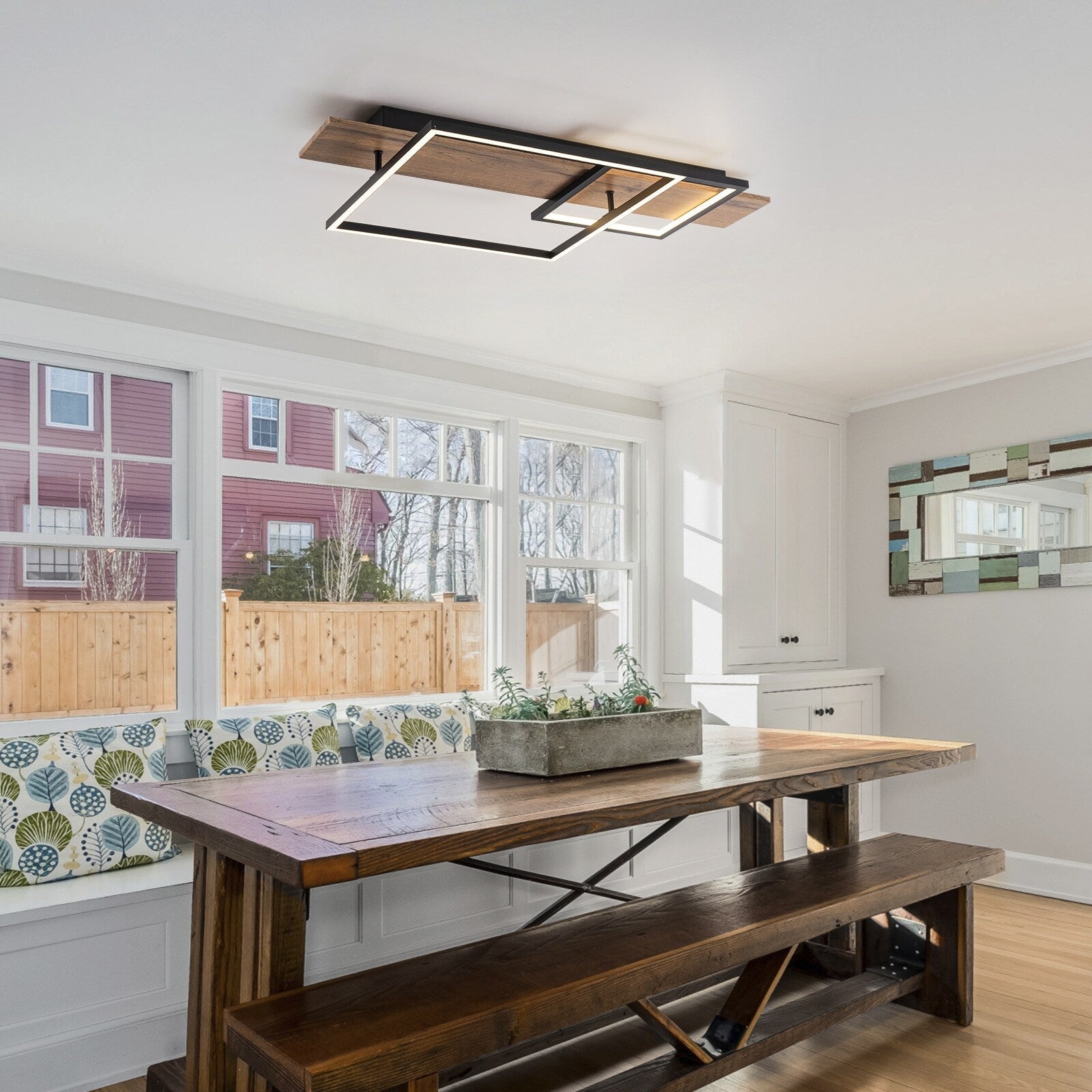 Questa moderna plafoniera a LED è l'aggiunta perfetta a qualsiasi stanza. Realizzata in legno, è elegante e resistente. Il LED integrato offre una luce calda e puoi regolare l'intensità luminosa tramite un dimmer a parete in base alle tue esigenze (dimmer non incluso). Con il suo design elegante e moderno, questa plafoniera a LED sarà sicuramente un elemento di spicco in qualsiasi stanza.