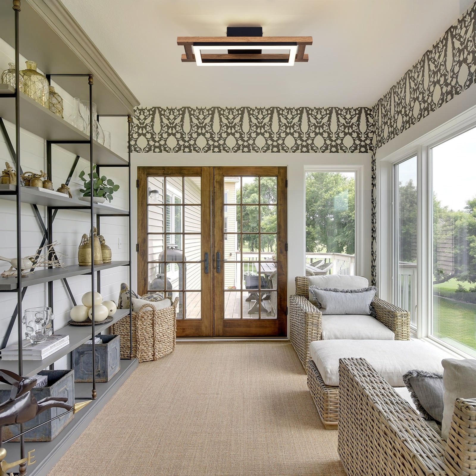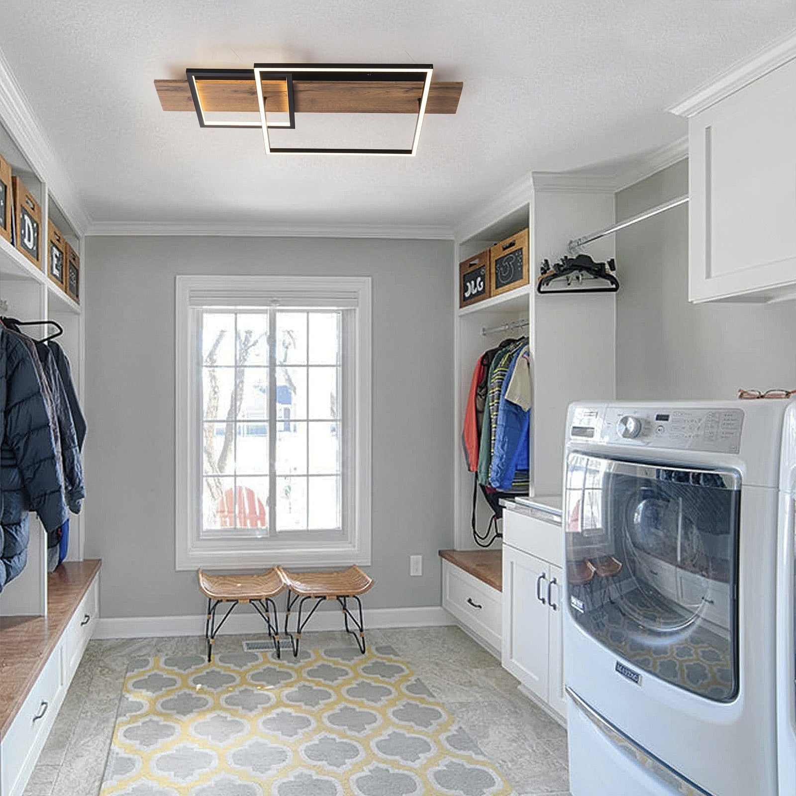 Lampada da soffitto semi-incassata a LED rettangolare in legno integrata per corridoio e ingresso