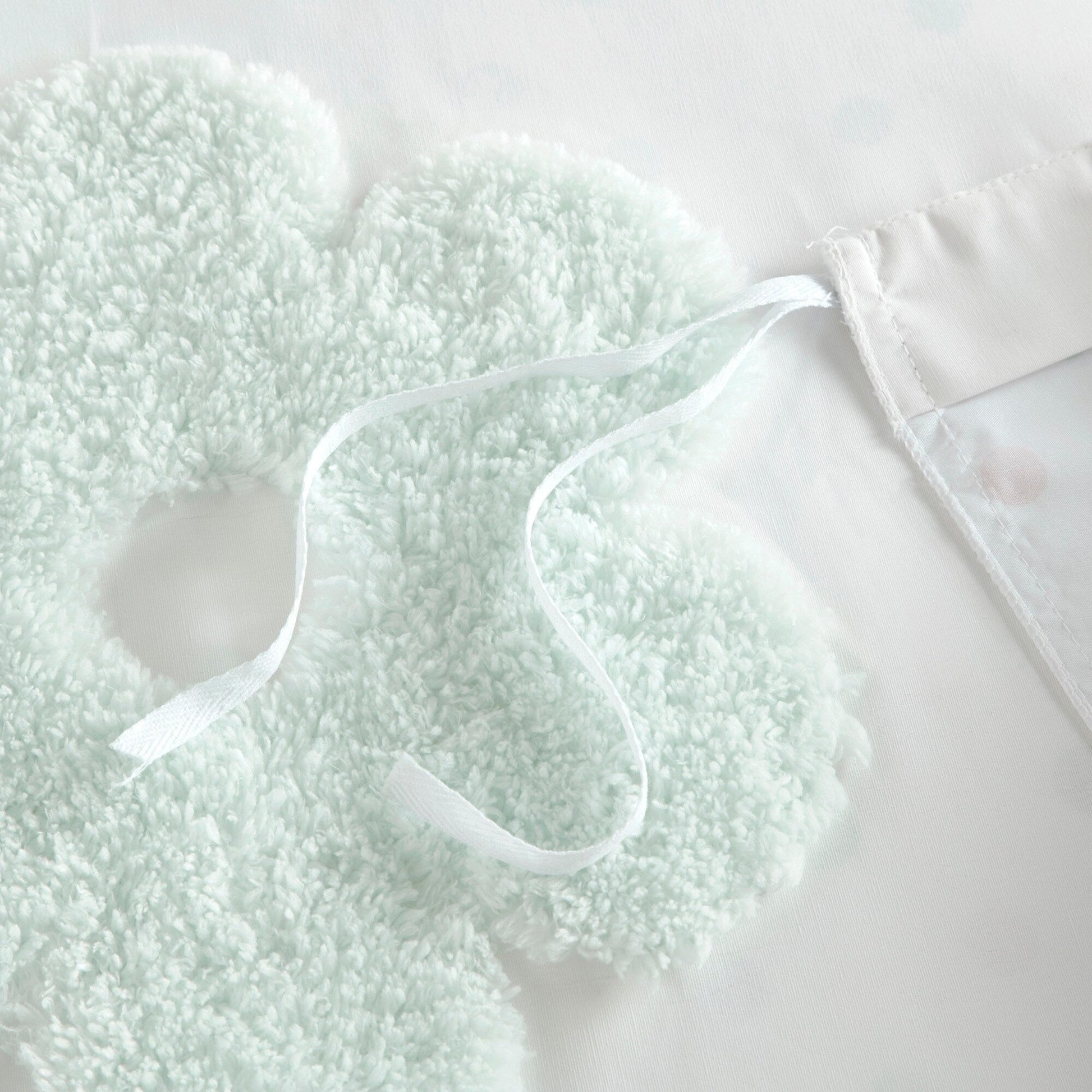 • Presenta un motivo floreale in ciniglia trapuntata e un retro a pois in viola, rosa e acquamarina per un look divertente e colorato.