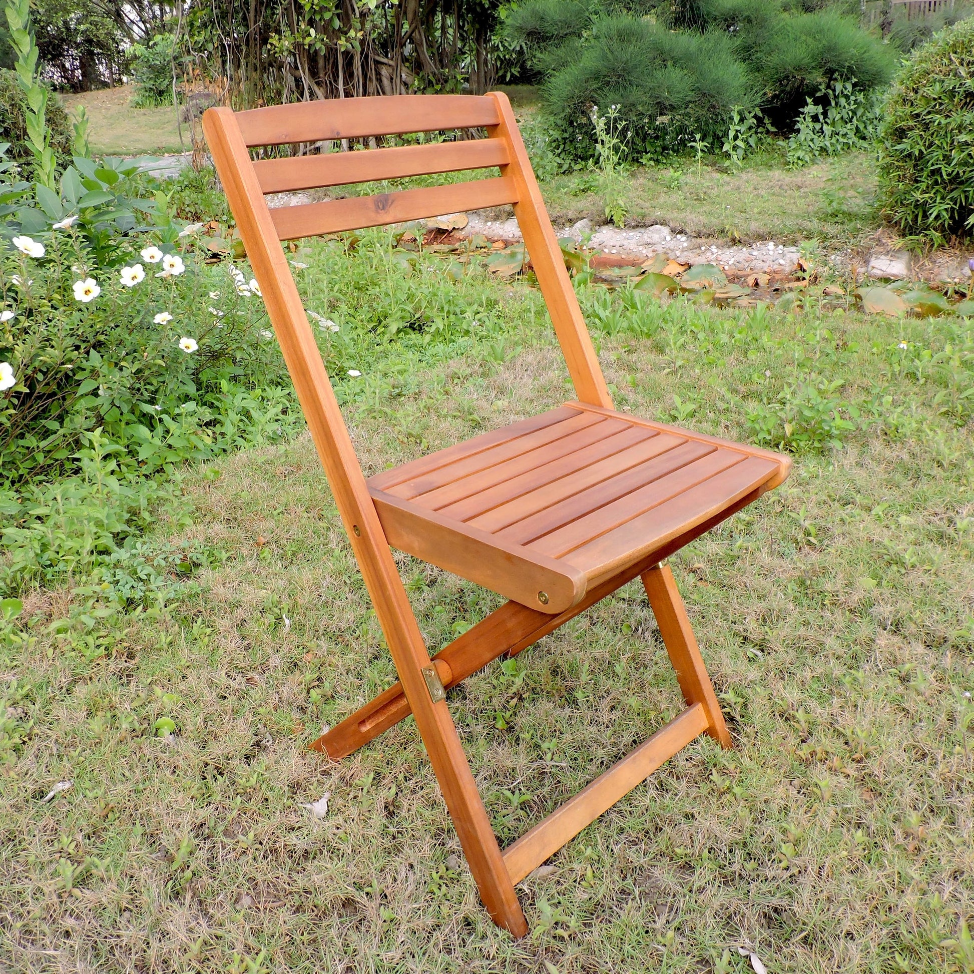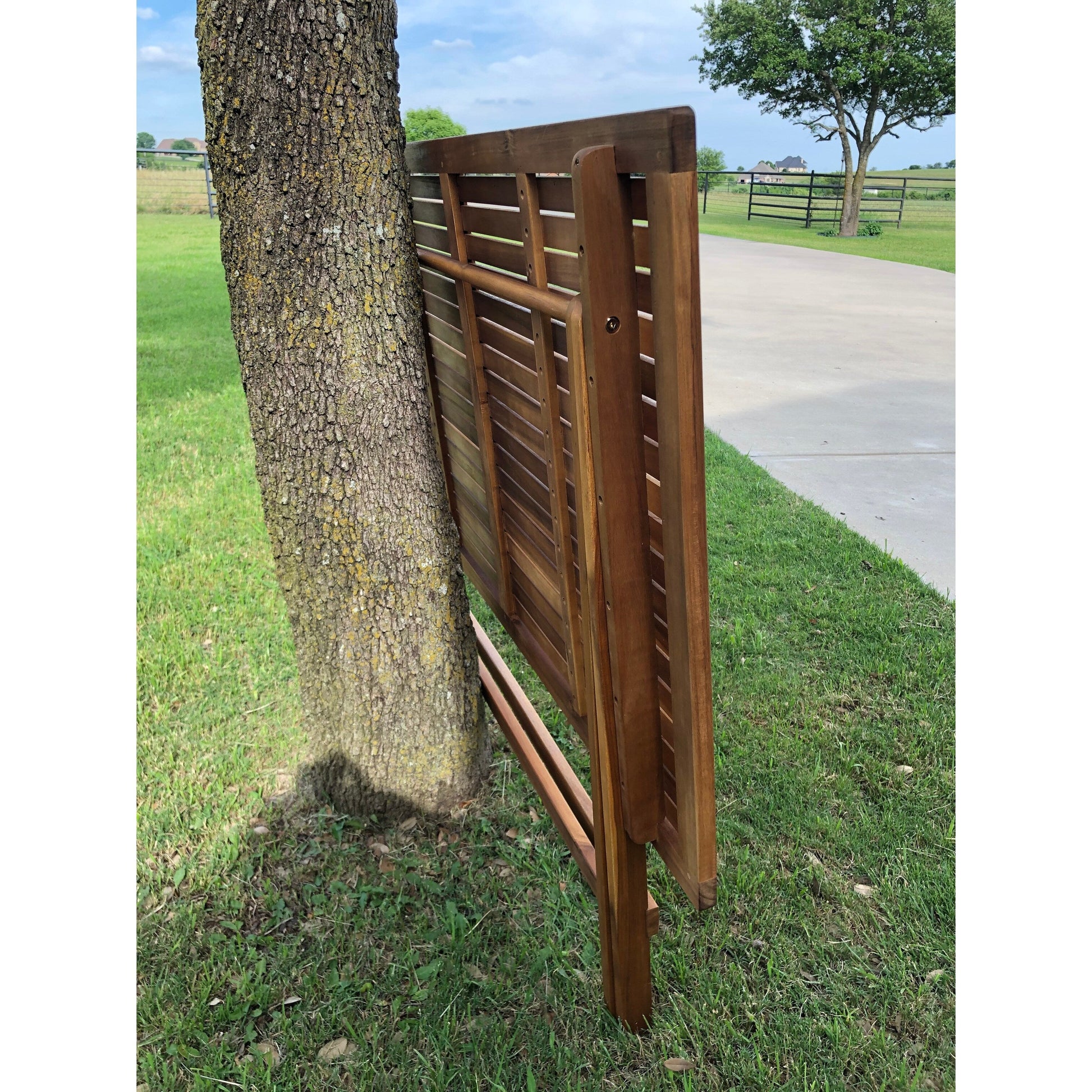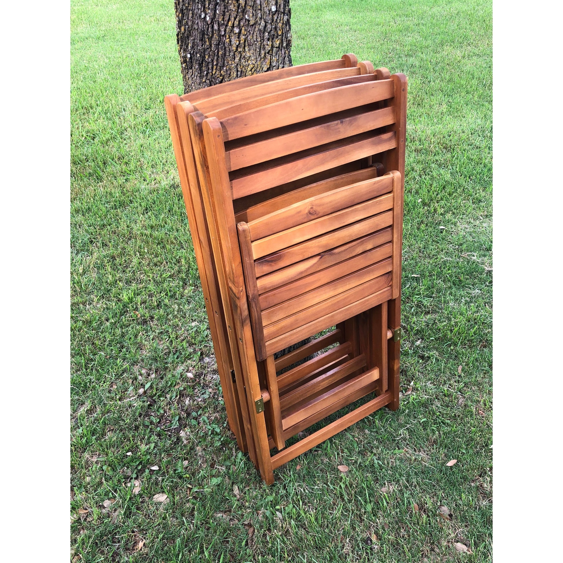 Porta la festa all'aperto con la semplice eleganza di questo set da pranzo da patio. Questo straordinario set da cinque pezzi vanta una robusta struttura in legno di acacia per una lunga durata. Il set include un tavolo da pranzo rettangolare pieghevole da 122 cm e quattro sedie da pranzo pieghevoli con seduta profonda, rifinite con una finitura marrone brunito che non passerà inosservata.