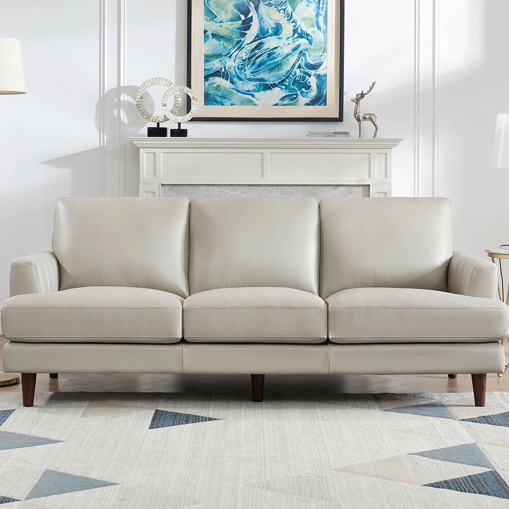 Il divano in pelle Cassia è un modello sportivo dal tocco sofisticato. Il cuscino dello schienale e il bracciolo presentano cuciture in pelle a forma di busta che gli conferiscono un tocco distintivo.