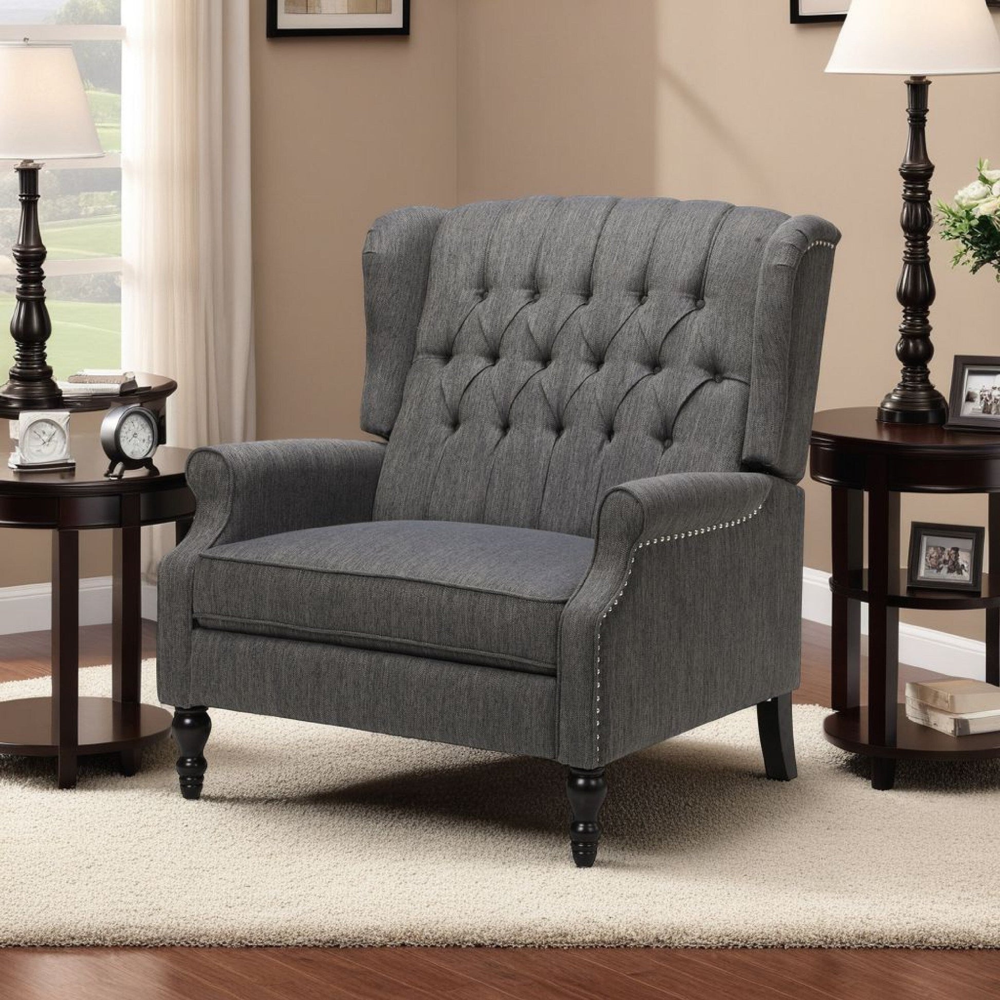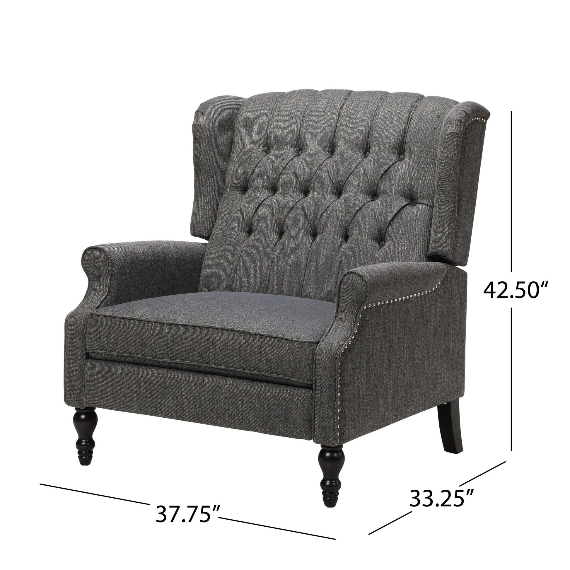 Trasforma la tua esperienza di relax con questa poltrona reclinabile manuale da un posto e mezzo. Vanta uno schienale a orecchioni con lavorazione capitonné grigio scuro e cuciture a nido d'ape che dona calore bloccando le correnti d'aria e valorizzandone la texture, mentre le borchie applicate a mano creano un fascino artigianale. La funzione di reclinazione push-back consente una facile regolazione e un relax totale. Scopri la nostra collezione Jade per saperne di più.