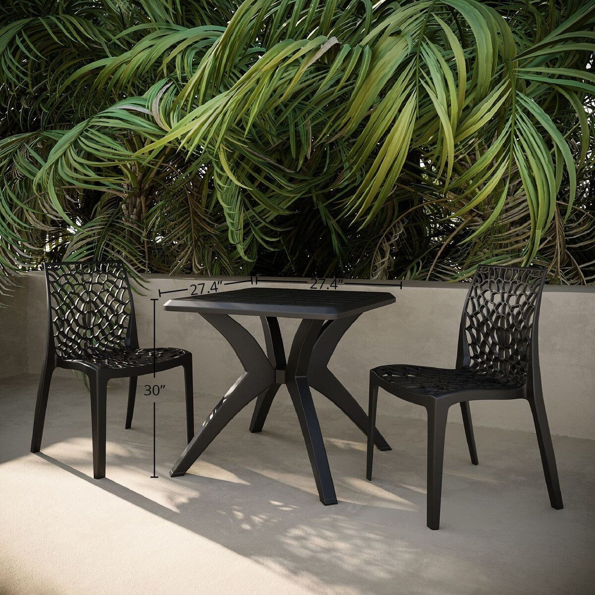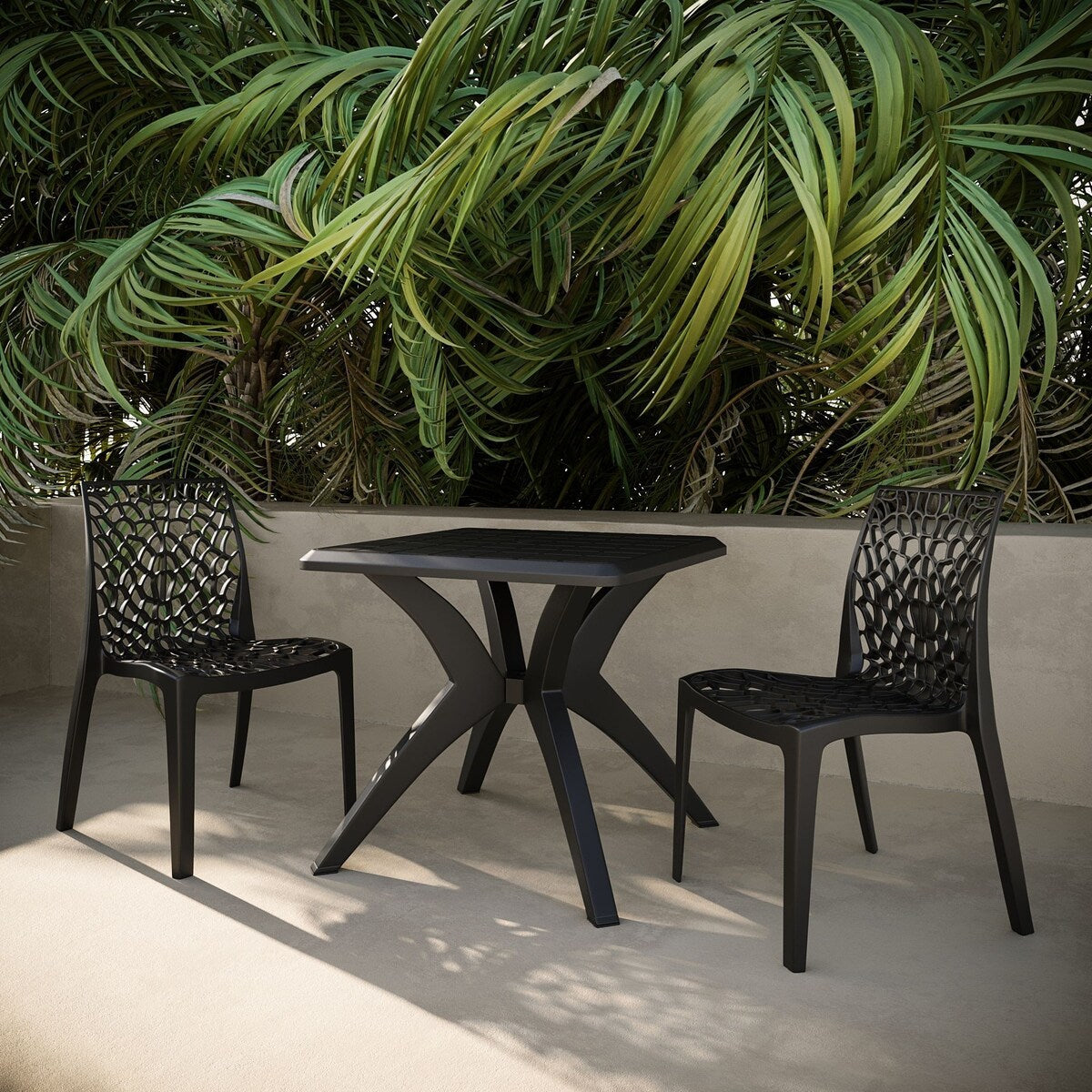 Entra nel regno della raffinata vita all'aria aperta con il set da pranzo da esterno composto da 3 pezzi, composto da sedie Karissa e tavolo Marcus, in una sorprendente tonalità di nero. Il tavolo Marcus, realizzato in materiale plastico intrecciato, imita un'elegante finitura in rattan, creando un equilibrio tra robustezza e stile elegante. Le sue proprietà antipolvere e leggere ne aumentano la praticità, consolidandone l'idoneità a diversi ambienti. Che venga posizionato all'aperto o utilizzato come tavolo da studio per lavorare da casa, questo tavolo mostra versatilità nella forma e nella funzionalità. Insieme alle sedie Karissa, questo set da pranzo ridefinisce il modo in cui comfort, estetica e resistenza possono integrarsi perfettamente, migliorando la tua vita quotidiana.