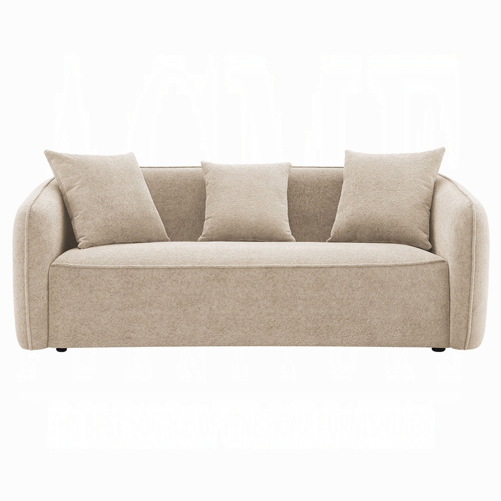 Divano Keina, 3 cuscini decorativi, schienale arrotondato, ciniglia beige, 79 pollici