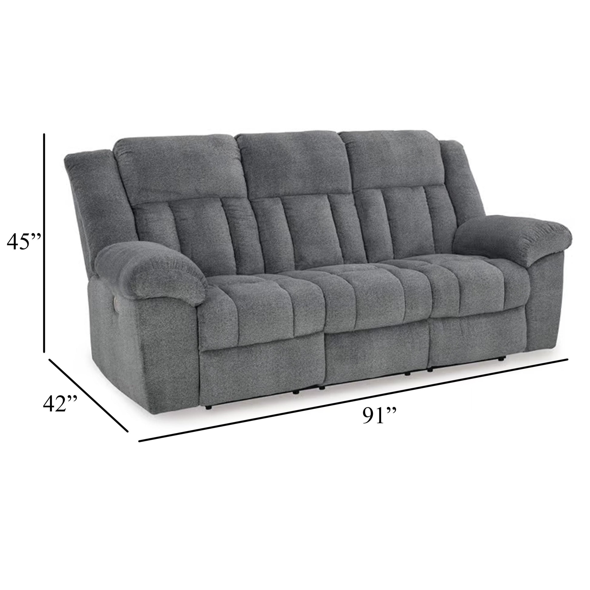 Concedetevi un lussuoso relax con questo divano reclinabile elettrico. Progettato per il massimo comfort, è dotato di una seduta extra profonda, un soffice rivestimento in poliestere grigio ardesia e una poltrona reclinabile su entrambi i lati. Il controllo elettrico one-touch consente infinite posizioni di reclinazione, mentre il poggiatesta regolabile e facilmente visibile e la porta USB a zero consumo migliorano la vostra esperienza. Scoprite la nostra collezione Kendy per ulteriori opzioni.