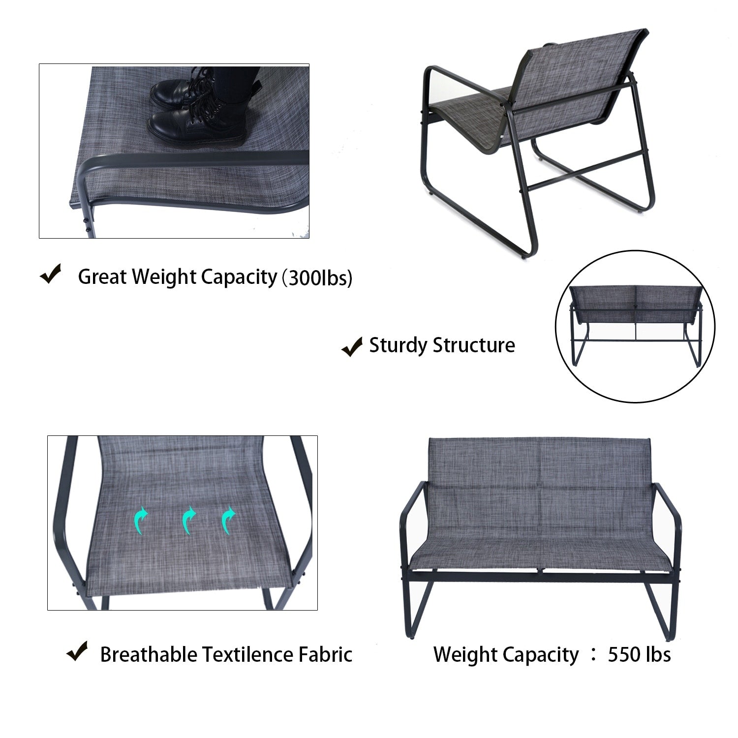 • Comode: le sedie sono larghe 24 pollici e hanno una capacità di carico di 300 libbre. Il tessuto in textilene garantisce il comfort durante i mesi caldi.