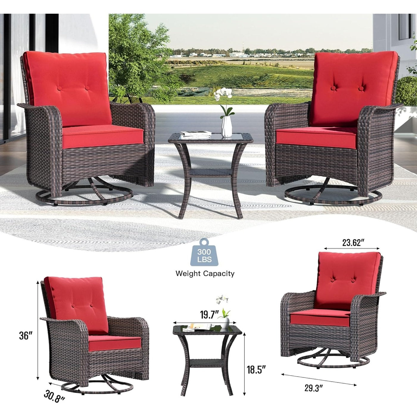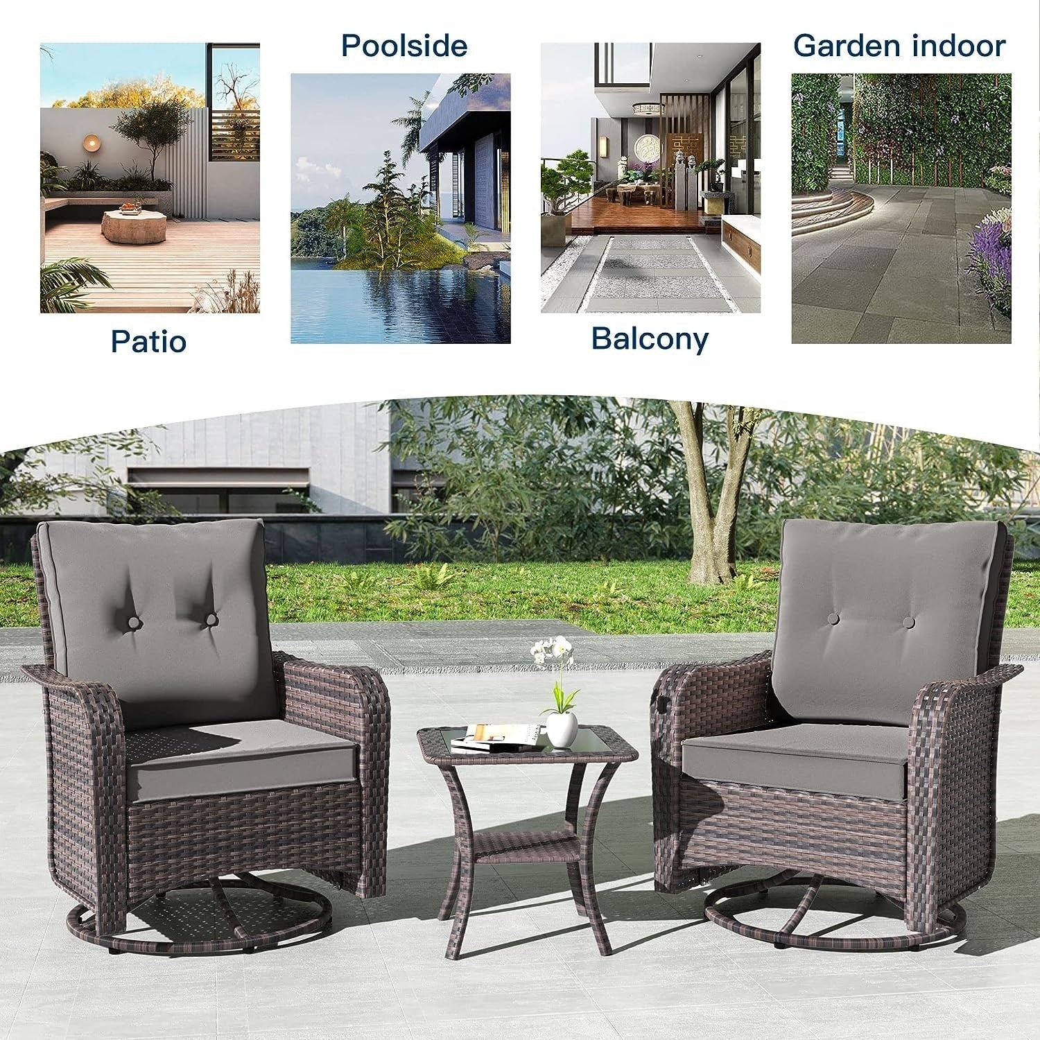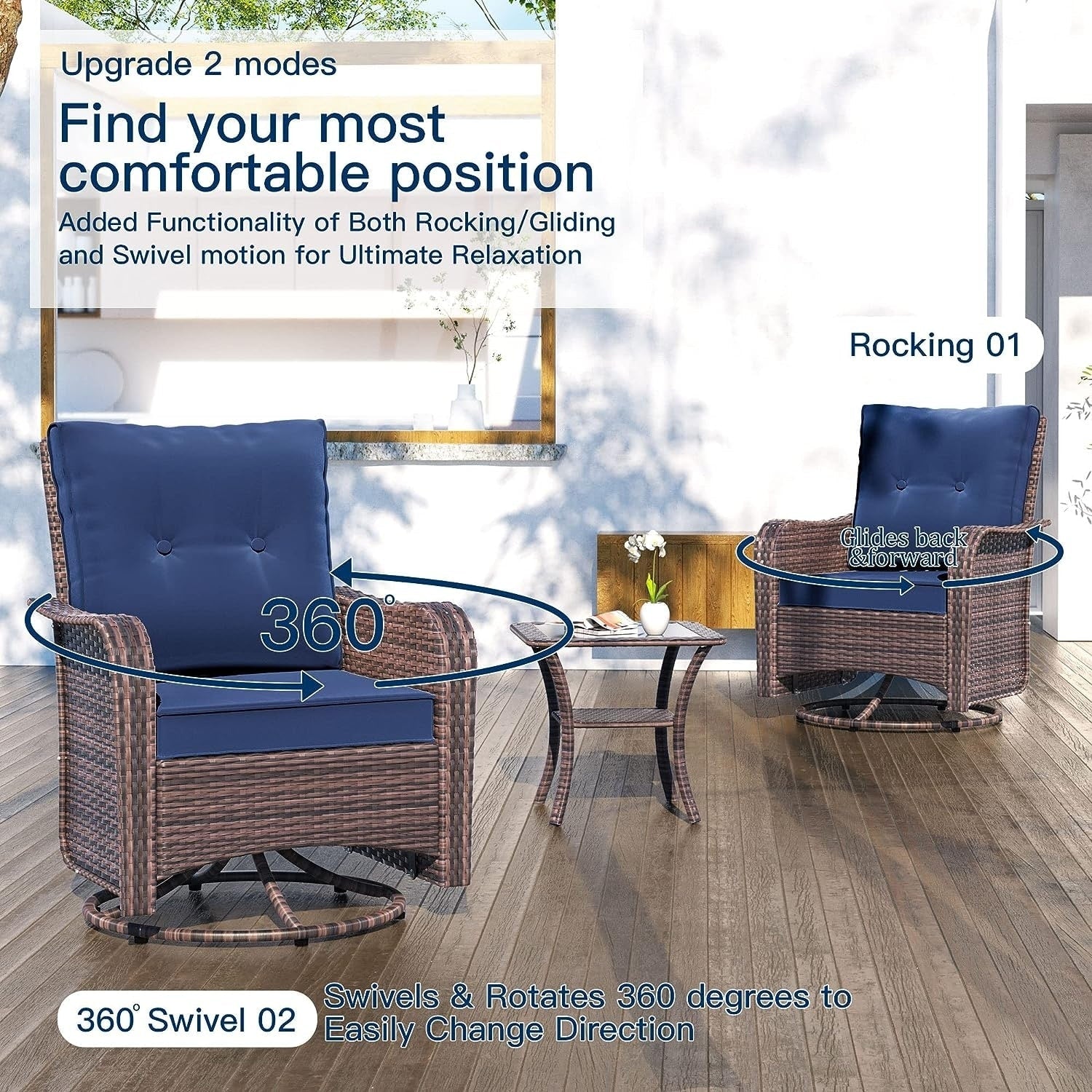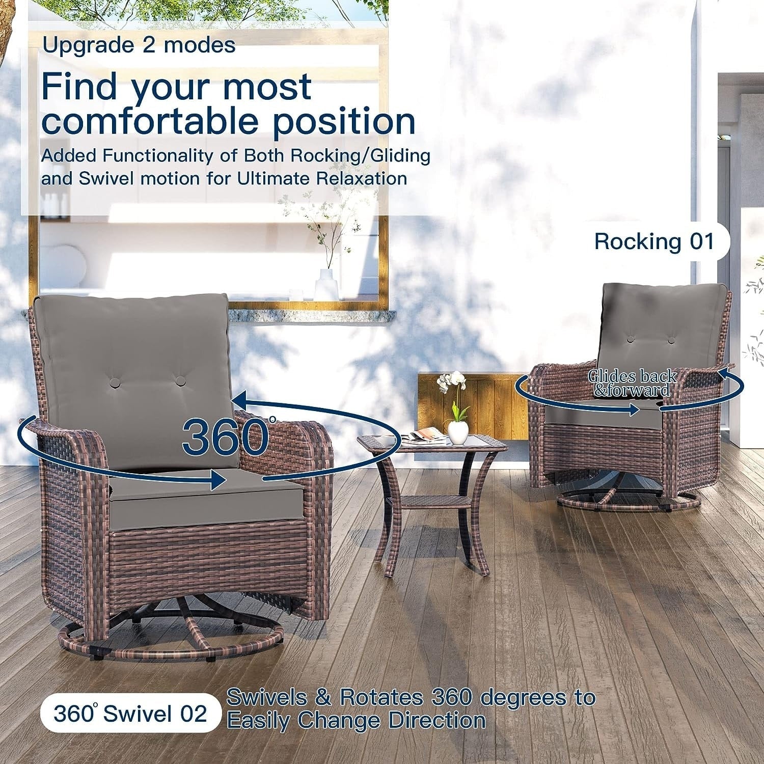 Rilassati e divertiti: aggiungi questo set di 3 sedie da giardino in stile bistrot al tuo portico, giardino o interno. Questa sedia a dondolo girevole offre un'oscillazione avanti e indietro e una rotazione di 360 gradi , per un divertimento e un piacere senza fine!