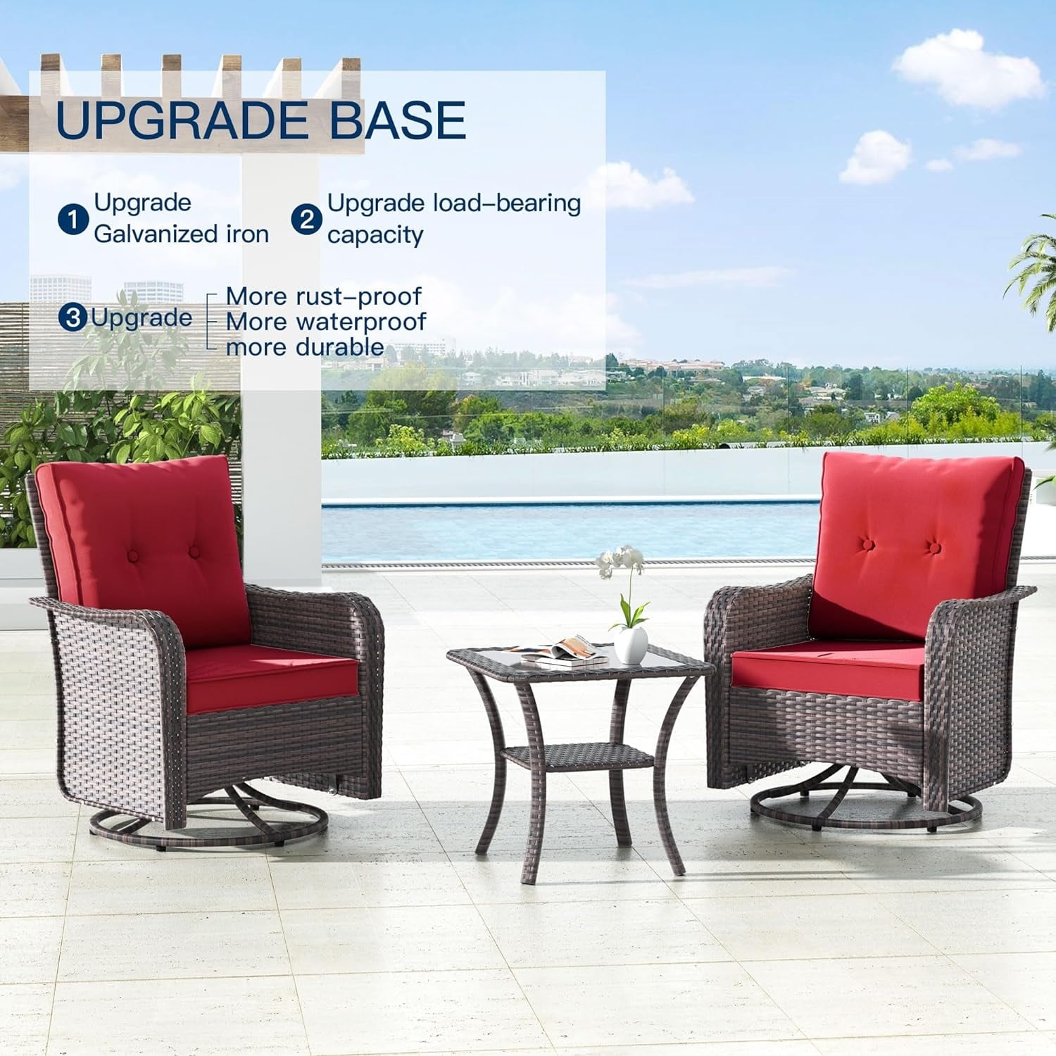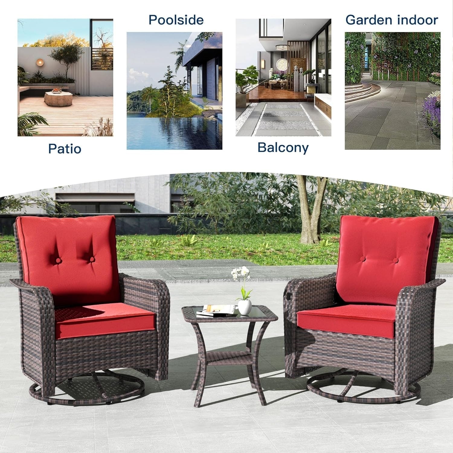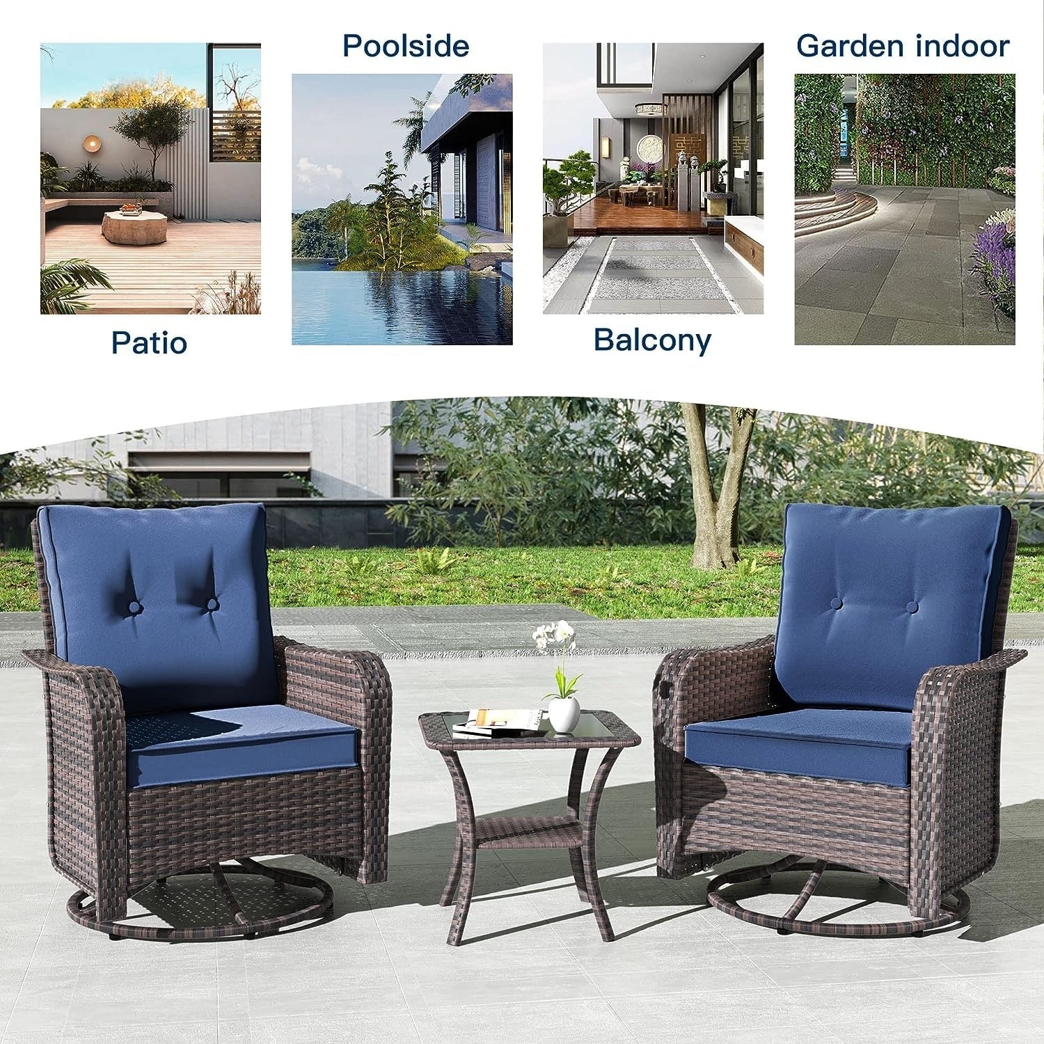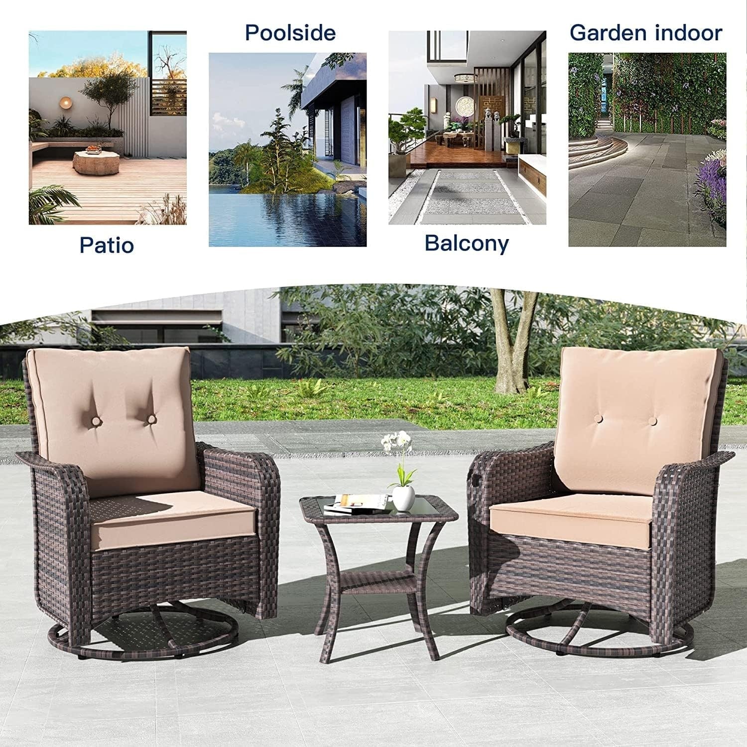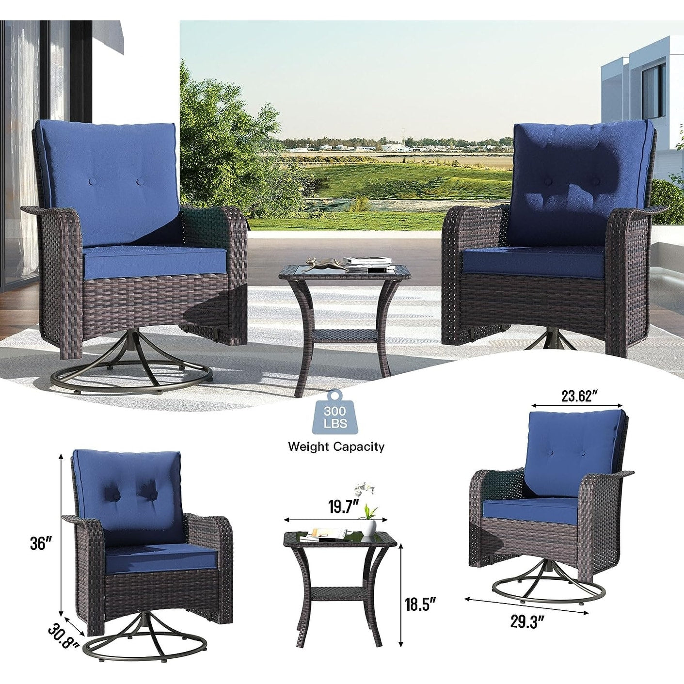 Rilassati e divertiti: aggiungi questo set di 3 sedie da giardino in stile bistrot al tuo portico, giardino o interno. Questa sedia a dondolo girevole offre un'oscillazione avanti e indietro e una rotazione di 360 gradi , per un divertimento e un piacere senza fine!