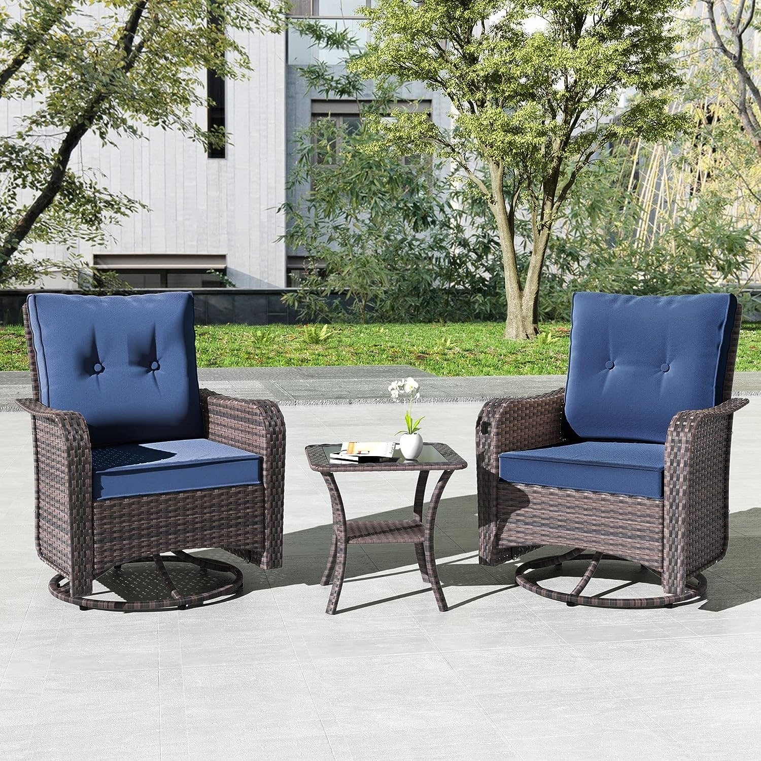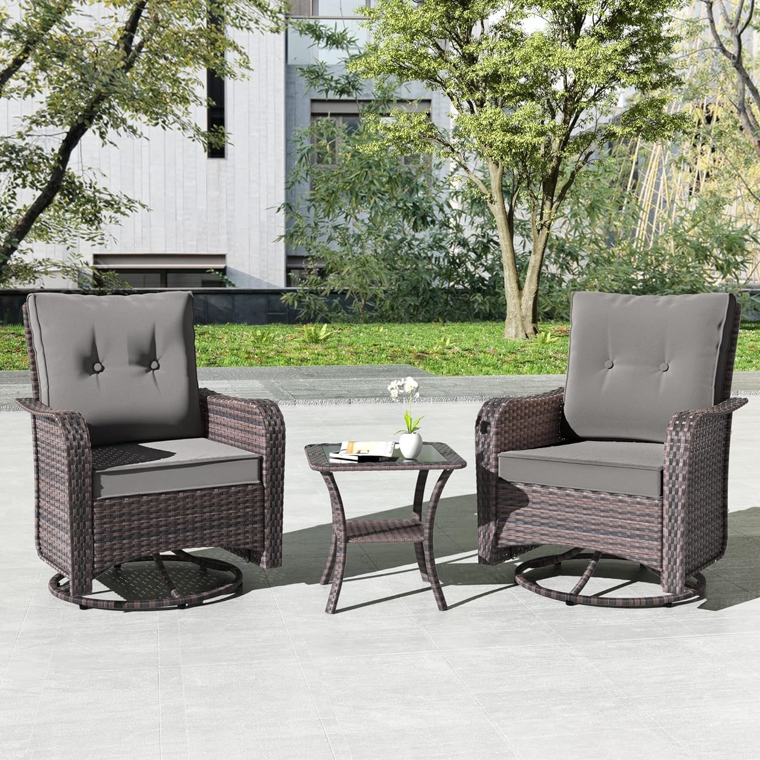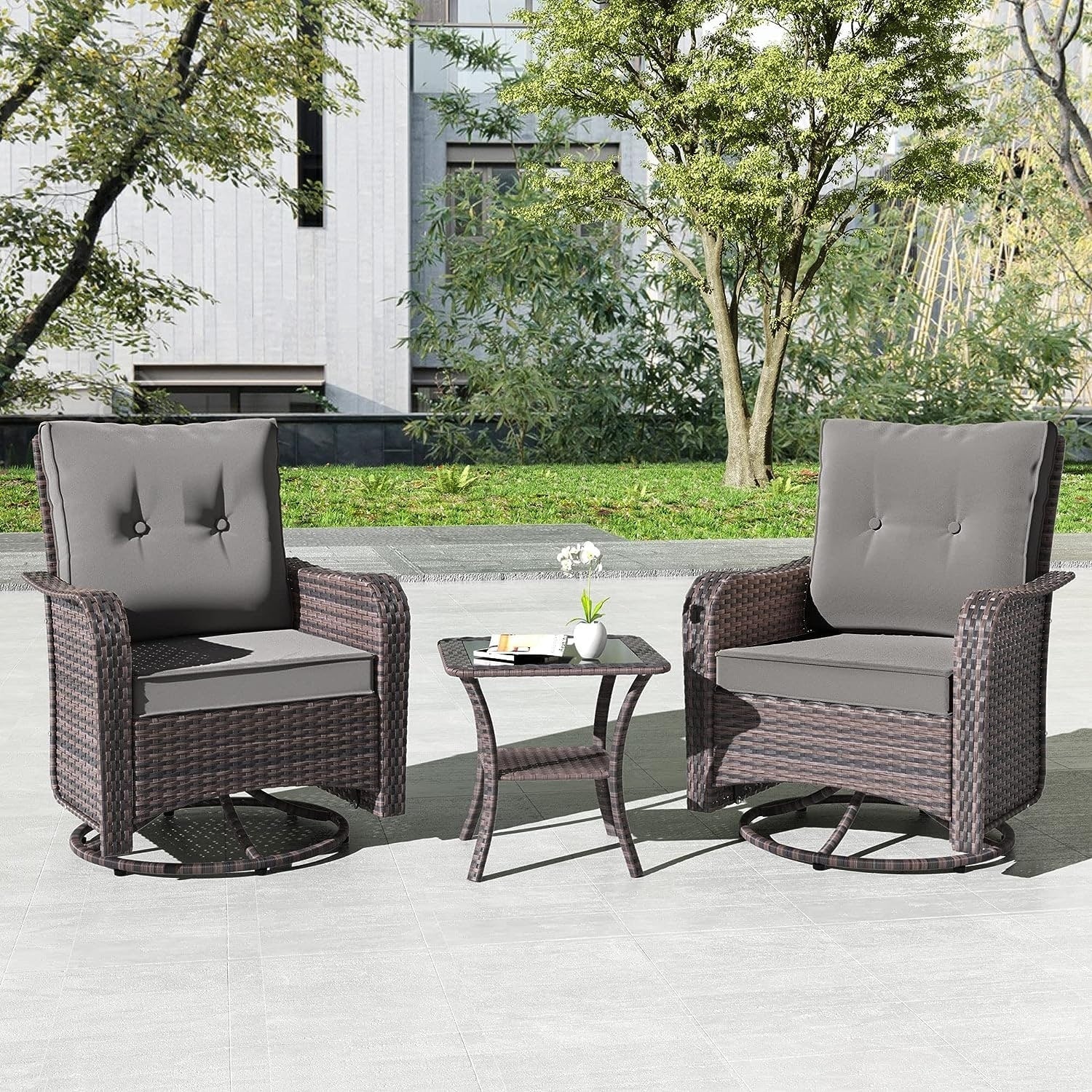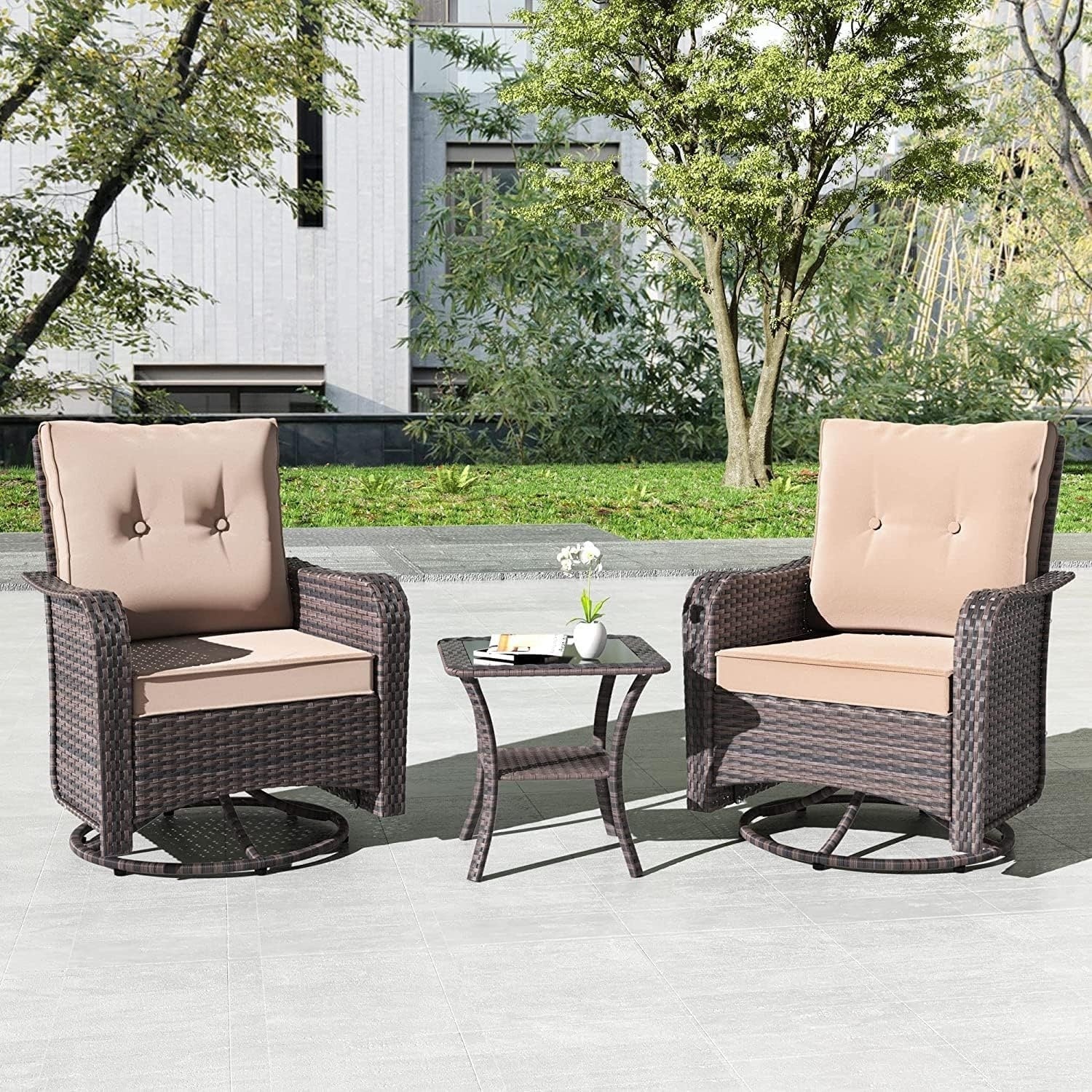 Set di mobili da giardino Kullavik da 3 pezzi, sedie a dondolo girevoli per esterni