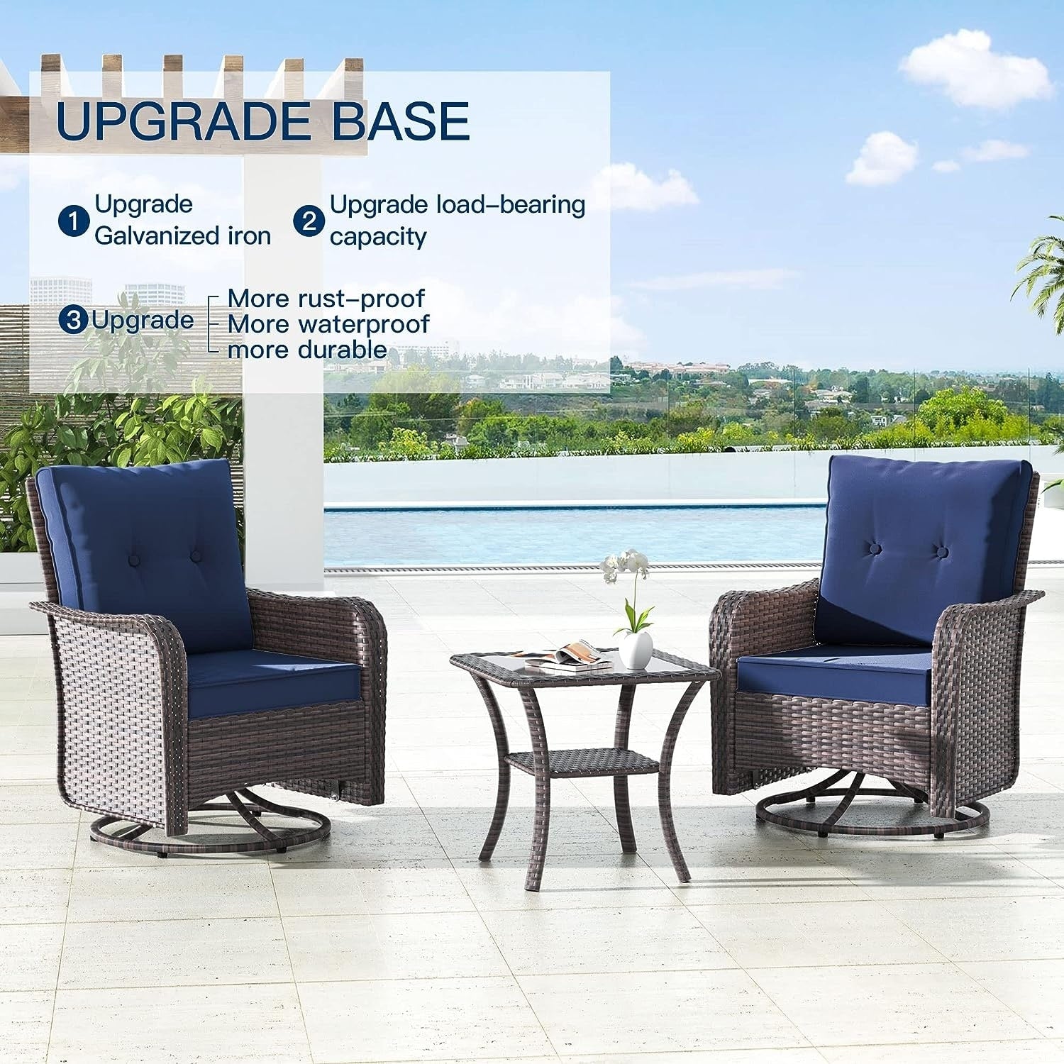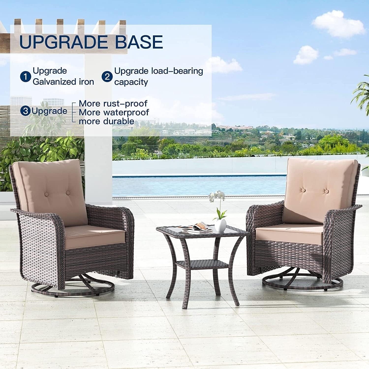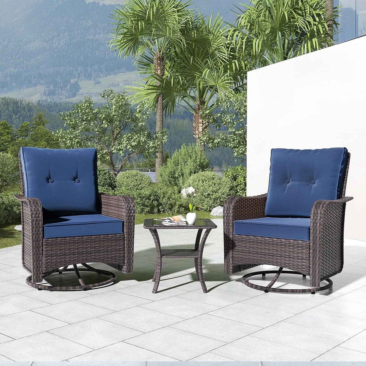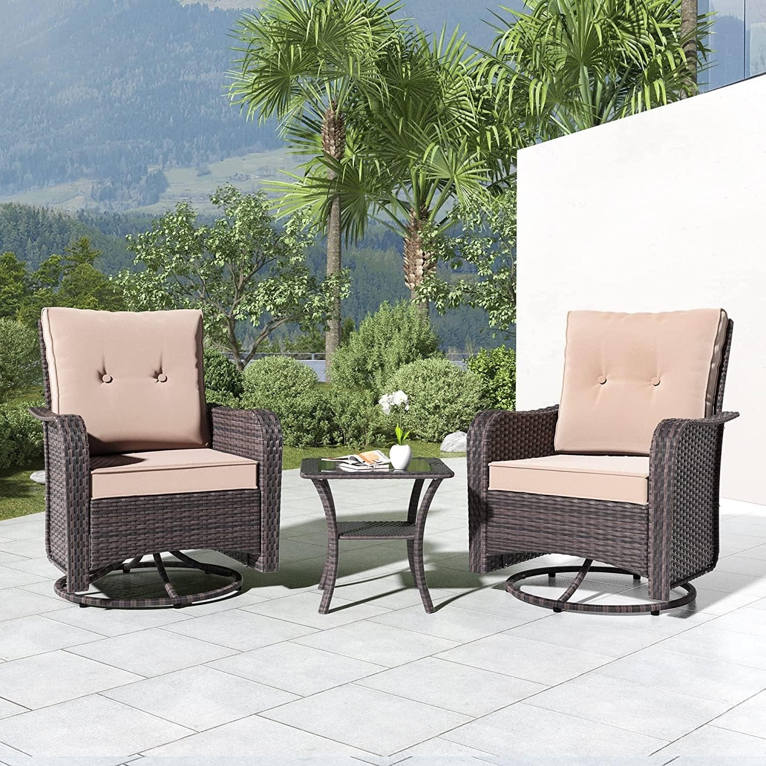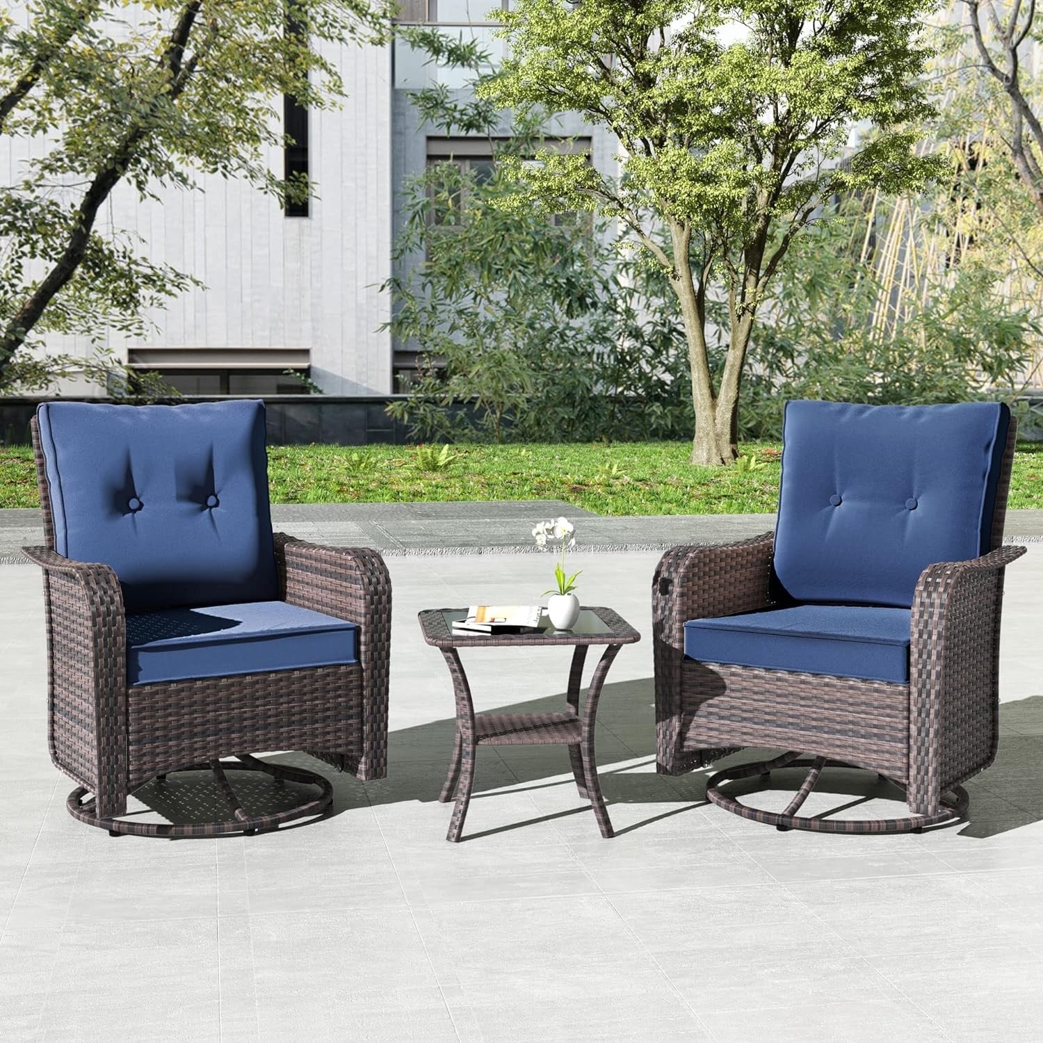 Set di mobili da giardino Kullavik da 3 pezzi, sedie a dondolo girevoli per esterni