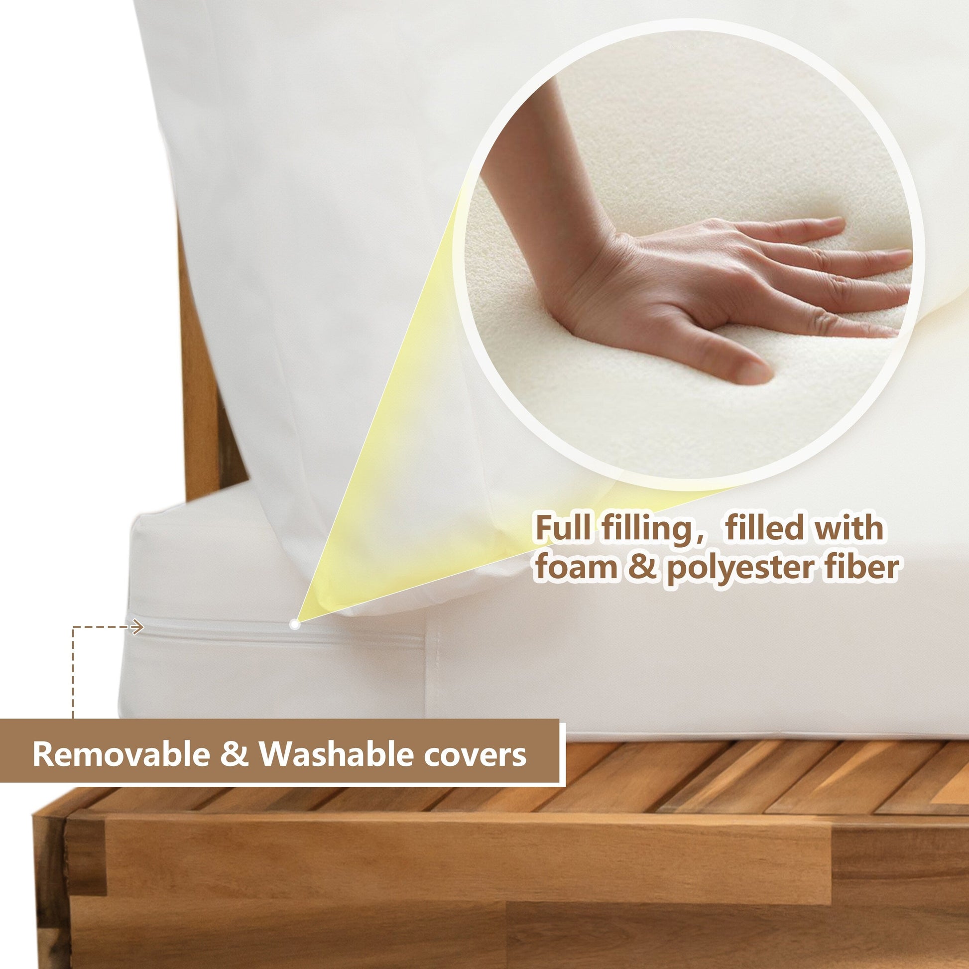 • Realizzato in legno di acacia di alta qualità, il nostro divano componibile in legno massello per esterni presenta una struttura robusta che garantisce durevolezza e longevità in qualsiasi ambiente esterno.