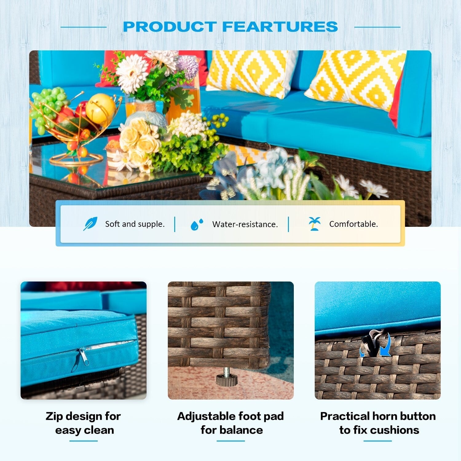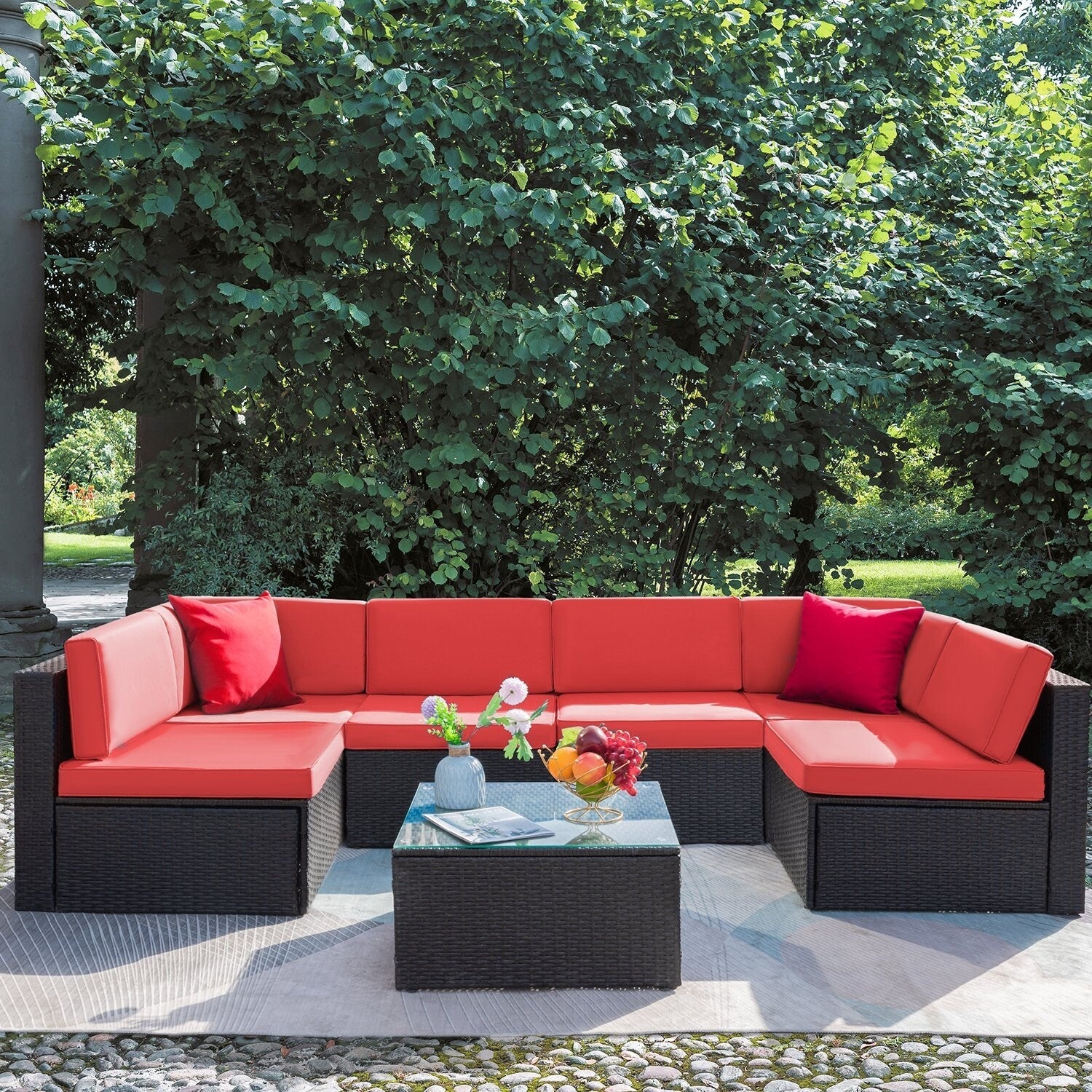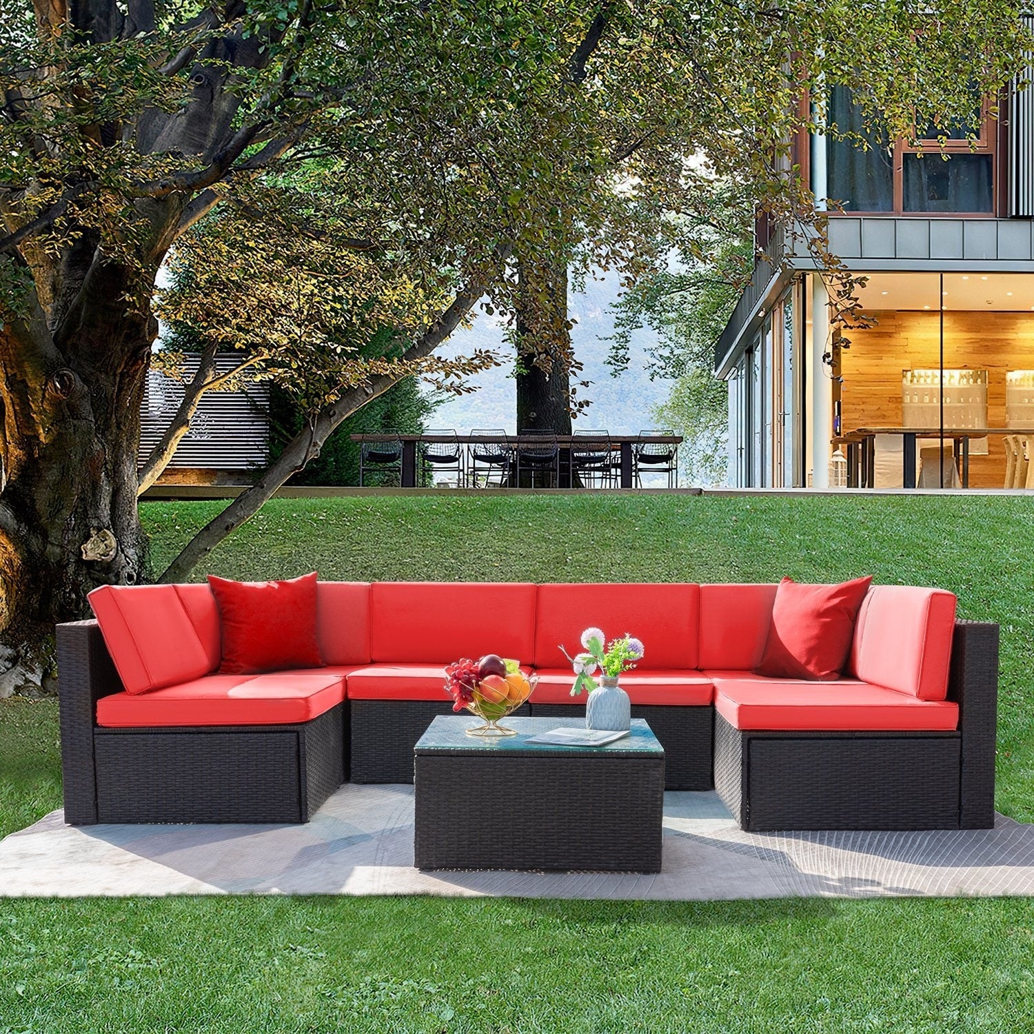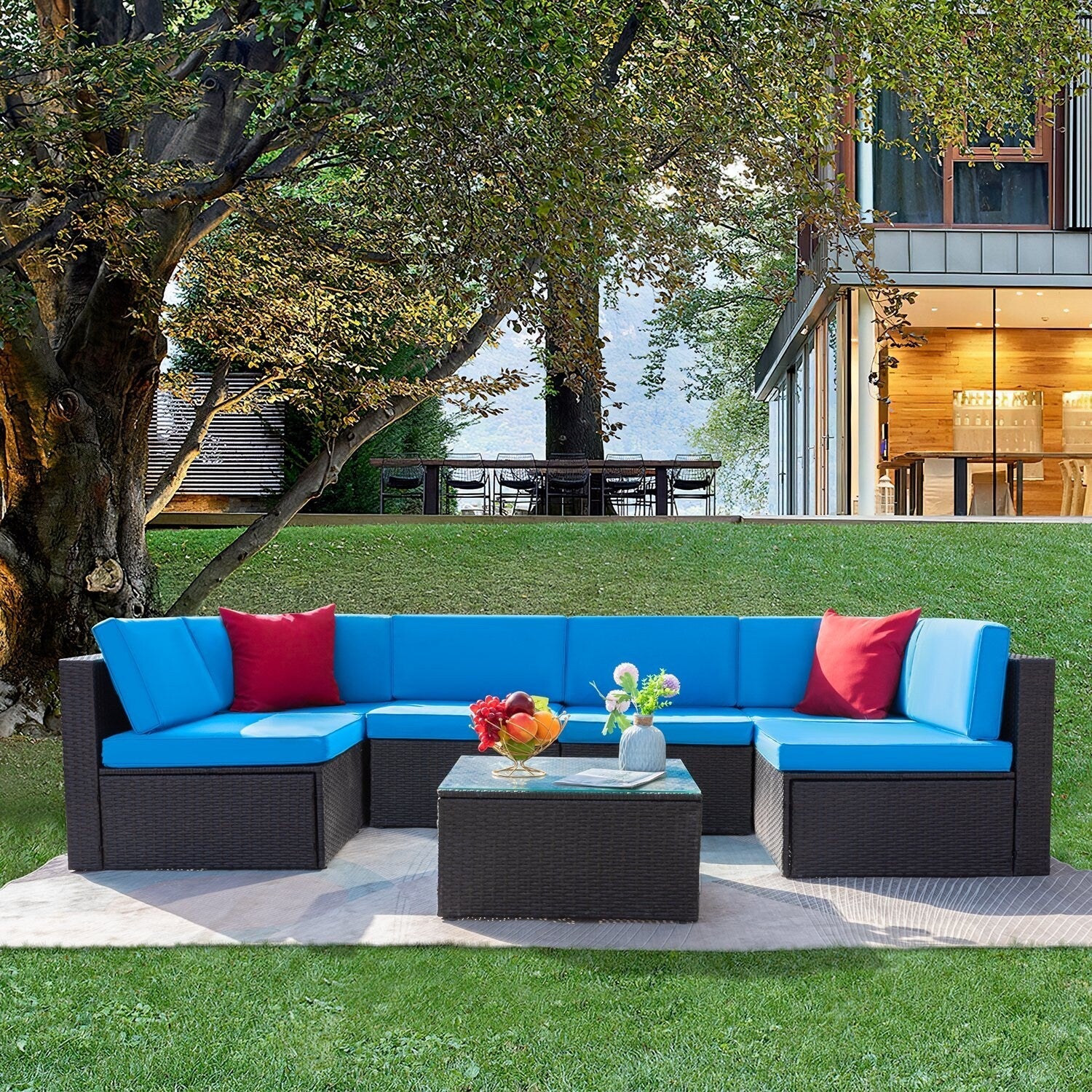 Lacoo 7 pezzi divano componibile da esterno in...