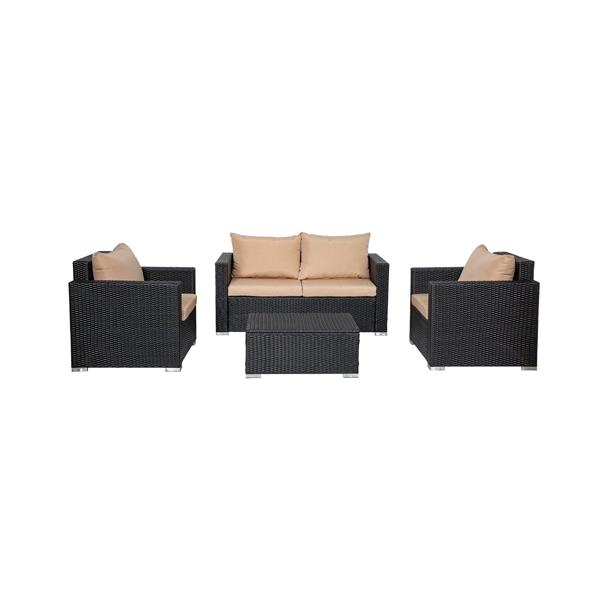 Set di mobili da giardino in vimini Landon da 4 pezzi con cuscini
