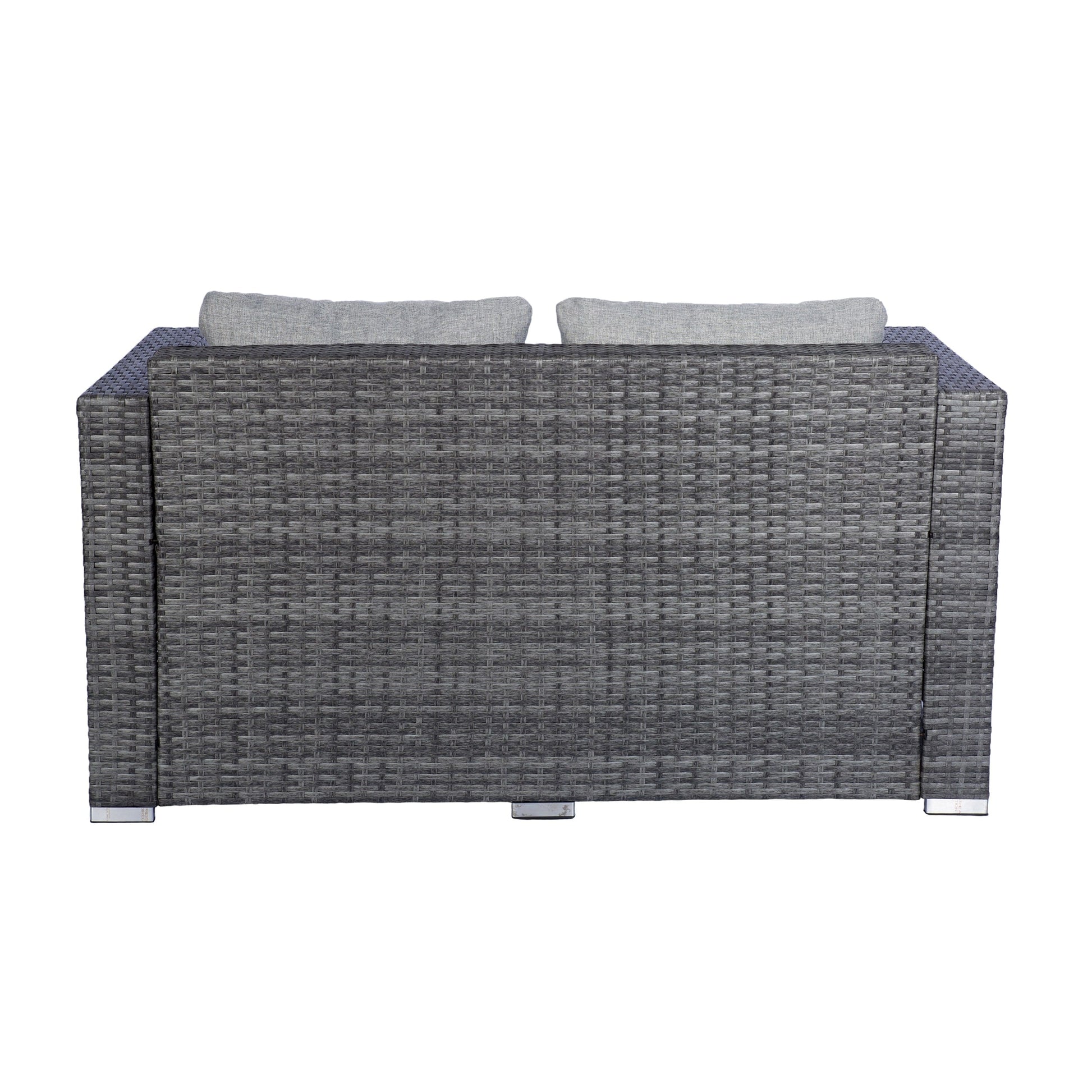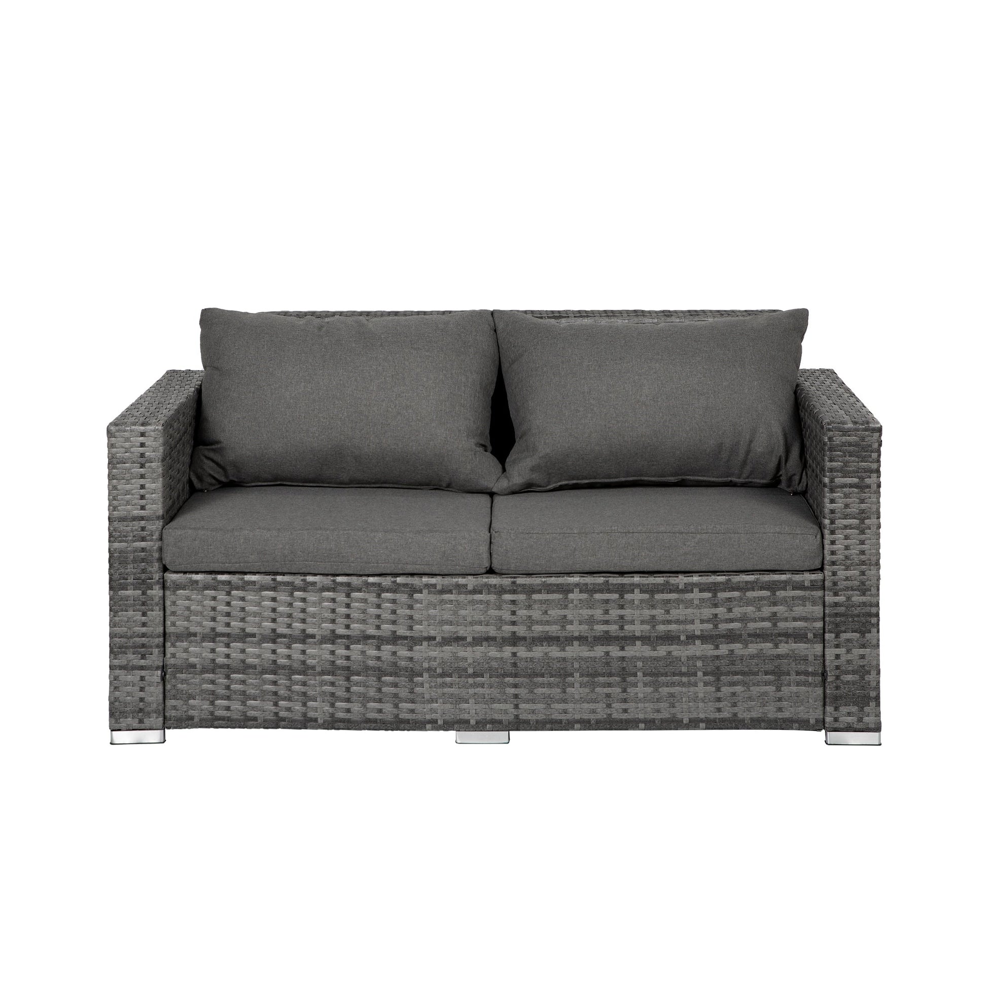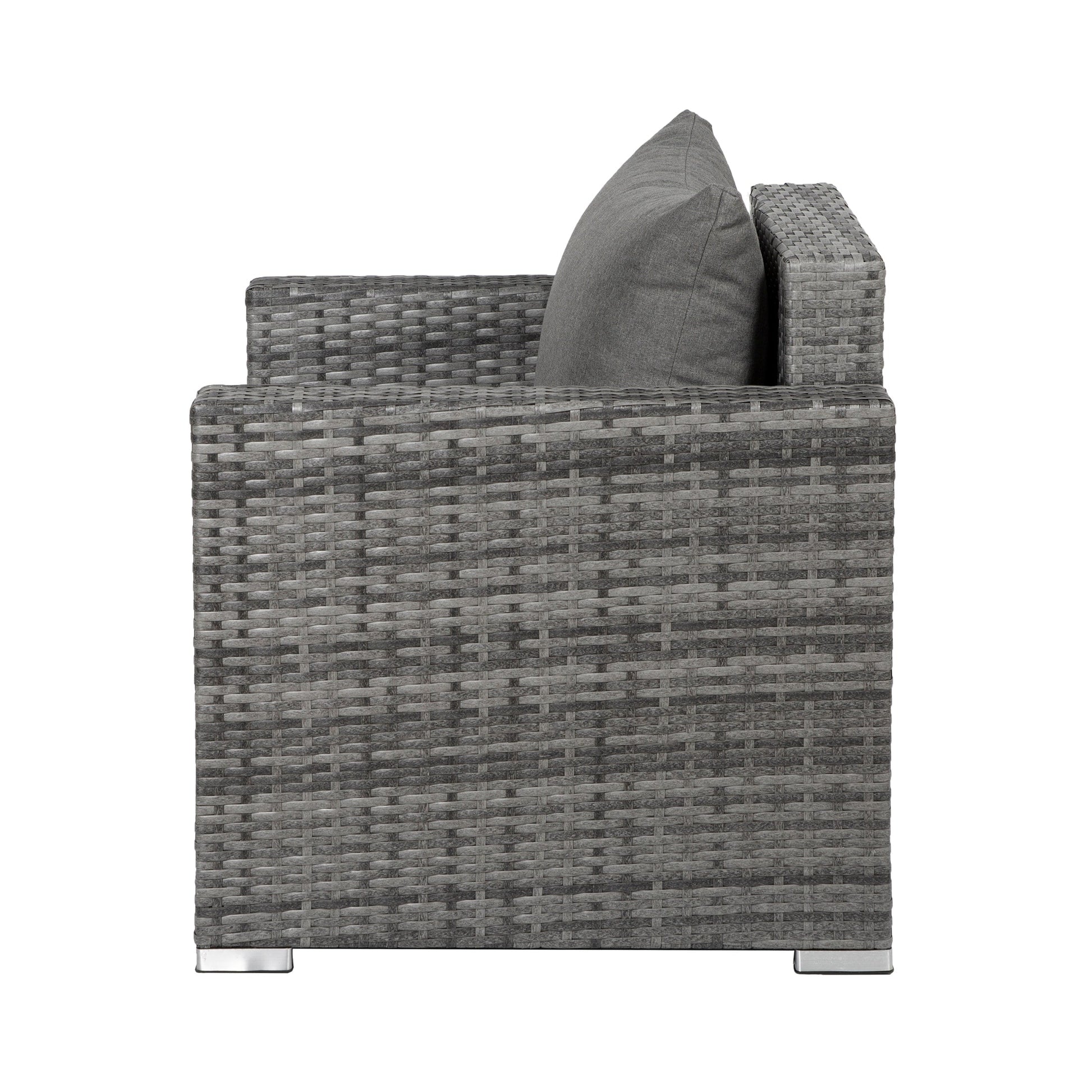 Personalizza la disposizione del tuo set di mobili da esterno per creare uno spazio invitante. Il resistente vimini, strettamente avvolto, è racchiuso in un robusto telaio in acciaio verniciato a polvere per garantire stabilità. Gli spessi cuscini imbottiti e rimovibili sono resistenti all'acqua e ai raggi UV per un uso duraturo. Fai tuo questo set di mobili e assicurati di condividere i momenti migliori con amici e familiari. Design moderno e contemporaneo.