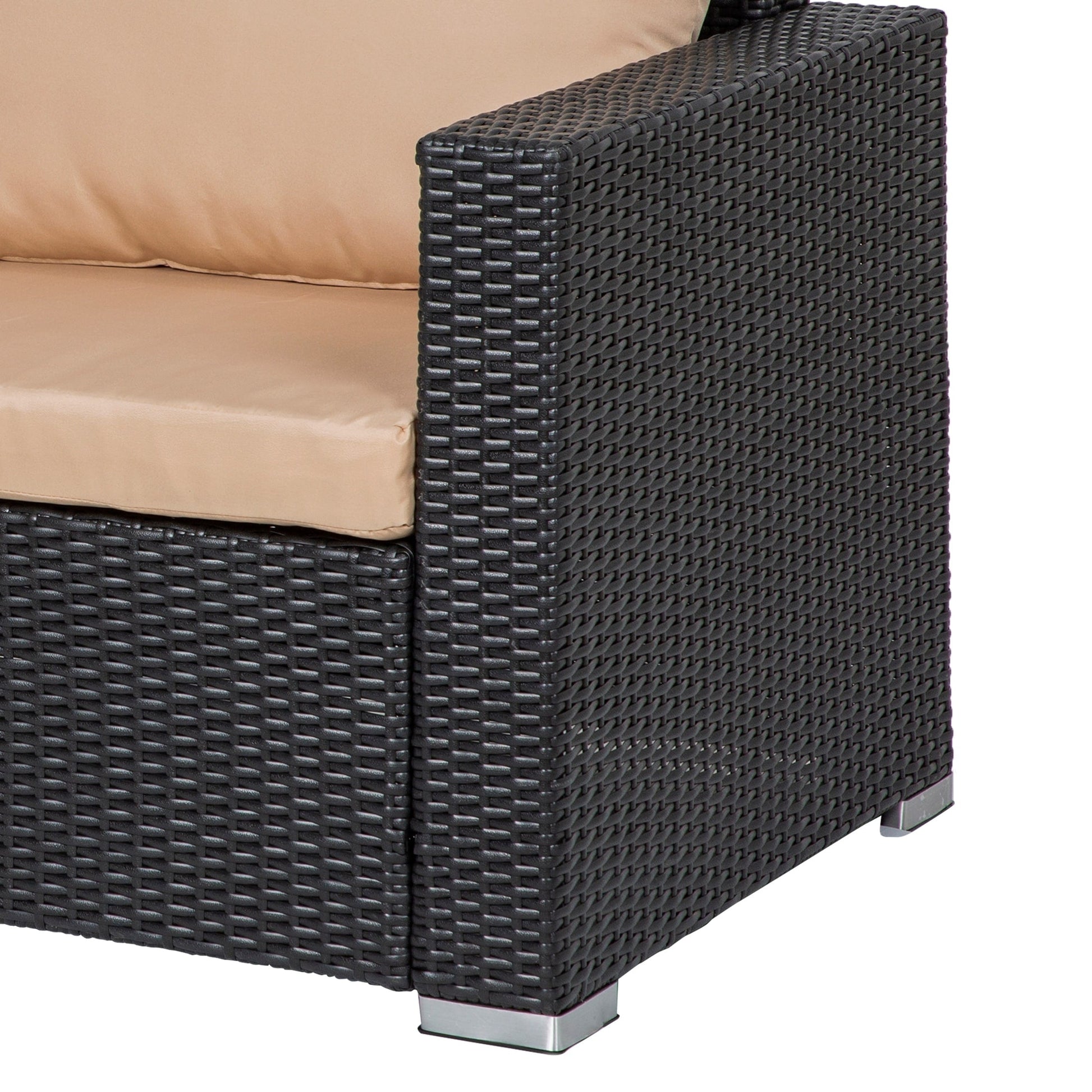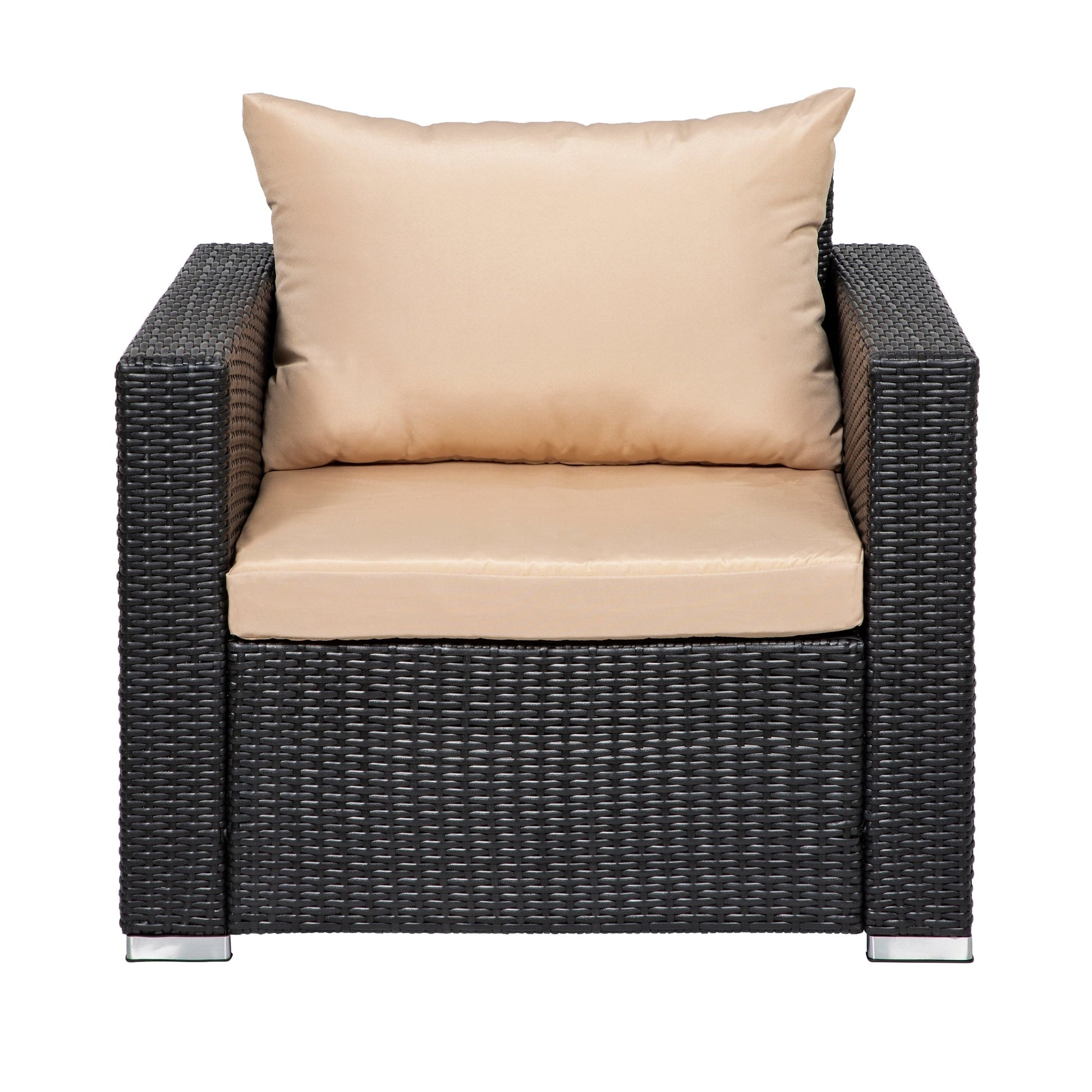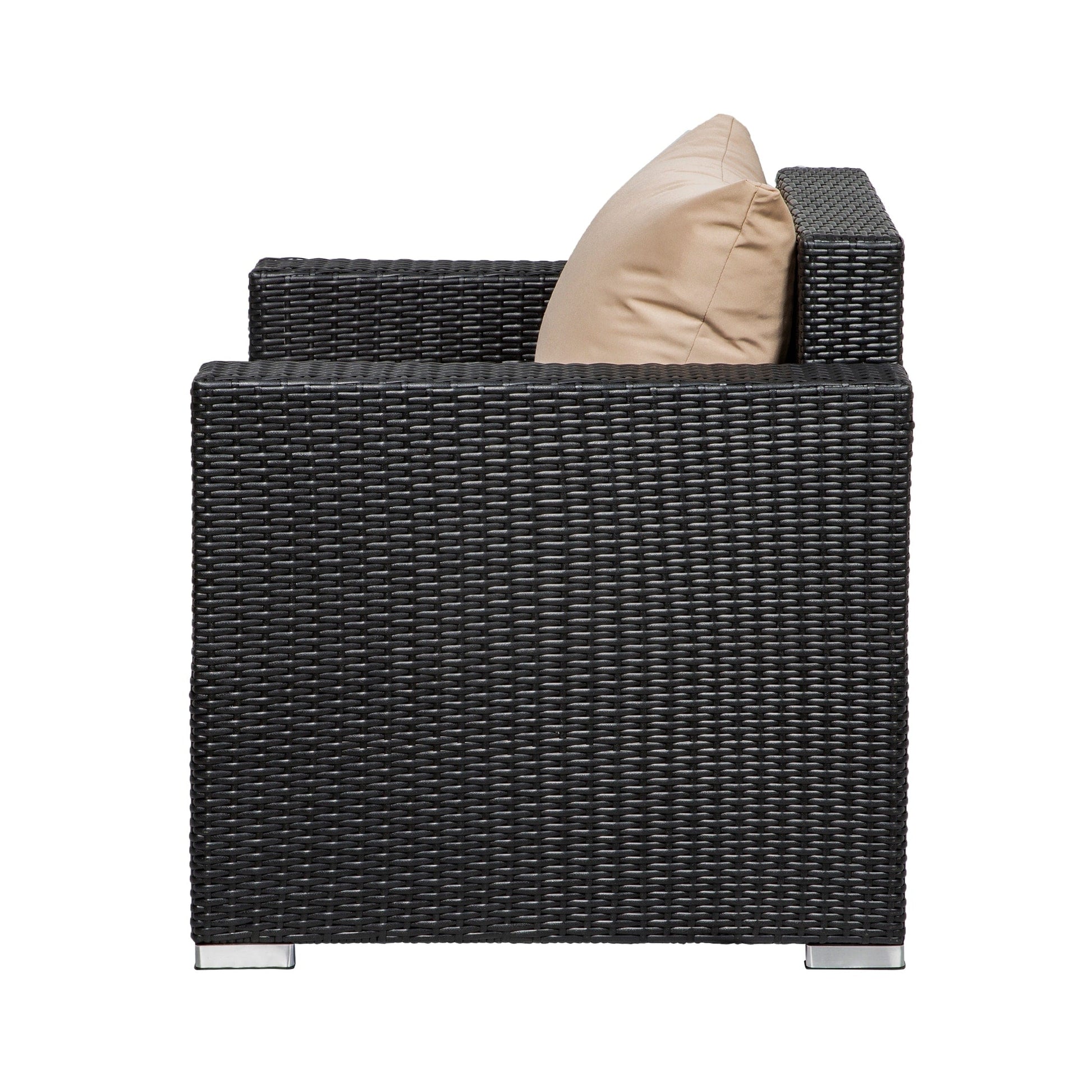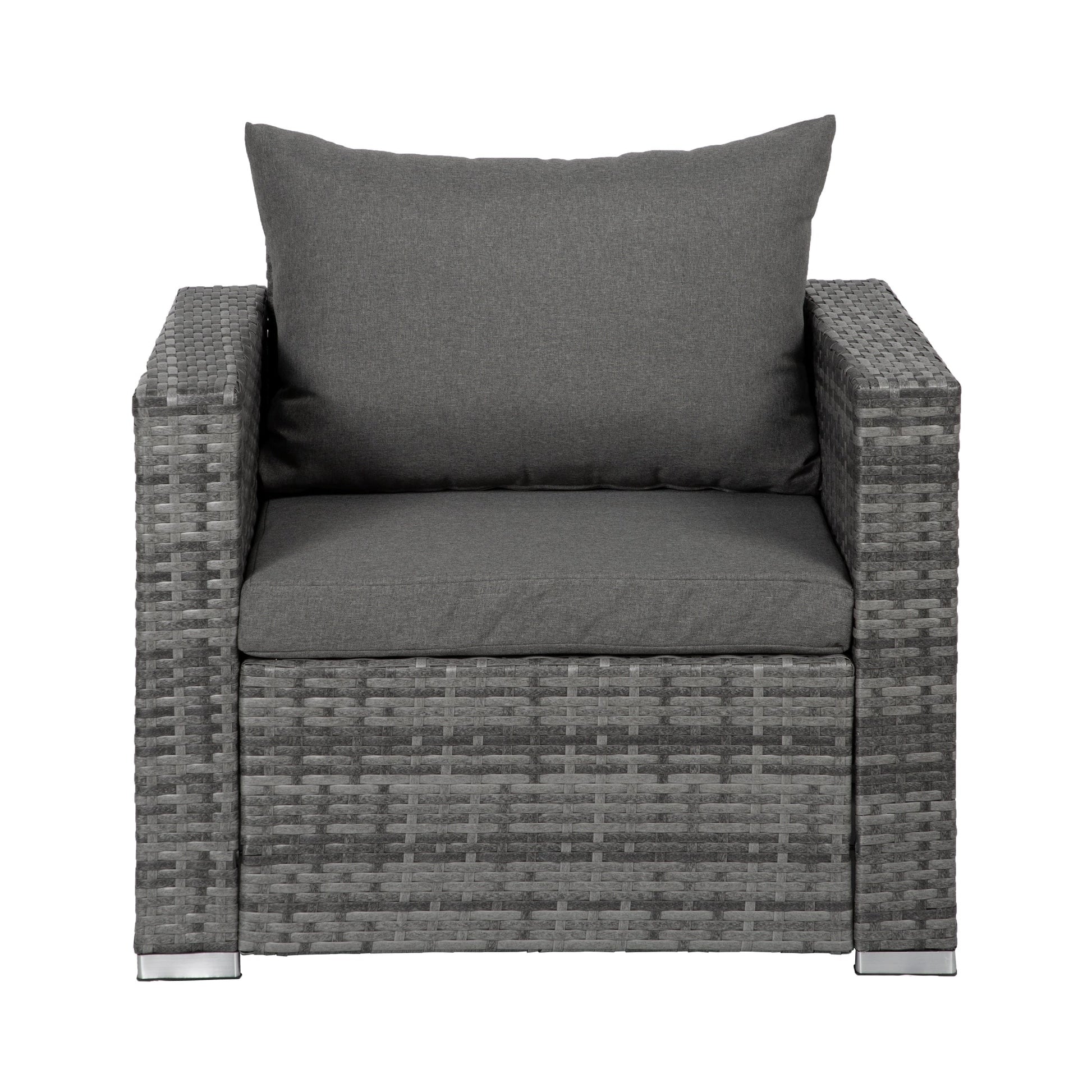 Personalizza la disposizione del tuo set di mobili da esterno per creare uno spazio invitante. Il resistente vimini, strettamente avvolto, è racchiuso in un robusto telaio in acciaio verniciato a polvere per garantire stabilità. Gli spessi cuscini imbottiti e rimovibili sono resistenti all'acqua e ai raggi UV per un uso duraturo. Fai tuo questo set di mobili e assicurati di condividere i momenti migliori con amici e familiari. Design moderno e contemporaneo.