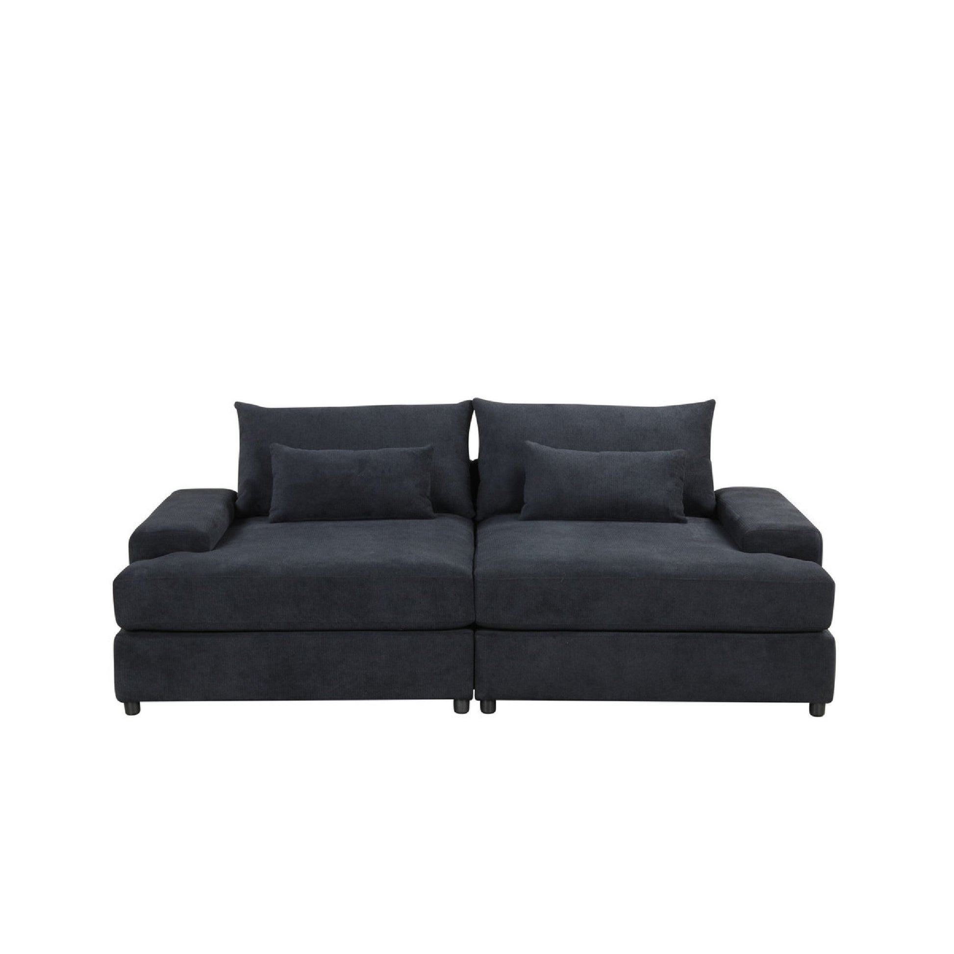 Divano letto oversize Leena con 2 cuscini decorativi, tessuto nero, 88 pollici