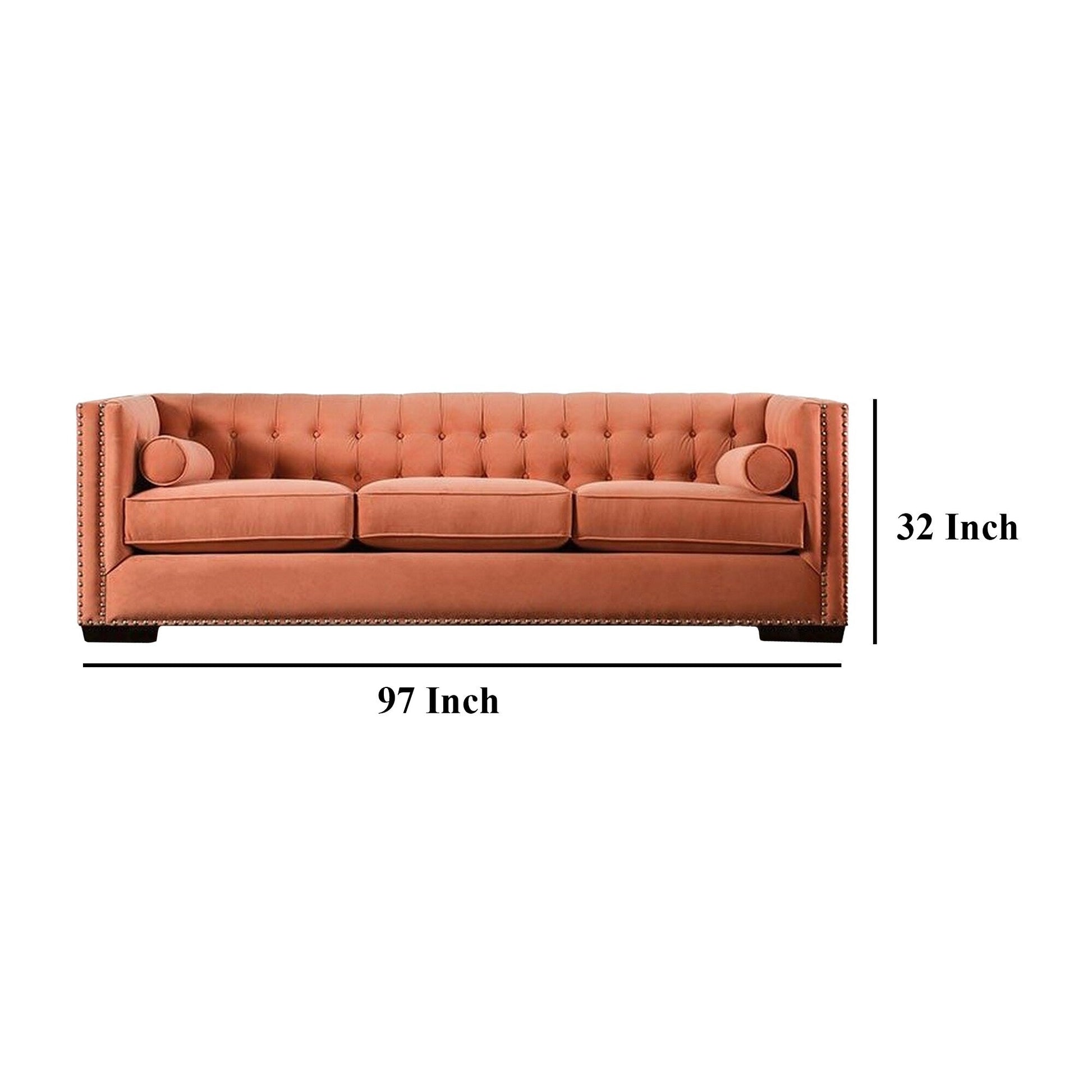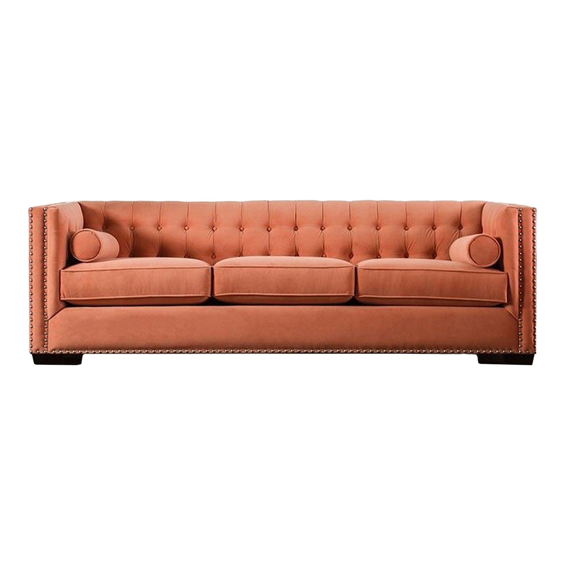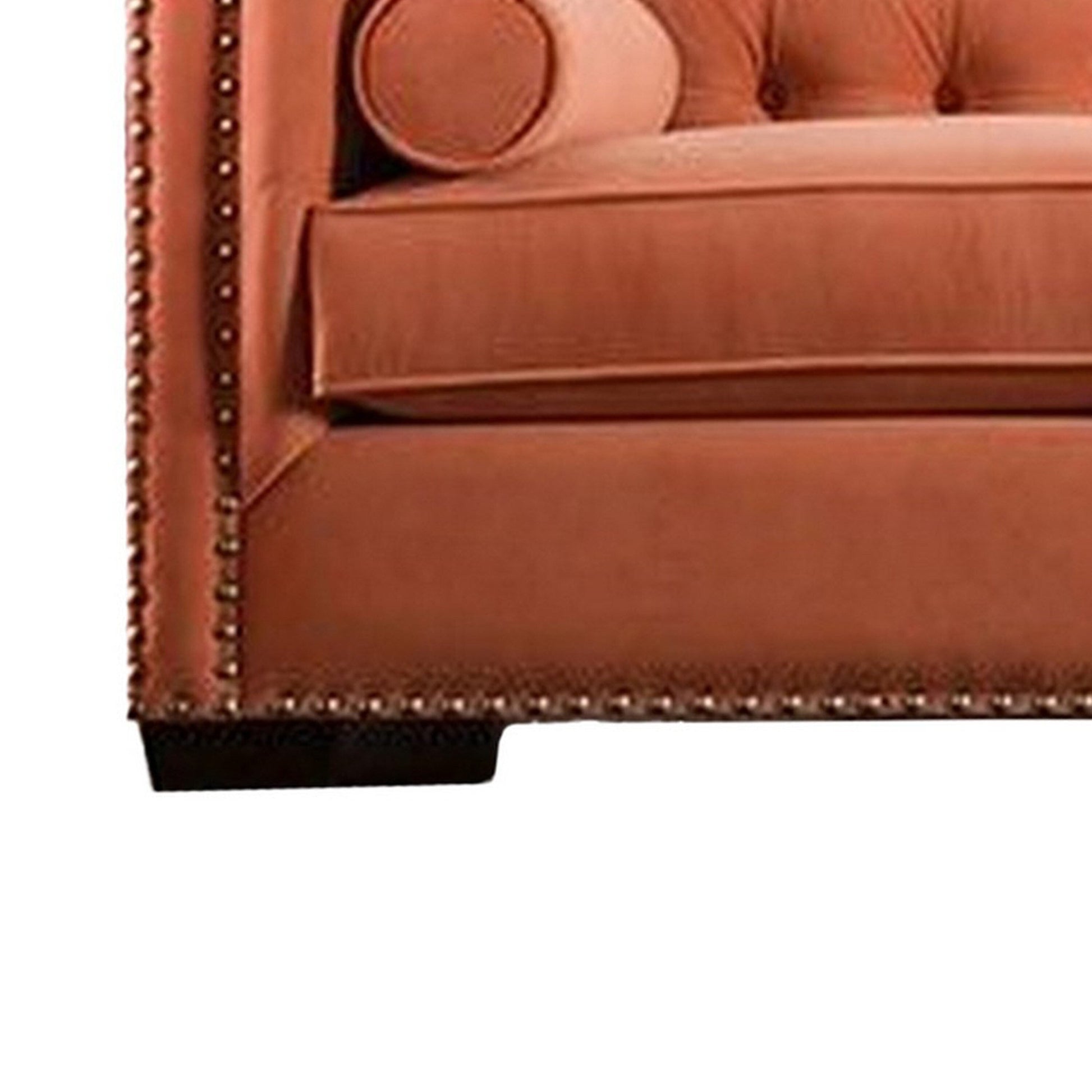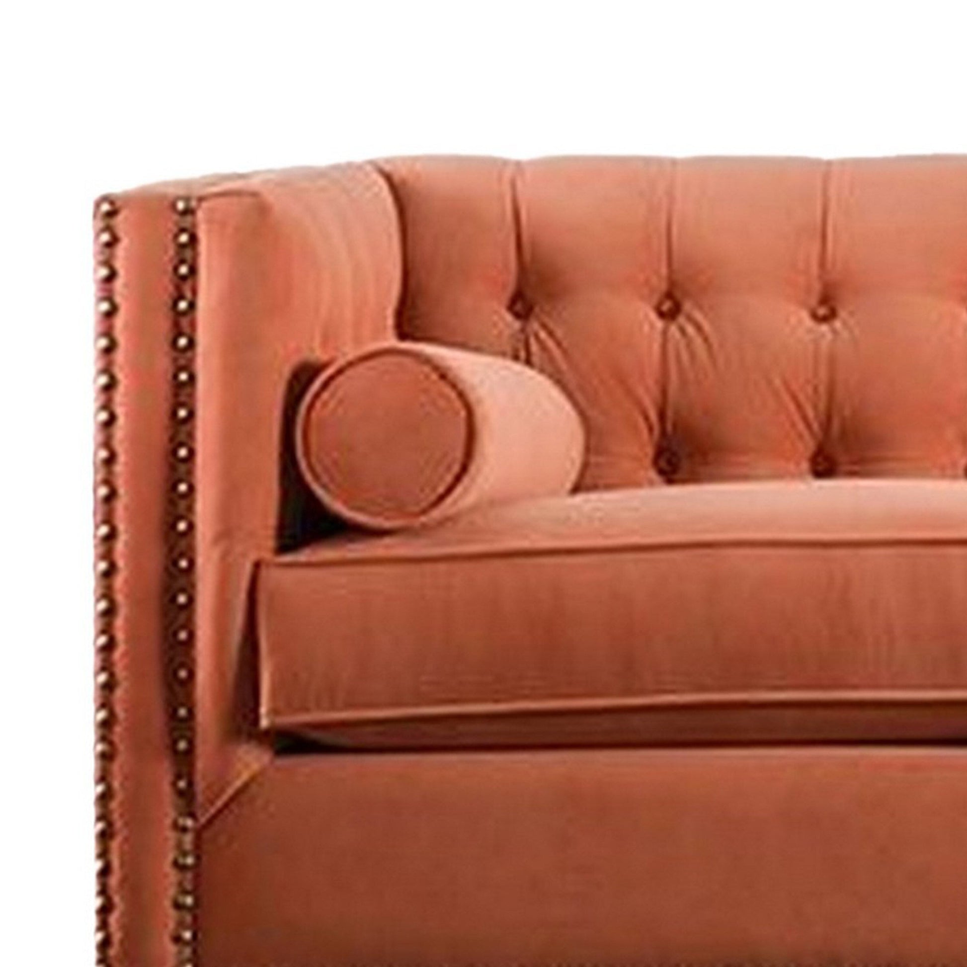 Divano Leone, trapuntato arancione, 2 cuscini a rullo, finiture con borchie, 93 pollici