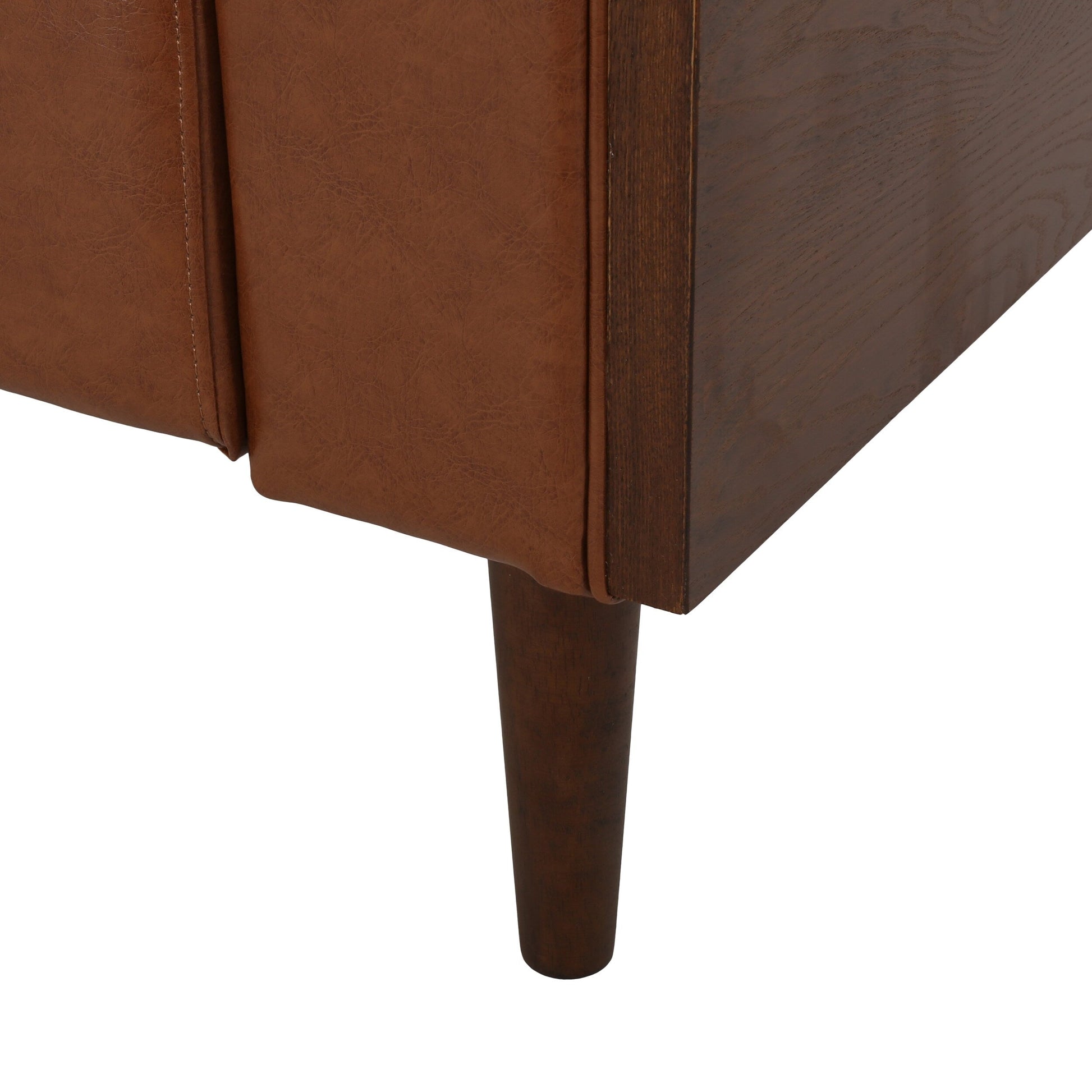 Divano a 3 posti in similpelle marrone chiaro 90 con bottoni e gambe in legno di betulla per soggiorno