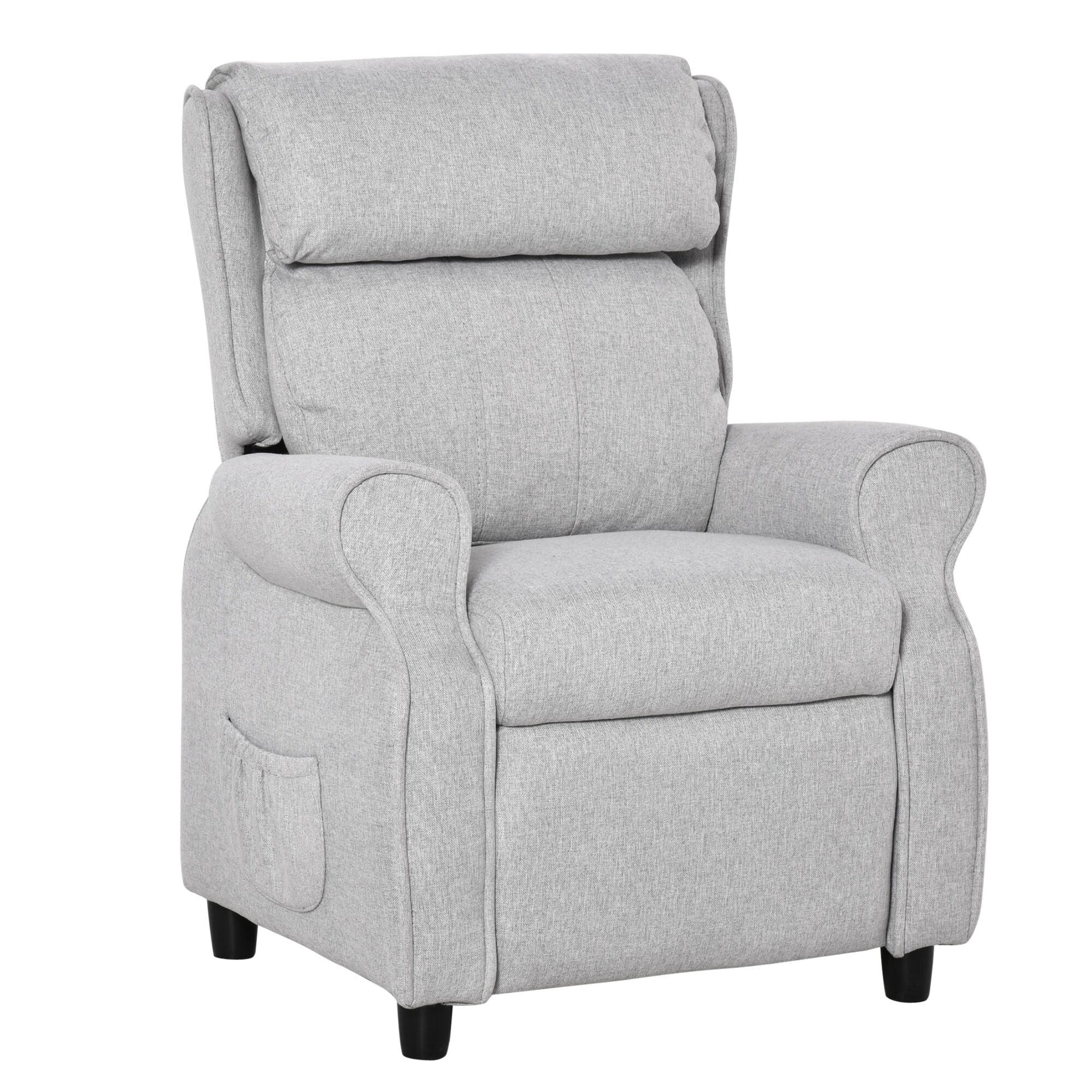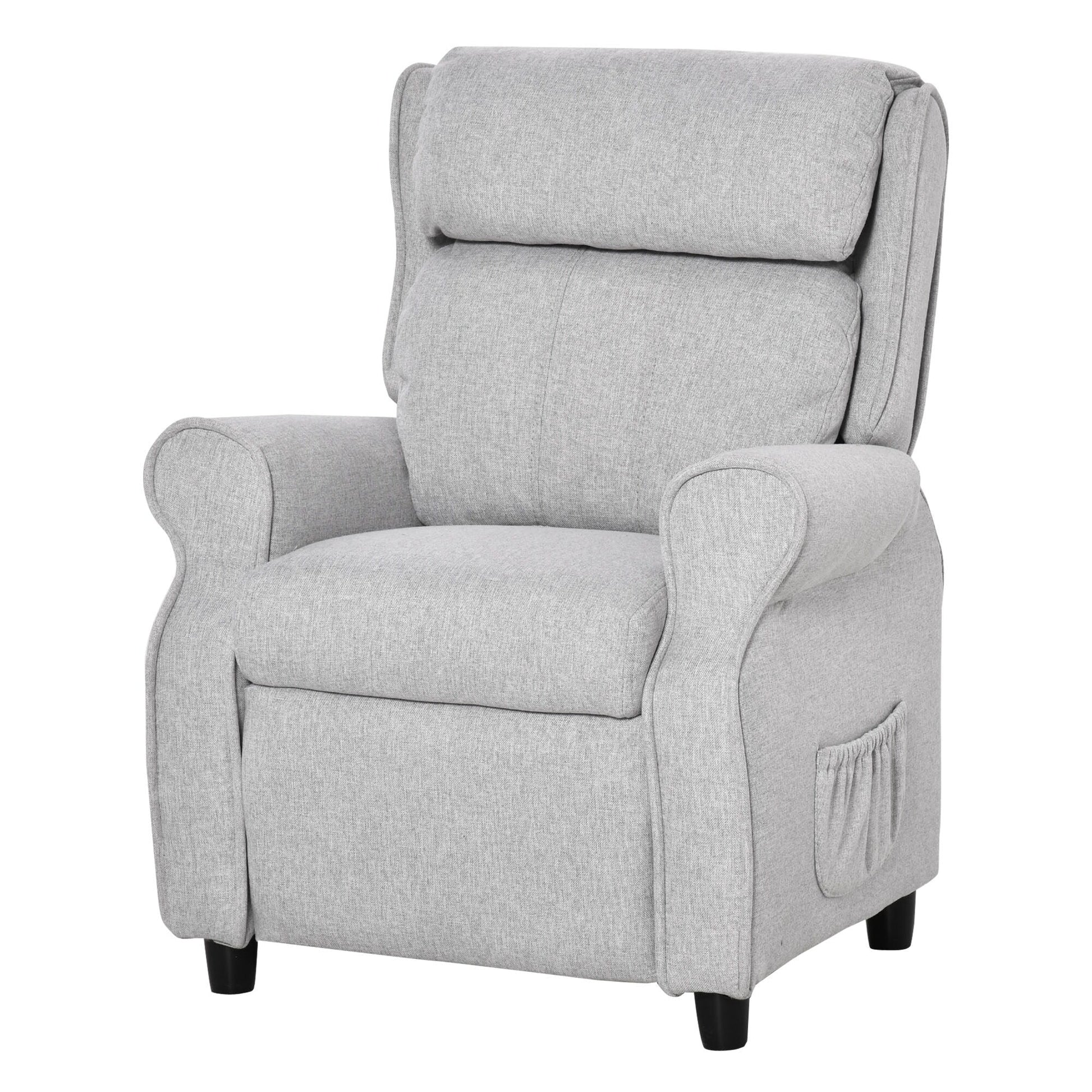 Poltrona reclinabile manuale imbottita per bambini grigio chiaro da 3 a 5 anni con poggiapiedi e 2 tasche laterali