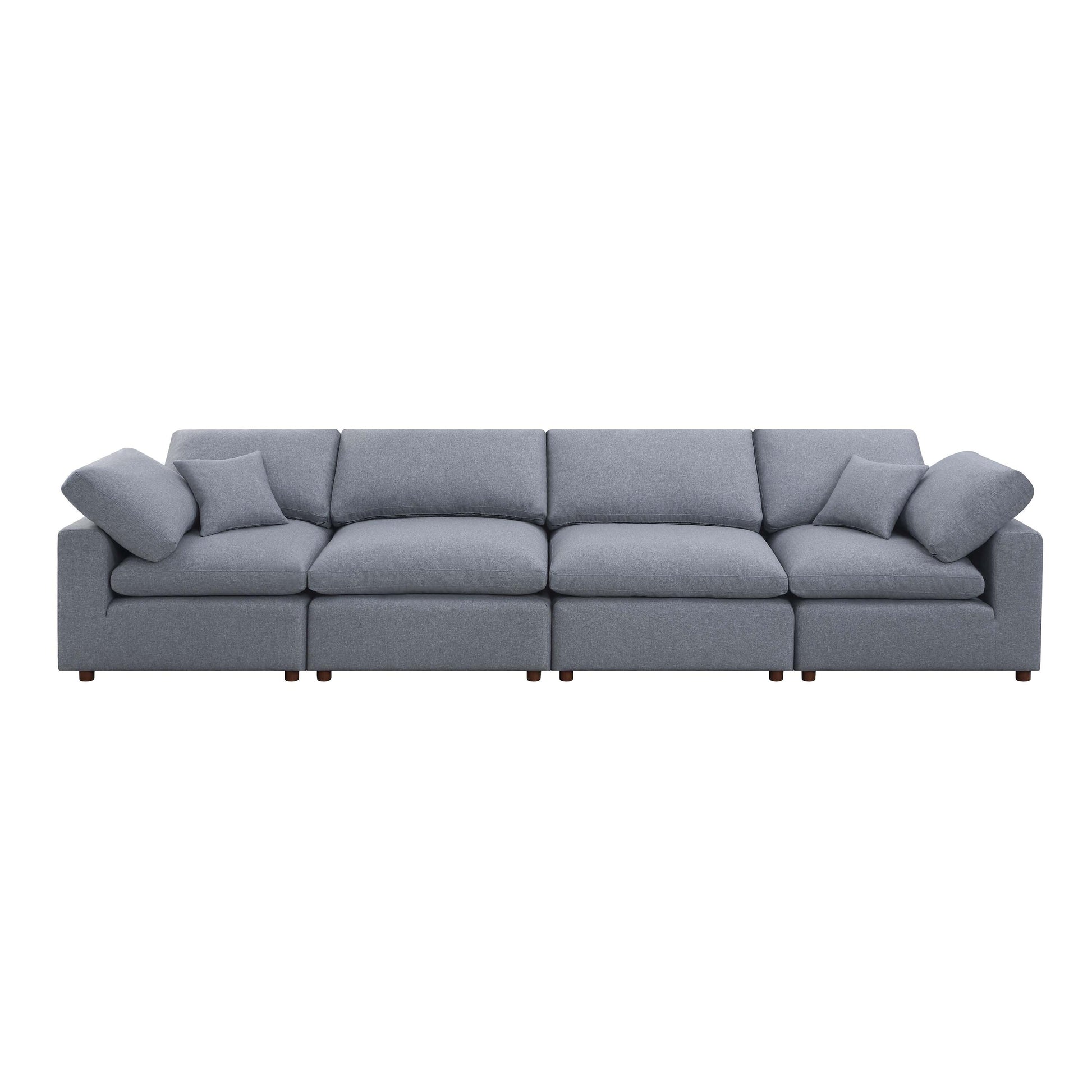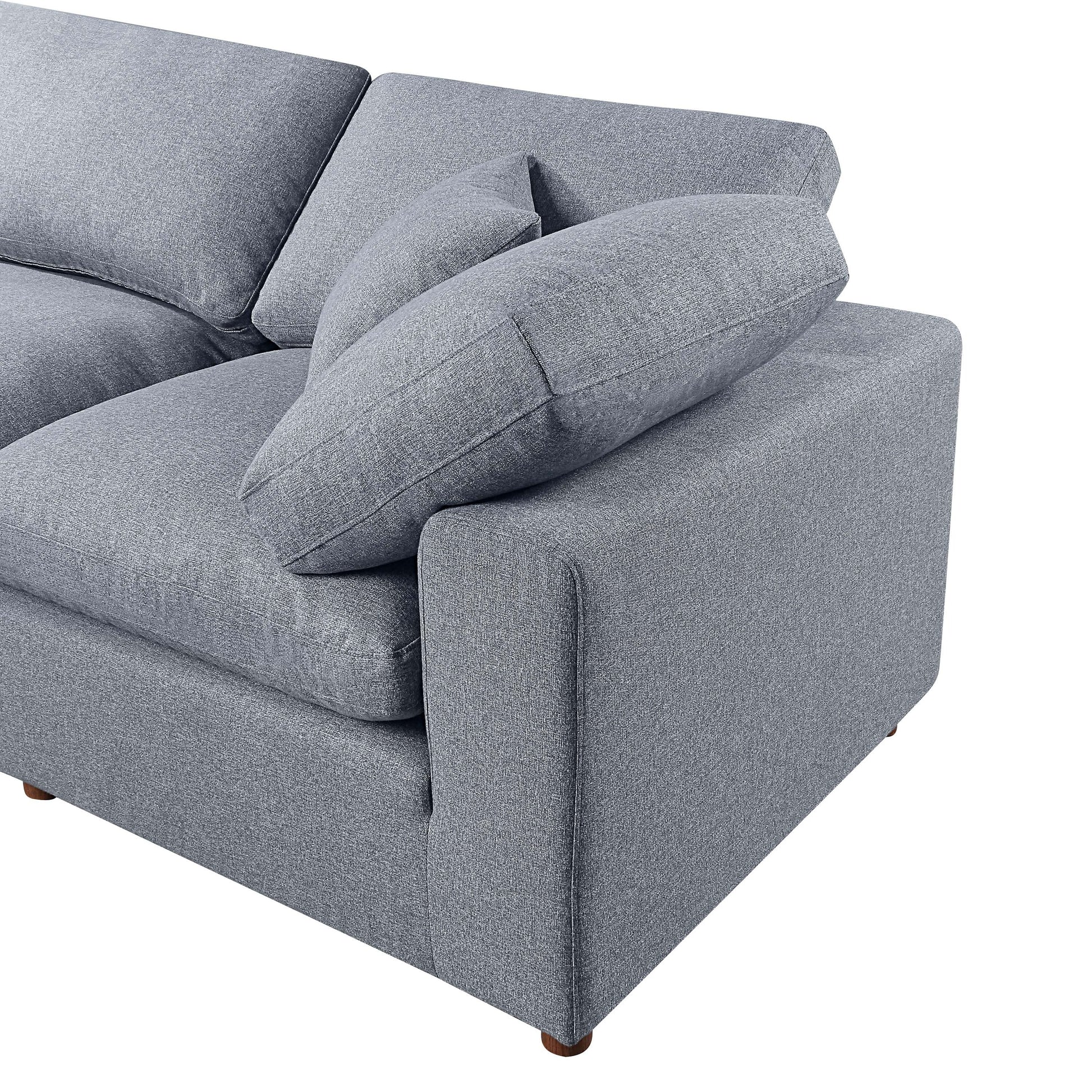 • Comfort e sostegno: il tessuto in lino blu (5% lino, 40% viscosa, 55% poliestere) imbottito in piuma d'oca offre un comfort perfetto e un sostegno eccellente per il corpo. Il divano mantiene la sua forma anche dopo un uso prolungato, garantendoti di rilassarti e goderti il ​​tempo libero dopo una dura giornata di lavoro.