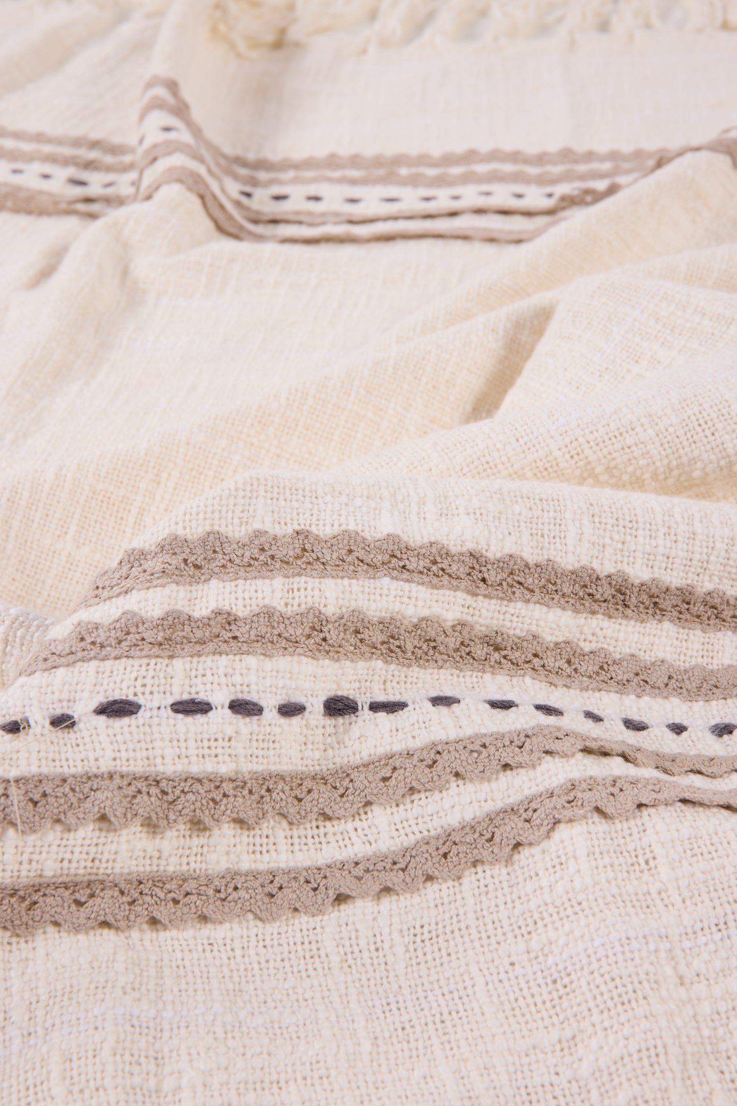Lissewege - Tovaglia 140X240 Bianca Cotone Con Righe E Frange