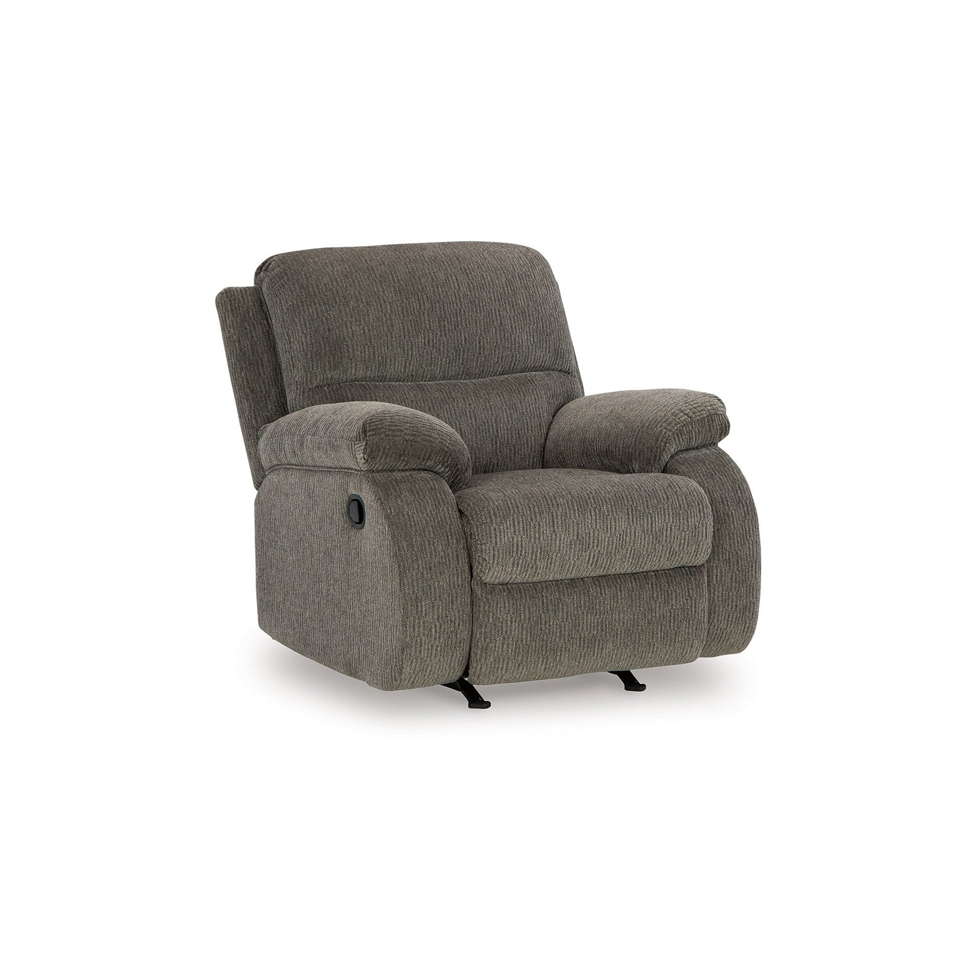Rilassatevi nel comfort più accogliente con questa poltrona reclinabile a dondolo manuale. Progettata per il massimo relax, presenta uno schienale moderno con motivo a onde e un morbido rivestimento in poliestere in una versatile tonalità grigio tigrato. Il movimento di reclinazione fluido con linguetta e la delicata funzione di dondolo la rendono l'aggiunta perfetta a qualsiasi spazio abitativo, offrendo stile e praticità quotidiana. Scoprite la nostra collezione Lyla per ulteriori opzioni.
