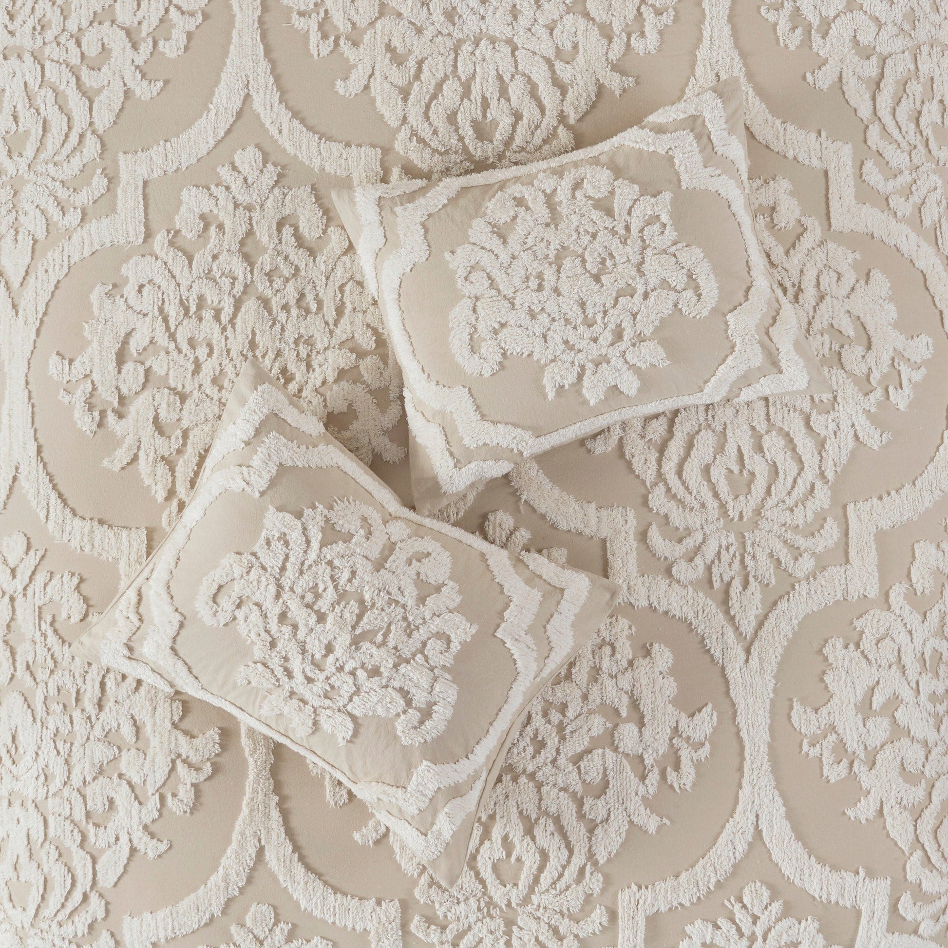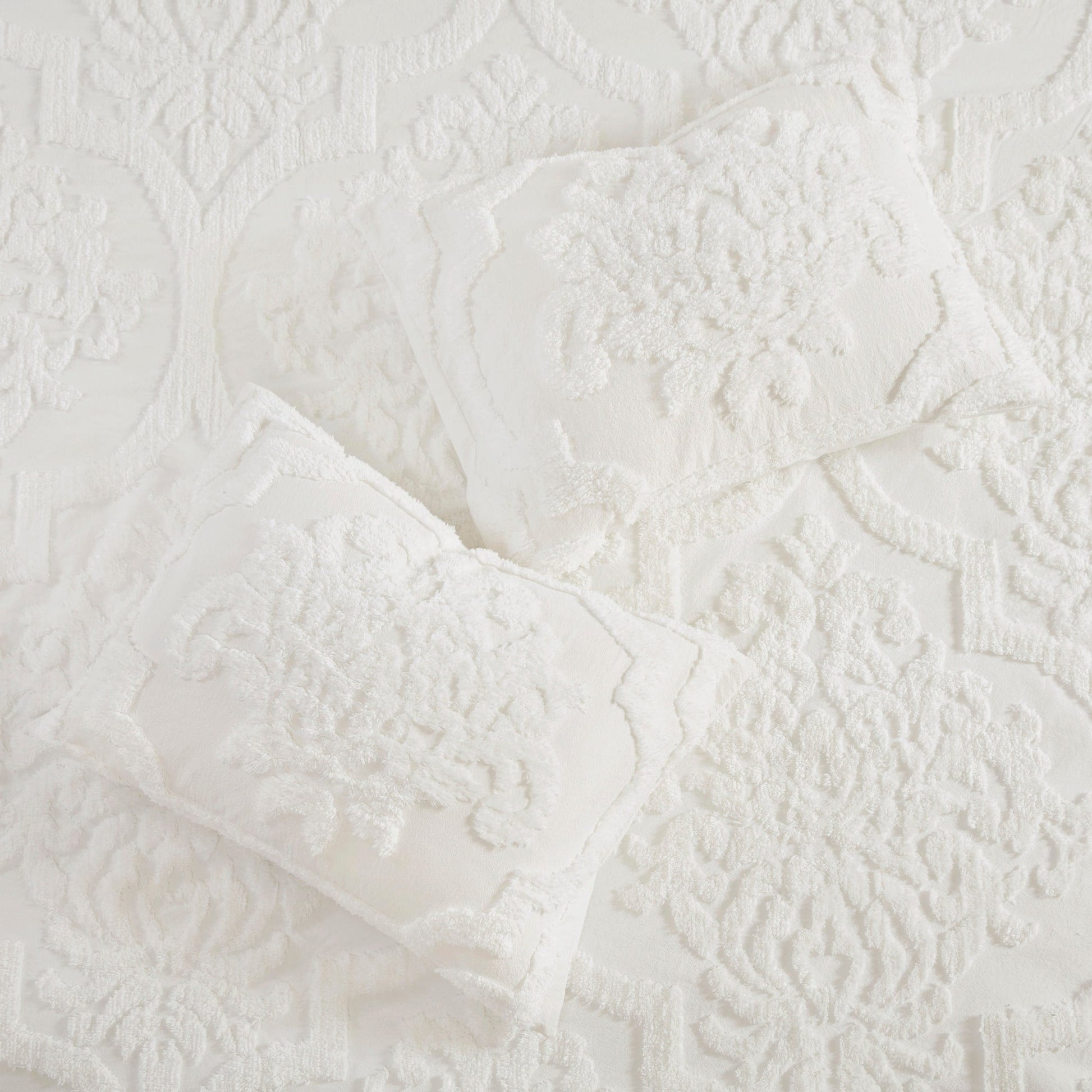 Aggiungi un tocco shabby-chic alla tua camera da letto con il set copripiumino Aeriela di Madison Park. Il copripiumino in ciniglia di cotone è imbottito in soffice poliestere e decorato con un motivo damascato trapuntato. Due federe coordinate sono incluse per completare il look.