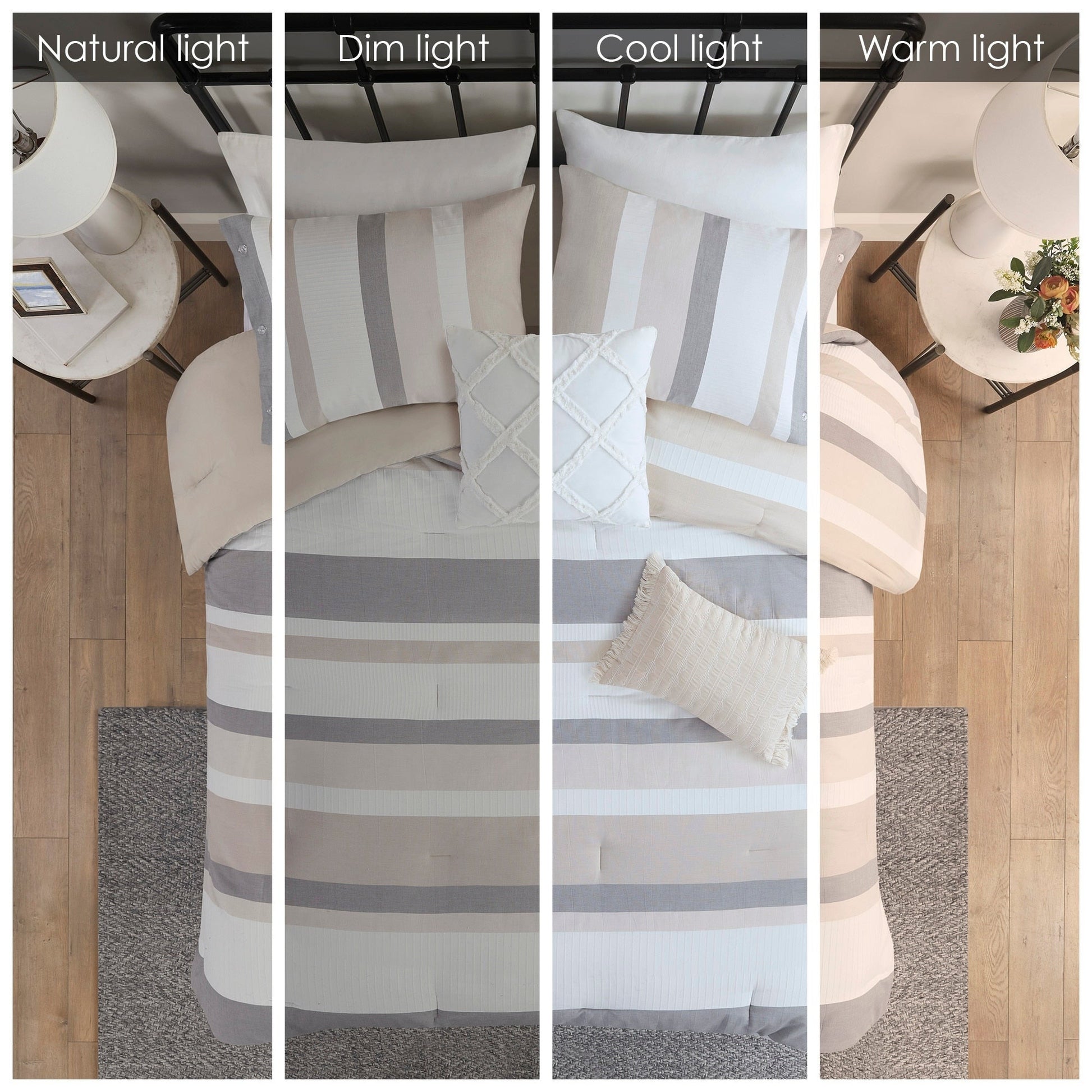 Set copripiumino in jacquard Madison Park Levi blu/naturale...
