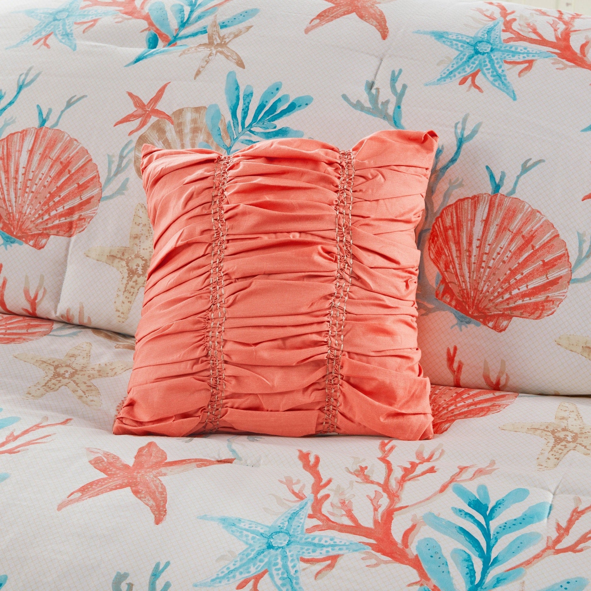 Per un vivace tocco costiero alla tua camera da letto, il set di piumoni in raso di cotone Madison Park Pacific Grove da 7 pezzi è perfetto per te! Questo piumone costiero presenta una stampa integrale di conchiglie, stelle marine e coralli in colori vivaci per illuminare il tuo spazio. Il morbido retro in cotone/poliestere è in tinta unita, perfetto per il design costiero. Le 2 federe coordinate si abbinano splendidamente al piumone in cotone, completando il look costiero. Sono inclusi anche 3 cuscini decorativi con dettagli ricamati costieri che aggiungono volume alla parte superiore del letto, mentre una gonna a tinta unita aggiunge il tocco finale. L'imbottitura in poliestere ipoallergenico del piumone e dei cuscini decorativi è trattata per essere antipolvere e priva di allergeni. Questo set di piumoni in cotone è certificato OEKO-TEX, il che significa che non contiene sostanze o prodotti chimici nocivi per garantire comfort e benessere di qualità. Lavabile in lavatrice per una facile manutenzione, questo set di biancheria da letto casual può essere fornito arrotolato o compresso e dovrà essere stirato. Utilizzare un ferro da stiro a vapore per rimuovere più facilmente le pieghe.