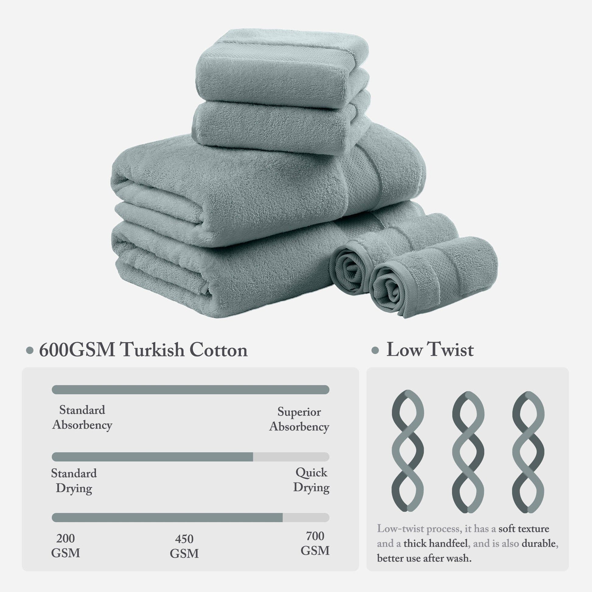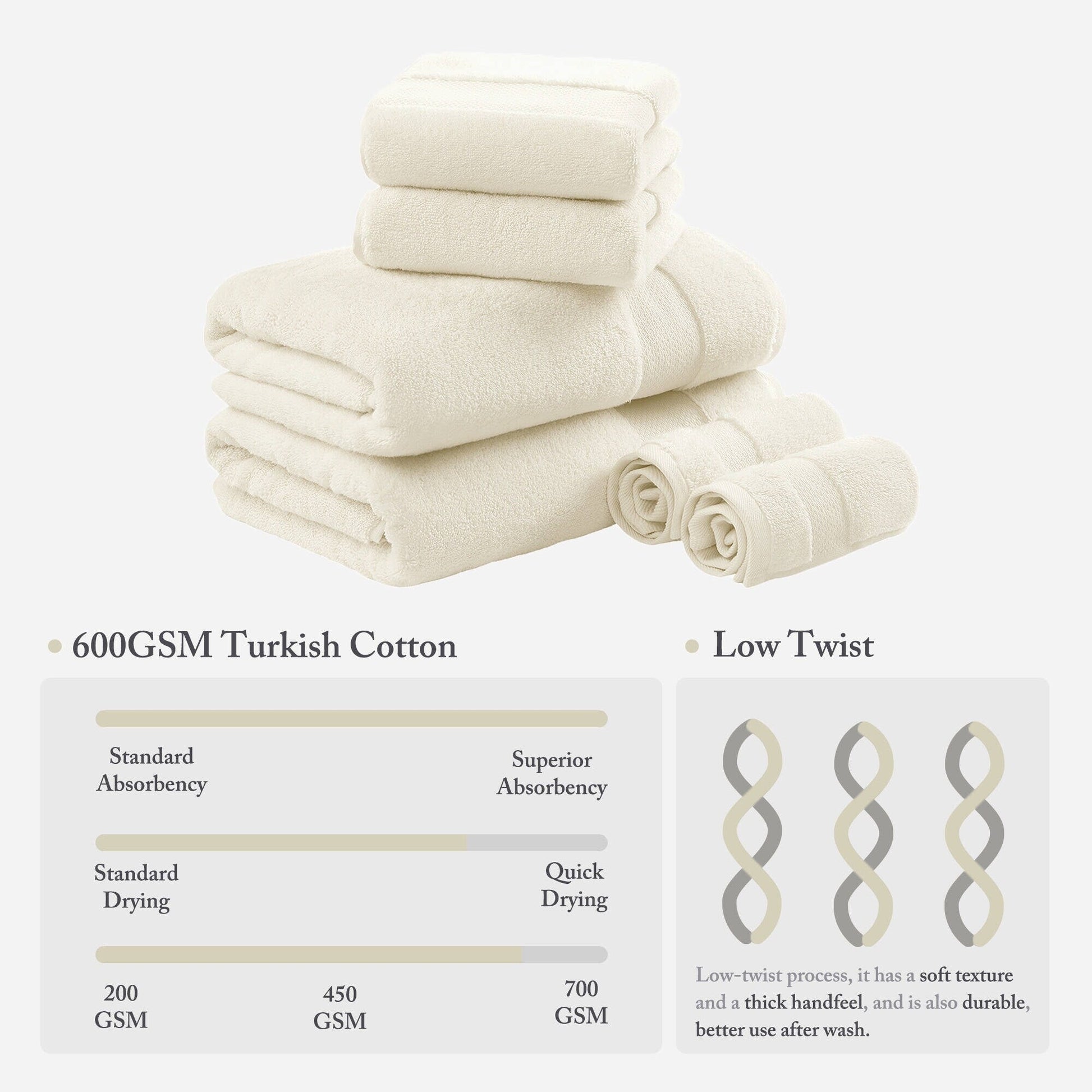 - Il filato a bassa torsione è realizzato con fibre di cotone turco più fini e lunghe, rendendo questi asciugamani il massimo del lusso, altamente assorbenti e intrinsecamente più resistenti per un comfort avvolgente.