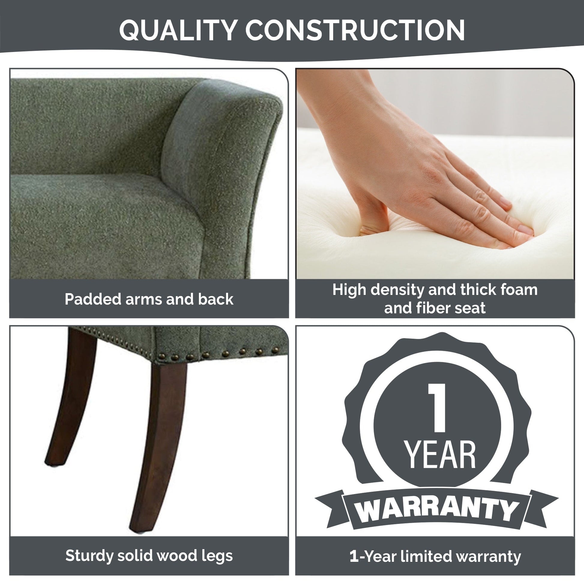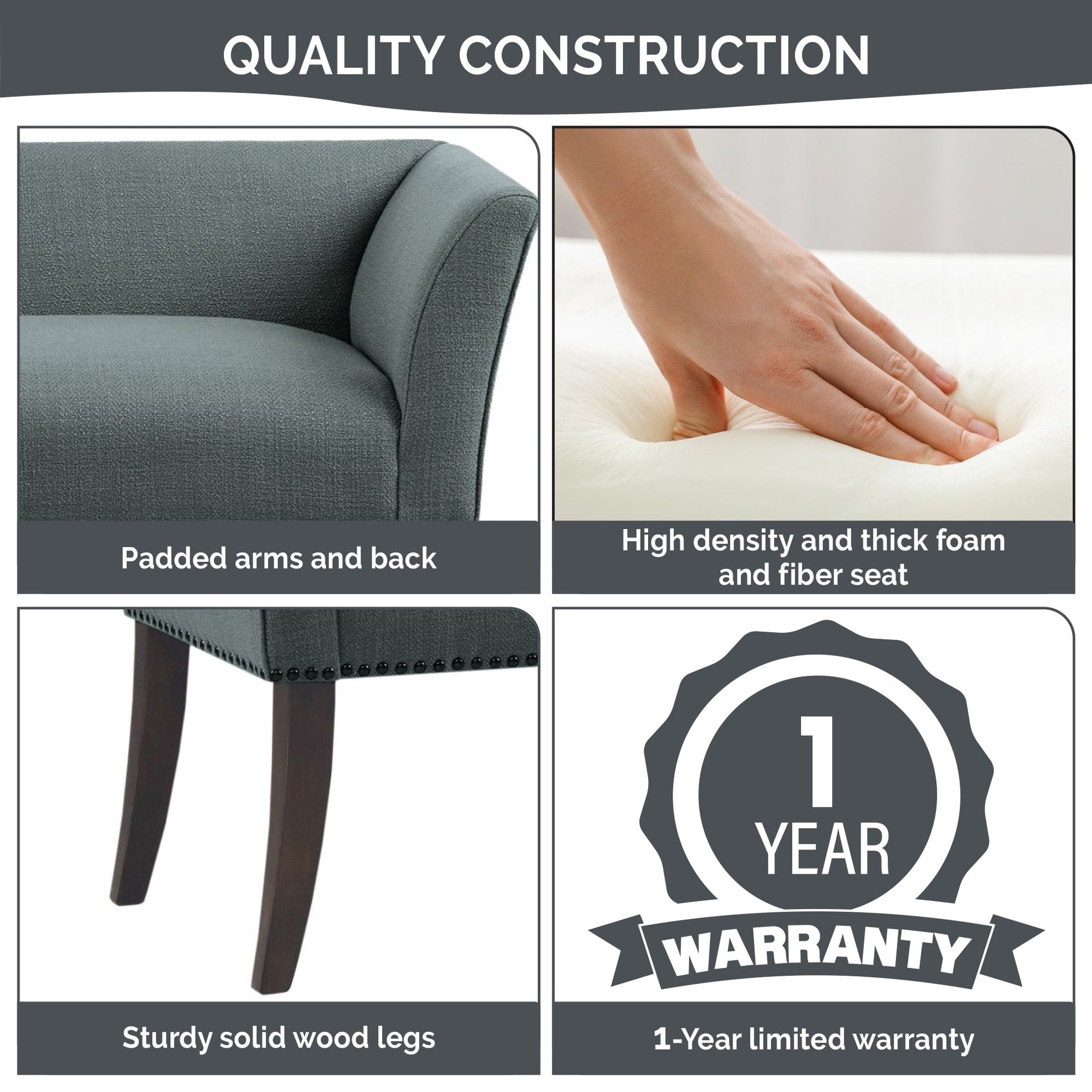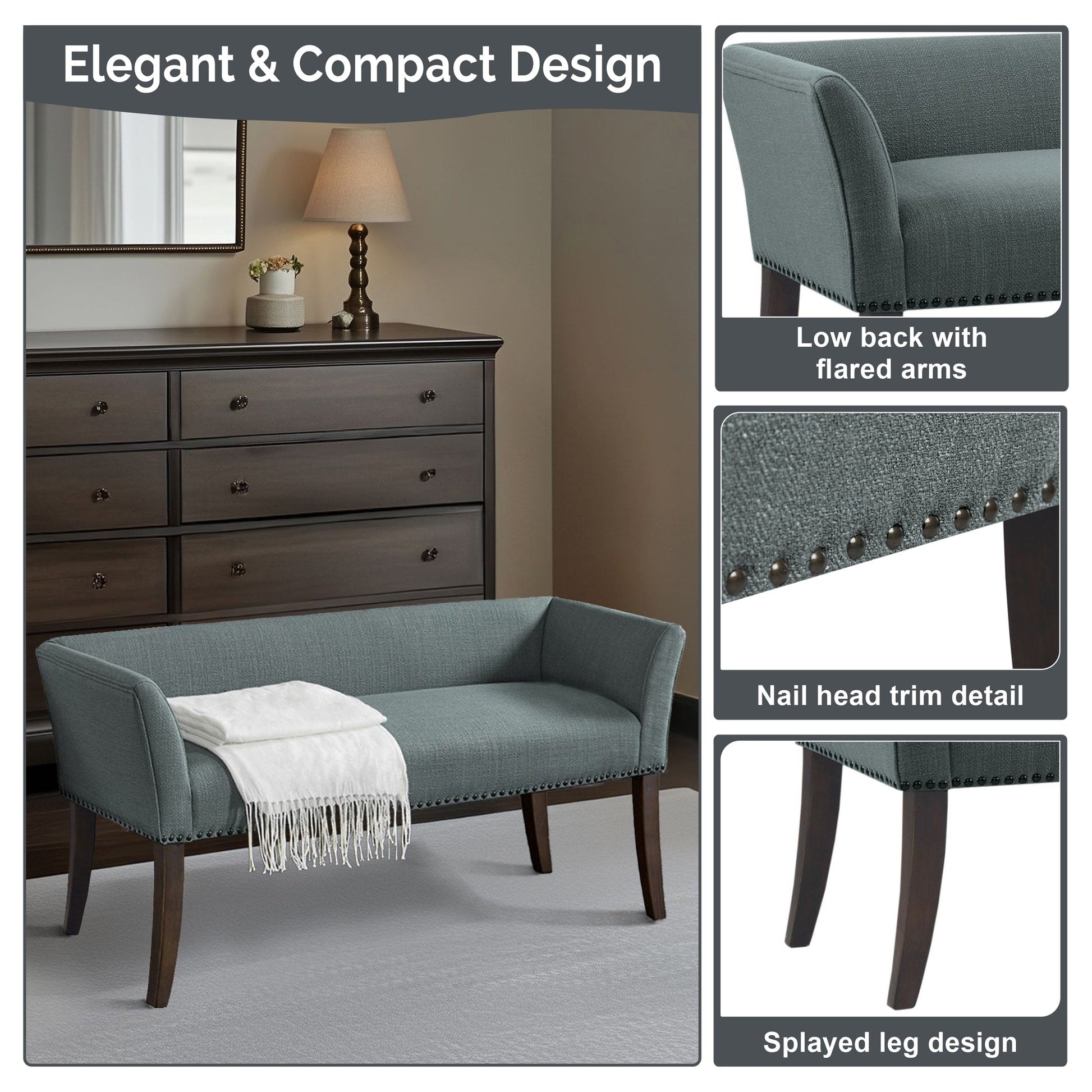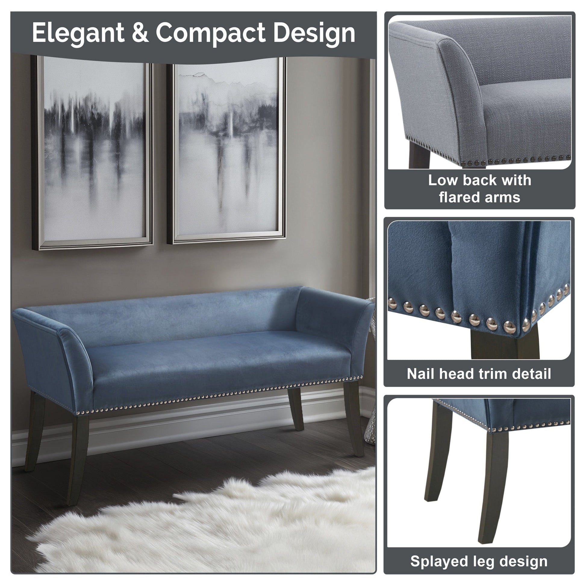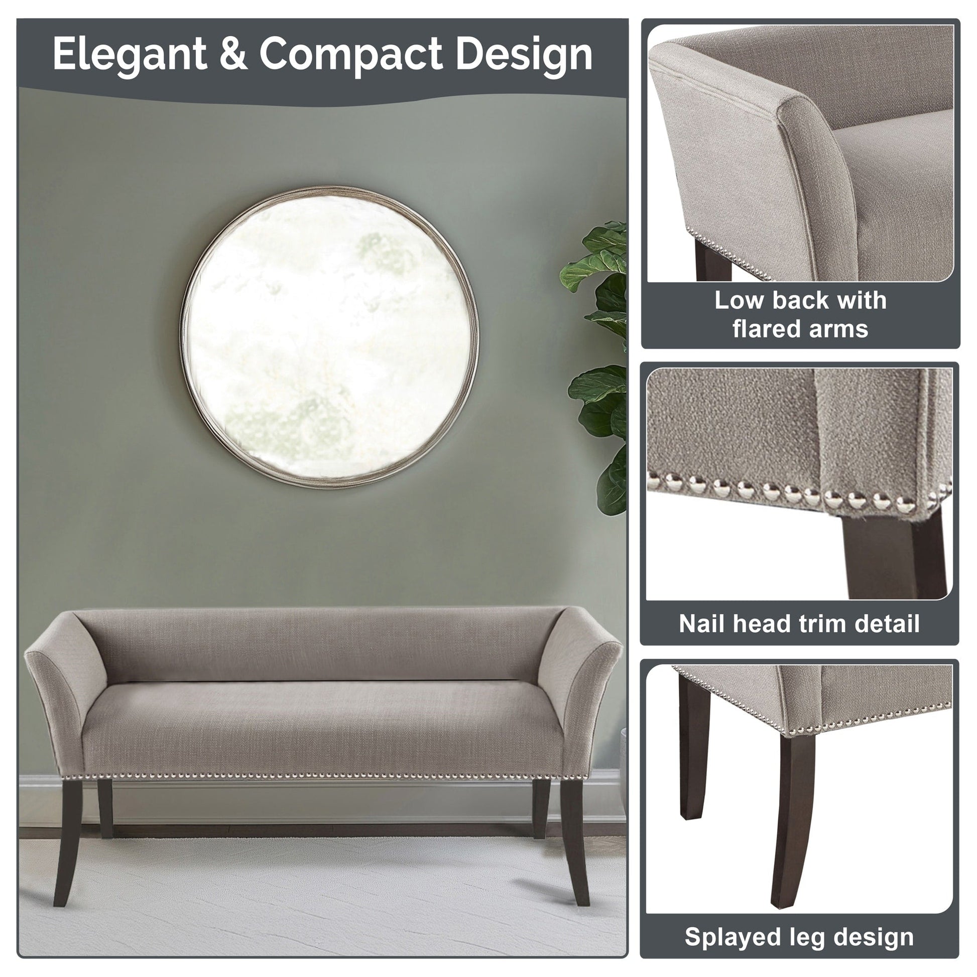 Valorizza il tuo spazio con la panca imbottita Welburn di Madison Park. Compatta ma elegante, questa versatile panca presenta uno schienale basso e braccioli svasati, impreziositi da eleganti borchie che aggiungono un tocco di raffinatezza. Progettata per coniugare stile e comfort, la panca Welburn offre una seduta di supporto, rendendola perfetta per essere posizionata ai piedi del letto o come accogliente aggiunta a ingressi, corridoi, soggiorni, camere da letto e altro ancora. Porta a casa questo pezzo senza tempo e trasforma qualsiasi stanza con facilità.
