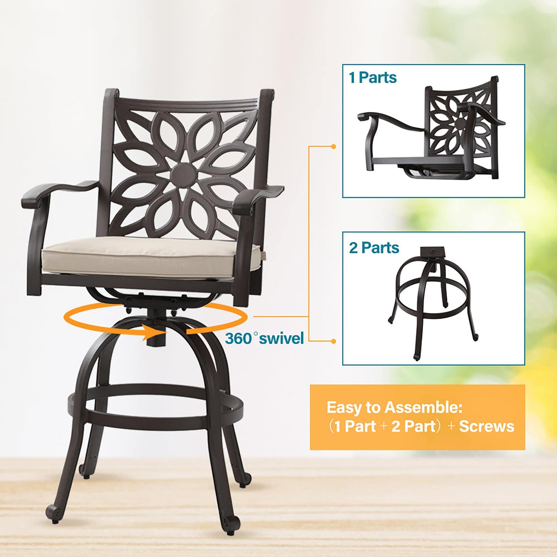 MAISON ARTS Set di 3 sgabelli da bar...